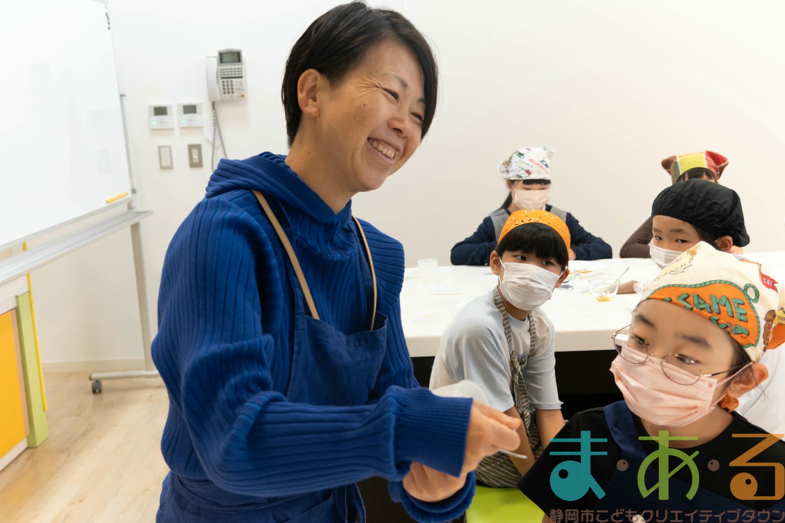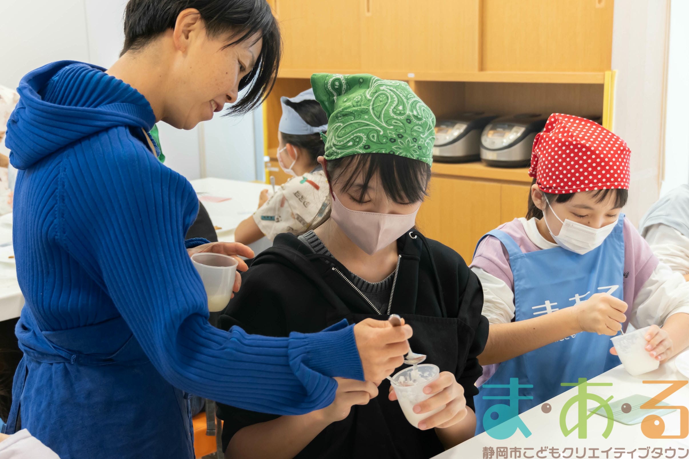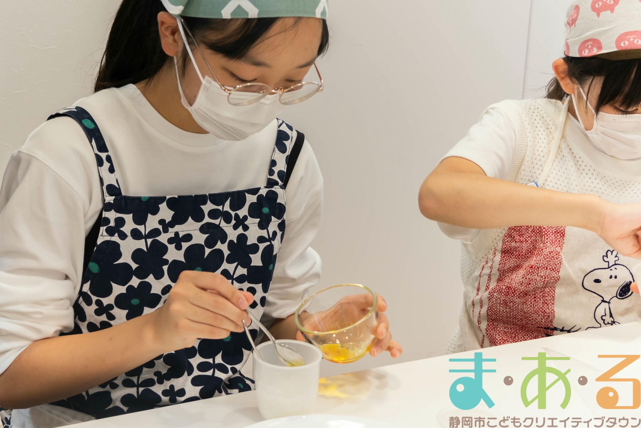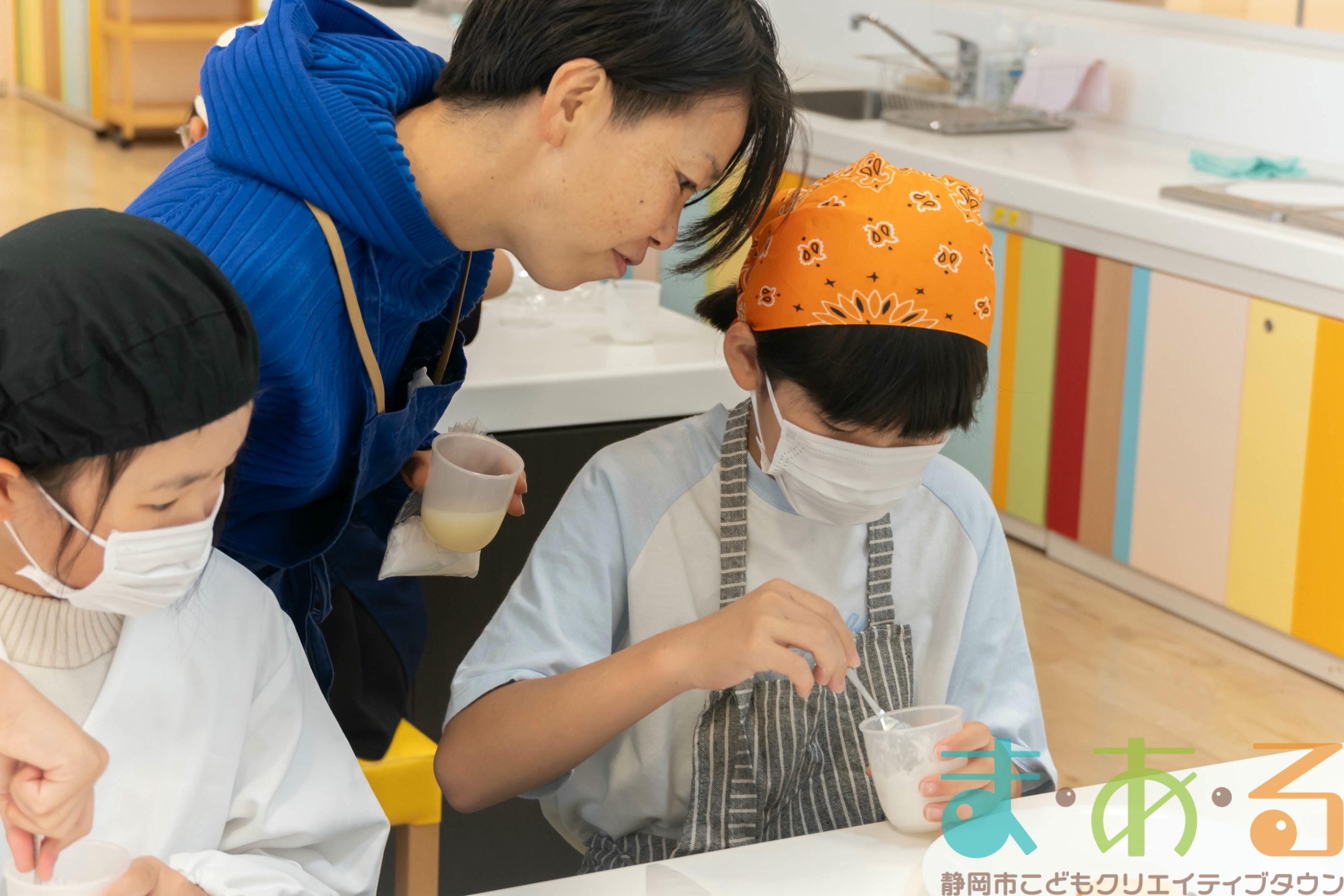 クリームが固い子にはレモン汁、やわらかい子には粉砂糖を加え先生が固さを調整してくれました。