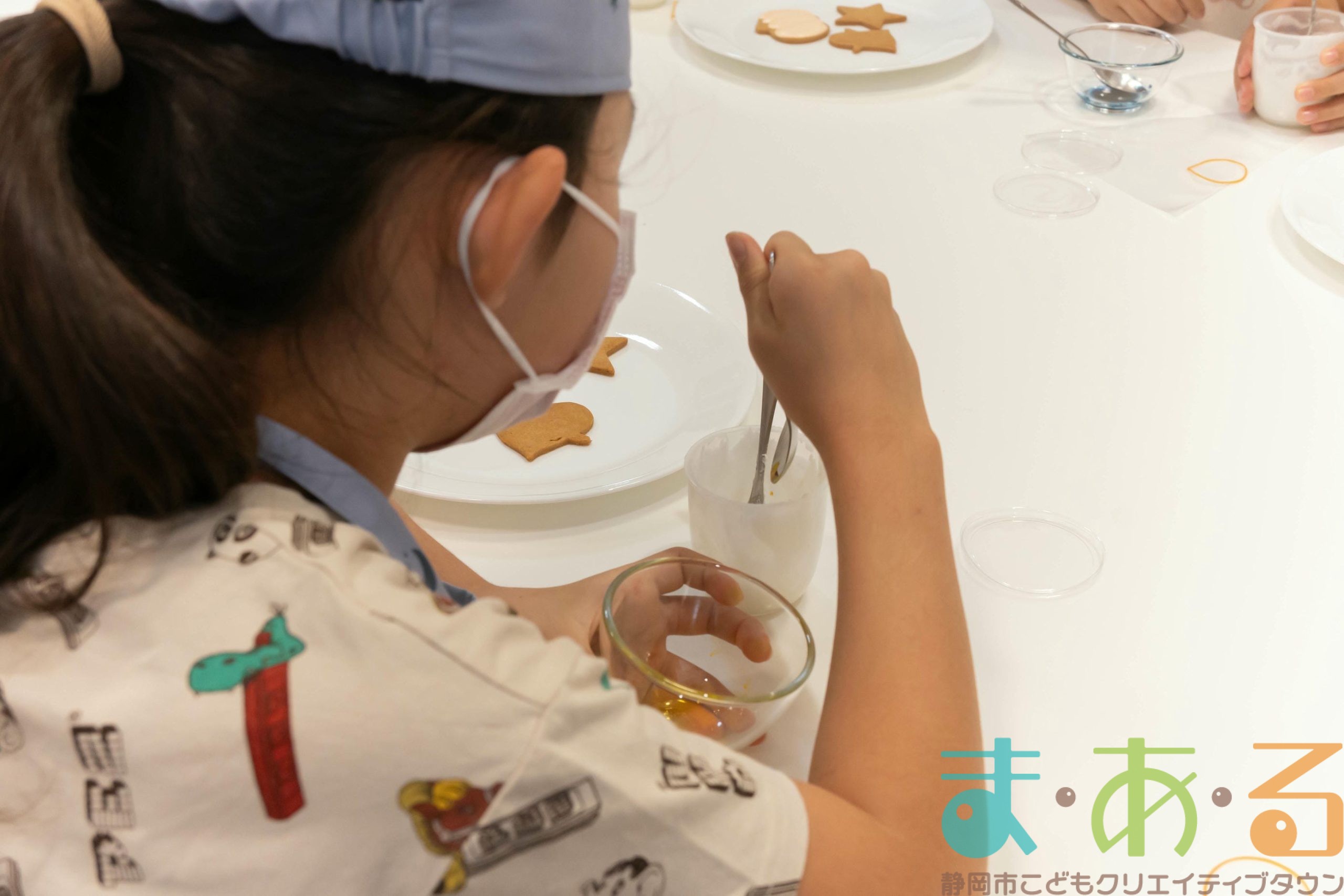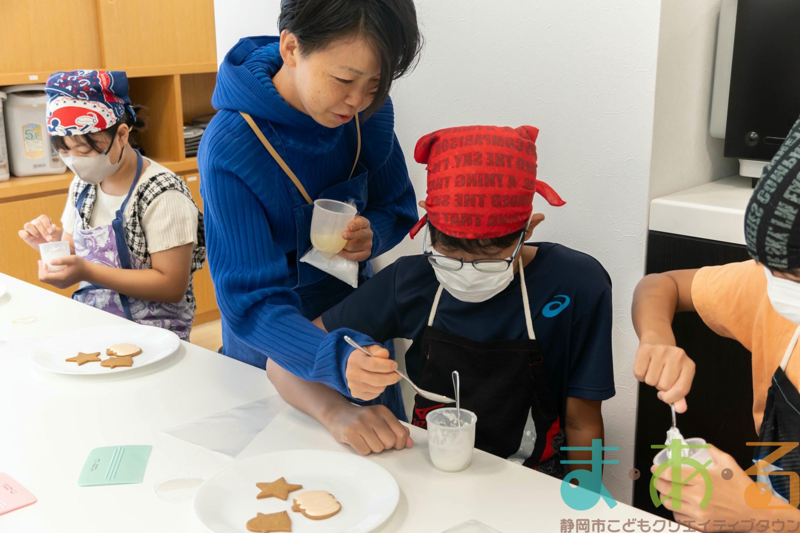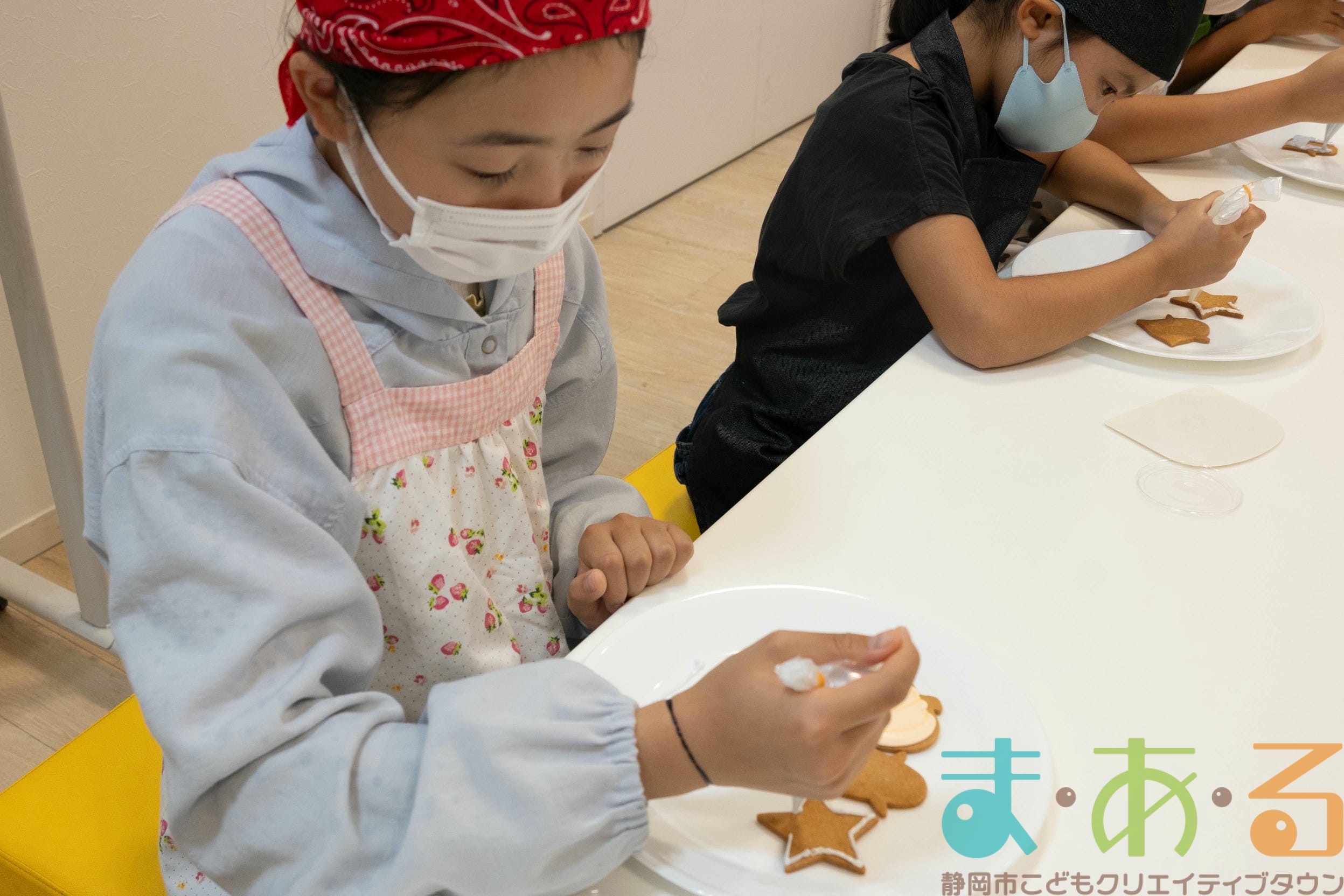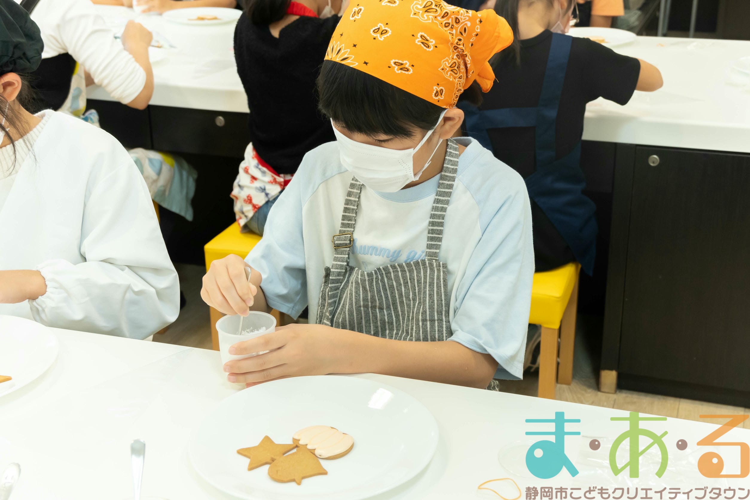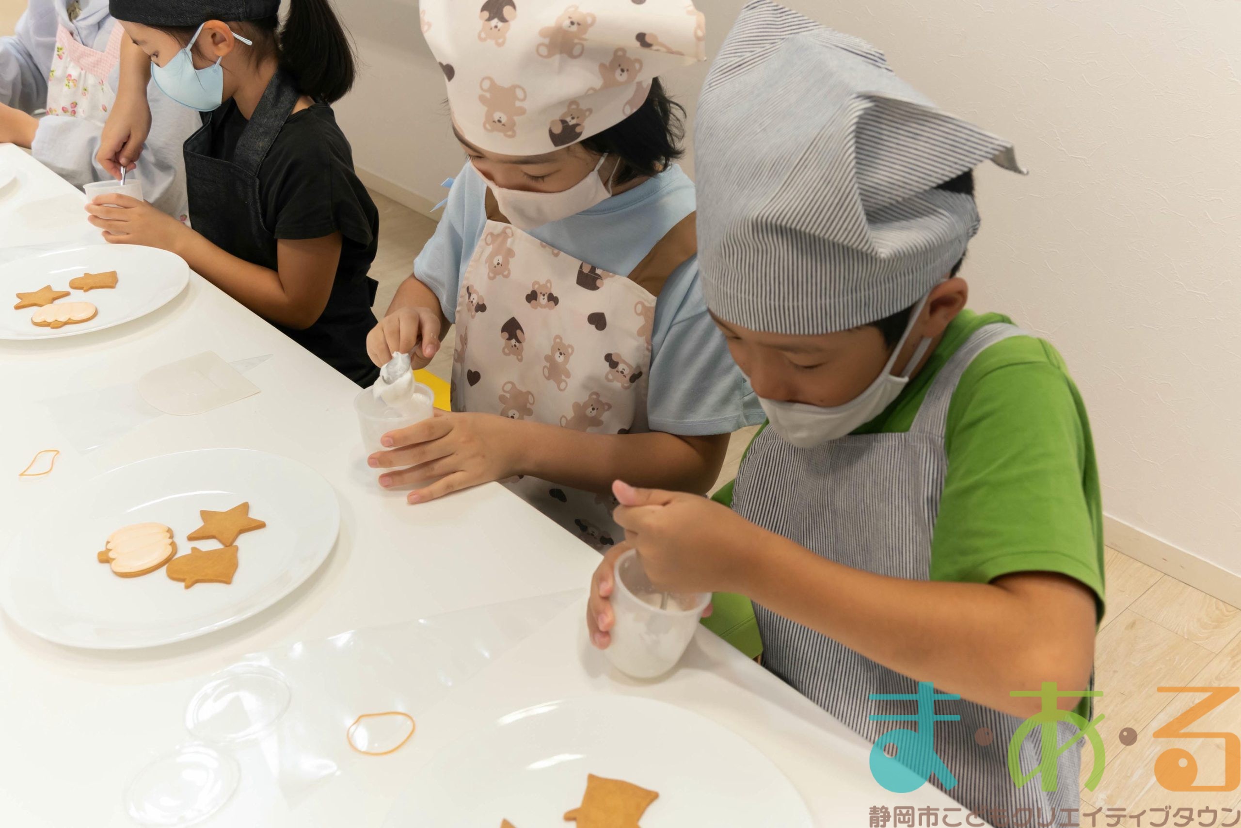今日は先生が焼いてきてくれた「おばけ」「かぼちゃ」「星」3種類のクッキーに、アイシングクリームを使ってデコレーションをしていきます。