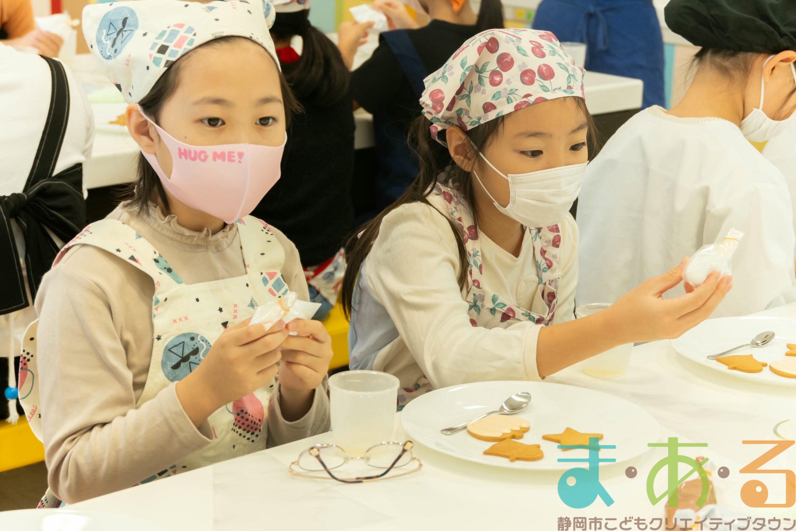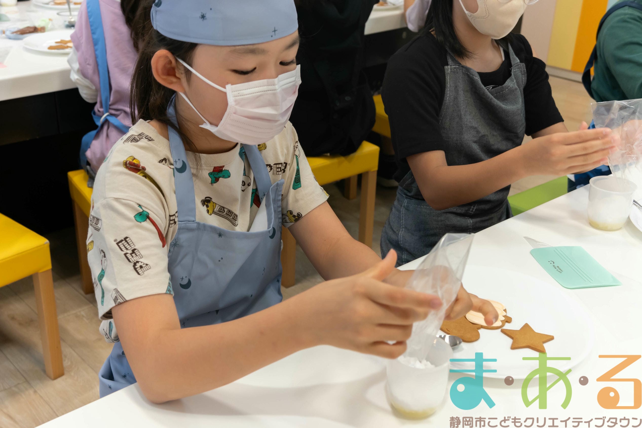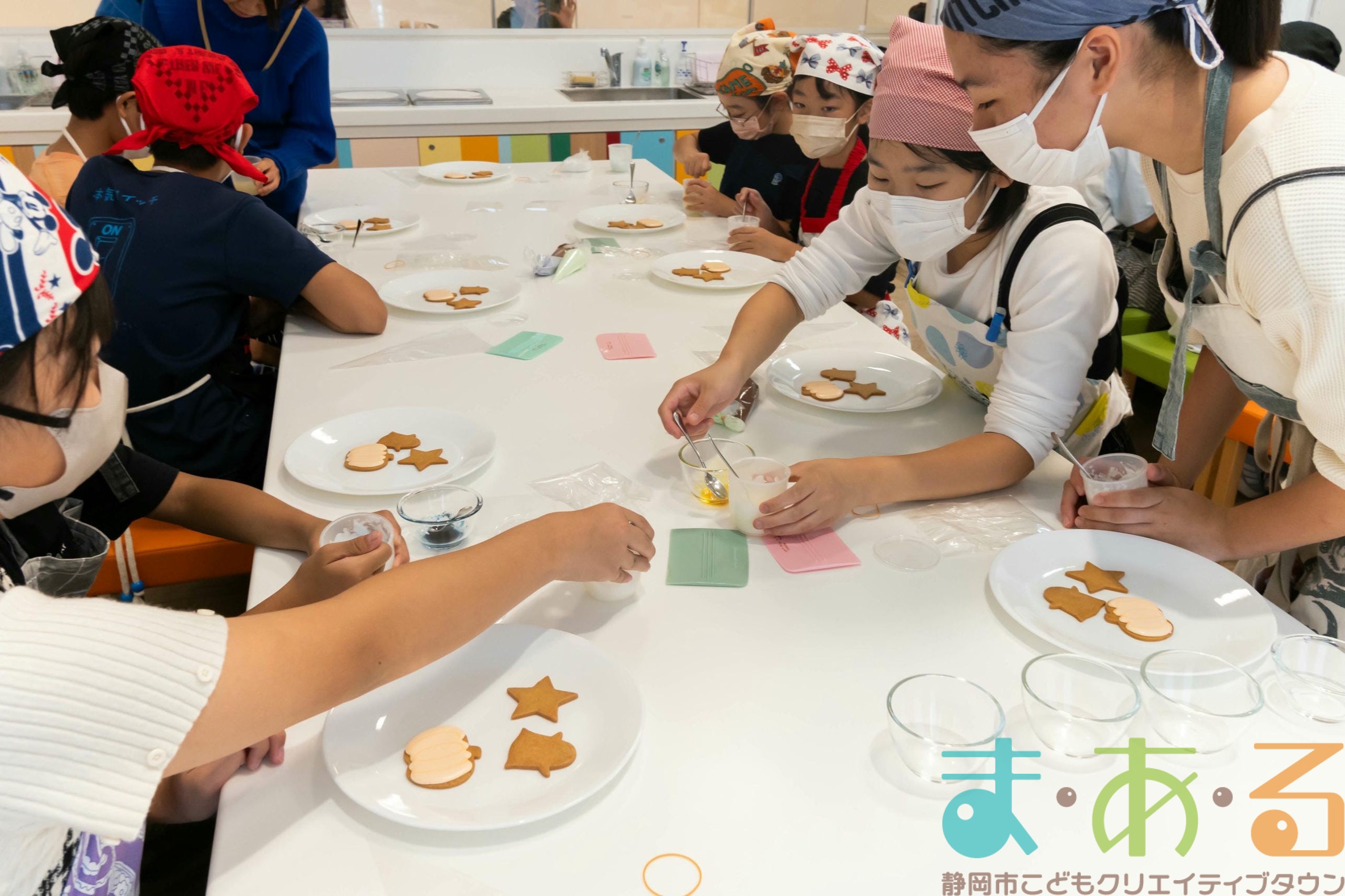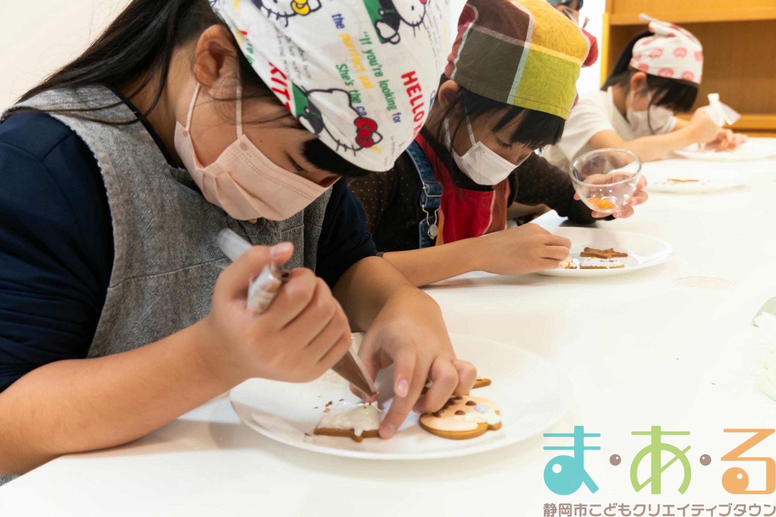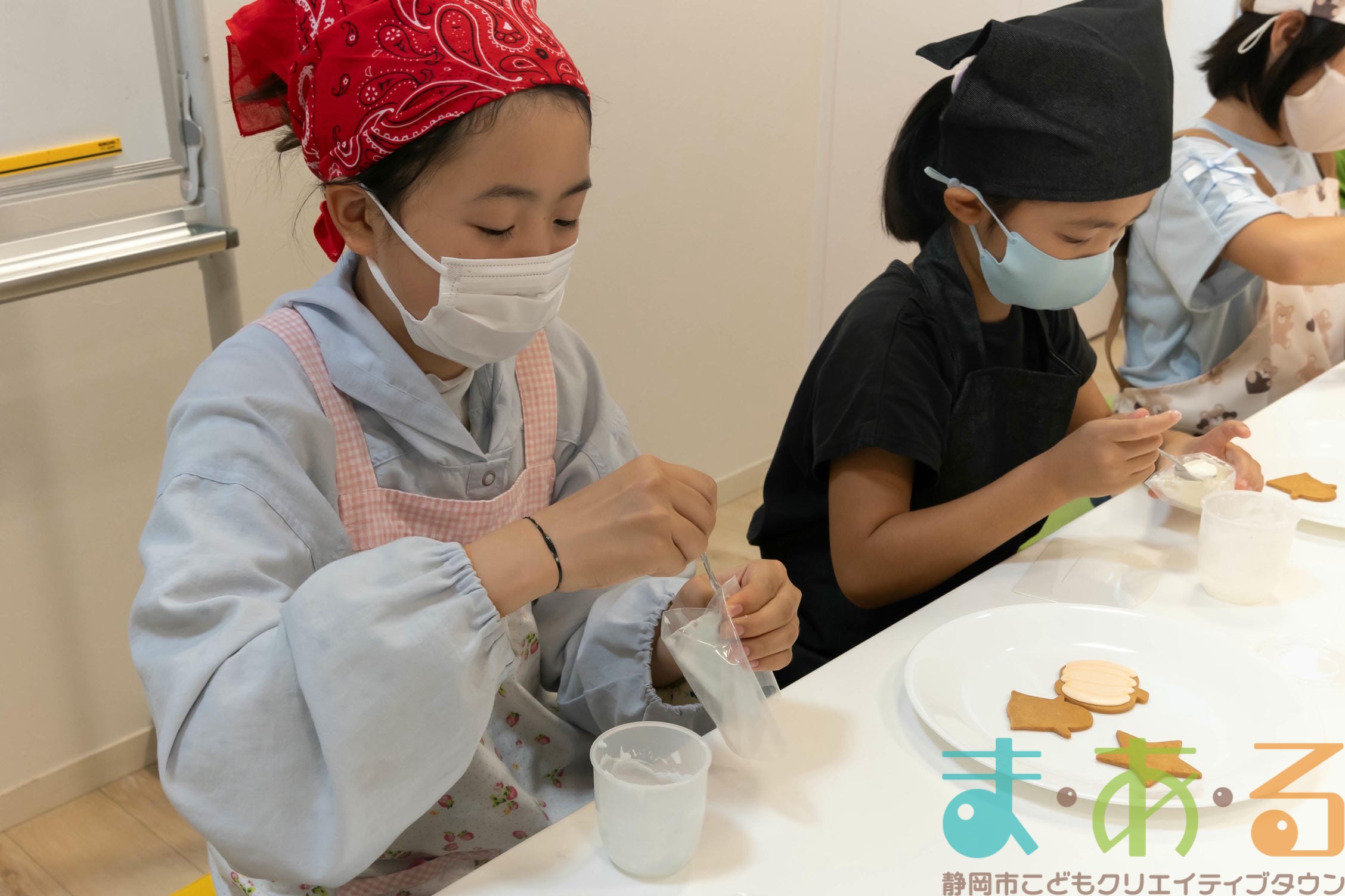 今日は先生が焼いてきてくれた「おばけ」「かぼちゃ」「星」3種類のクッキーに、アイシングクリームを使ってデコレーションをしていきます。