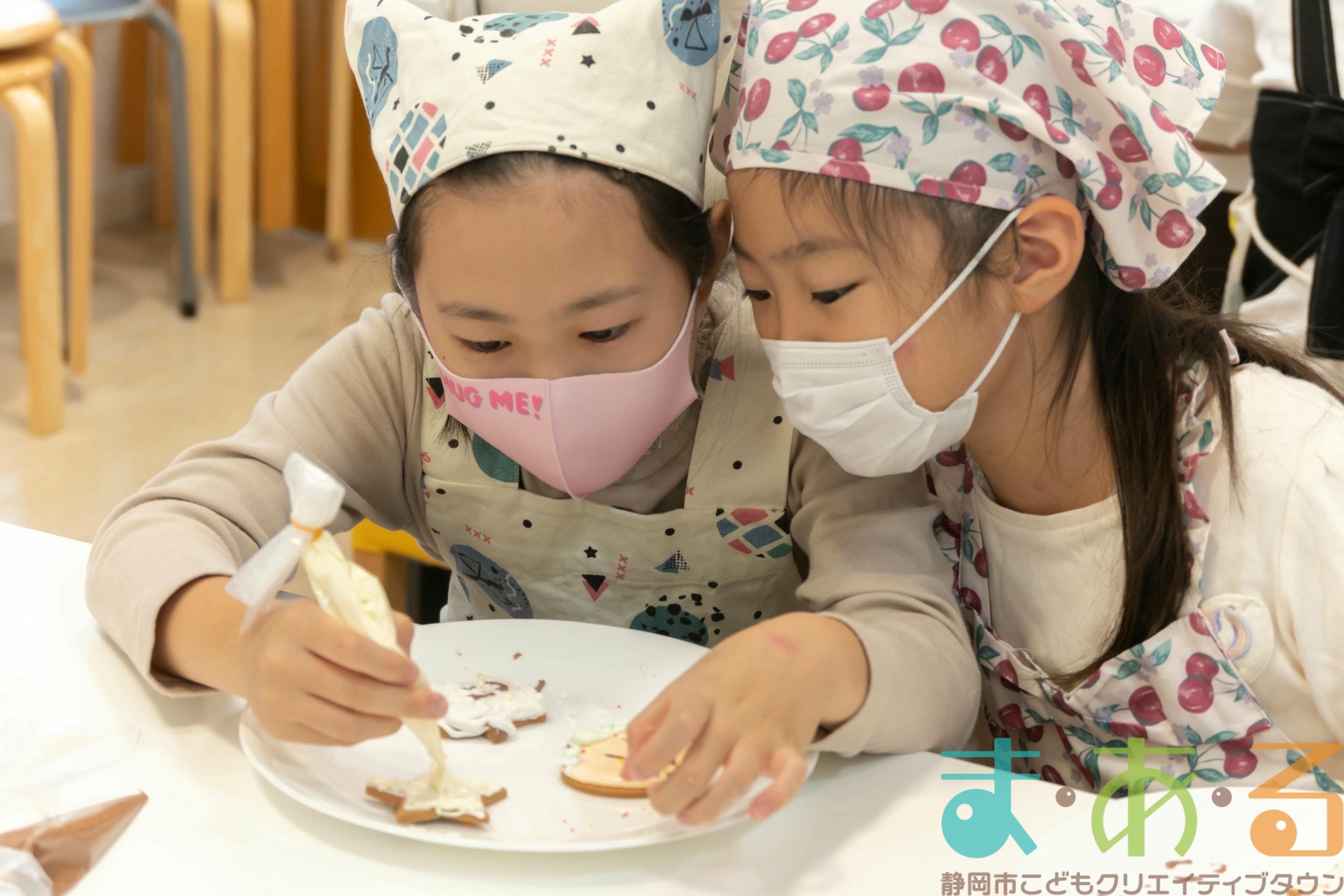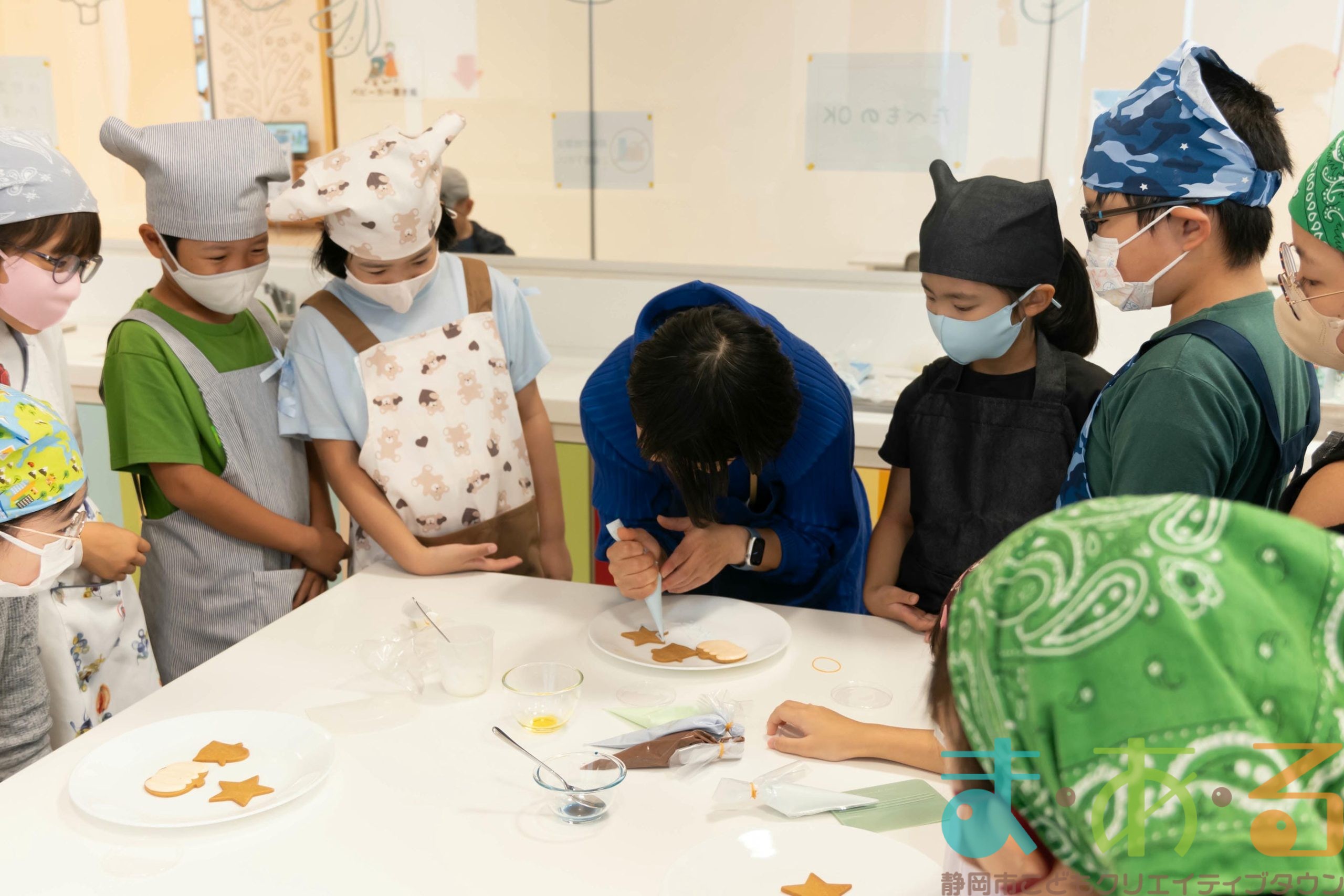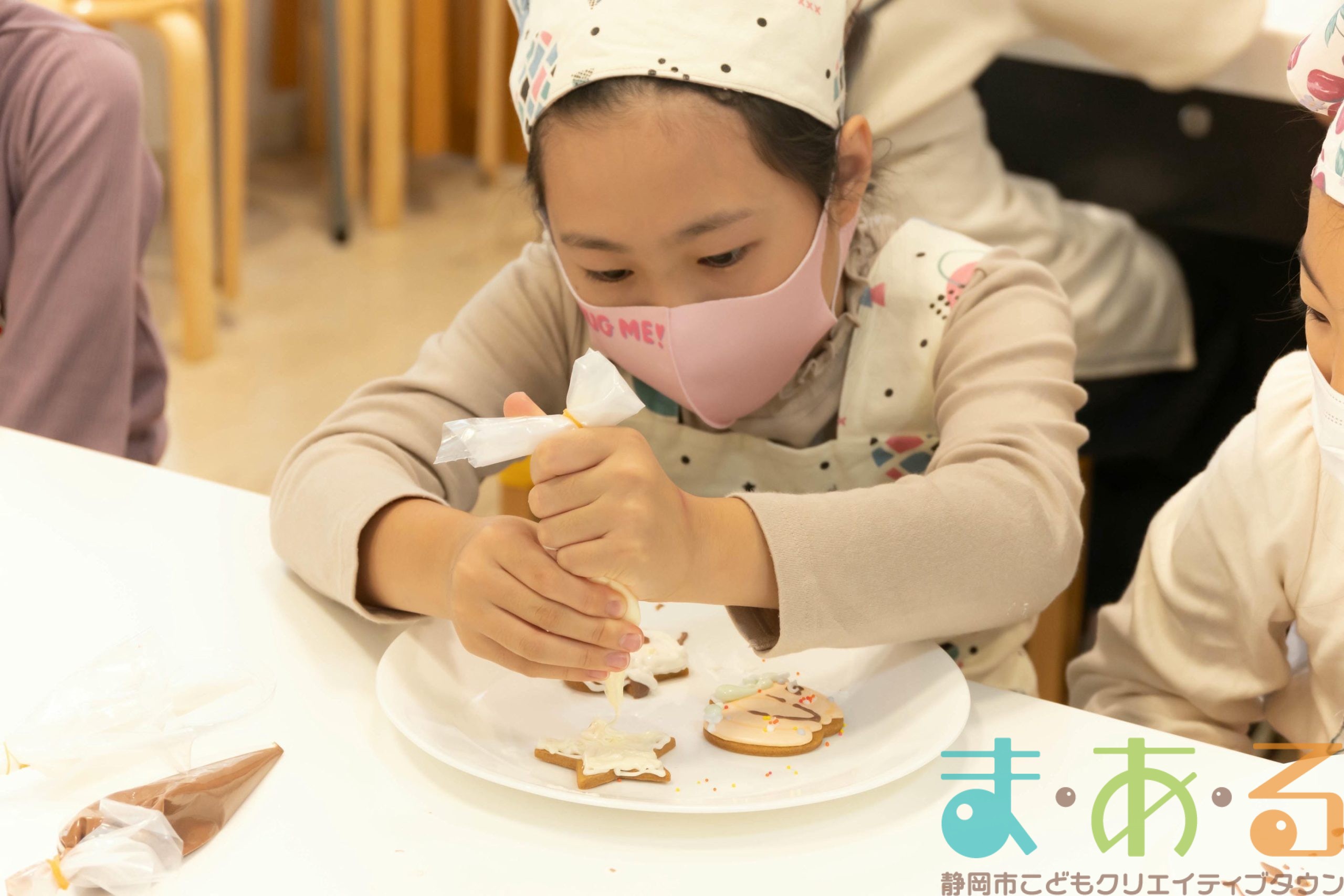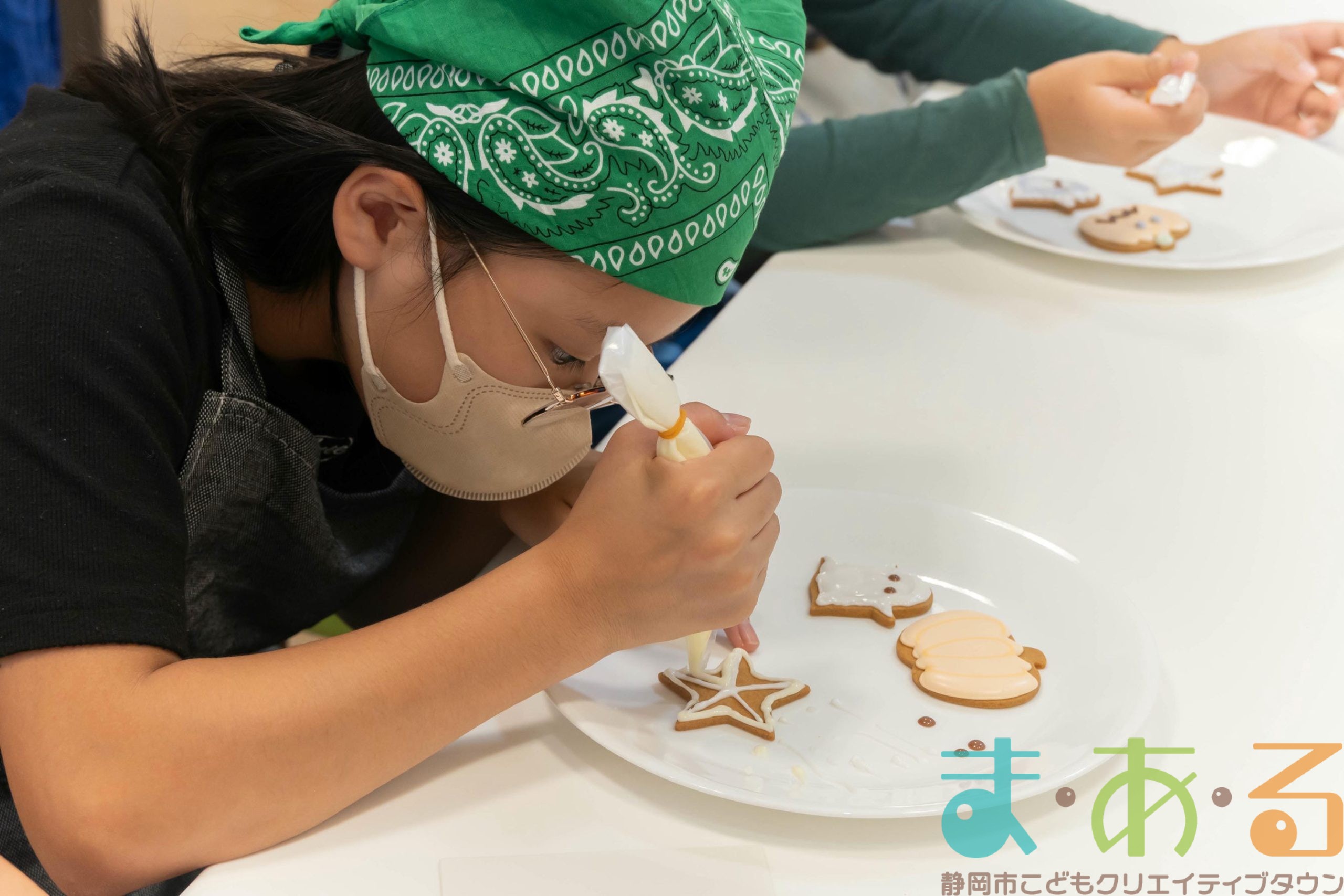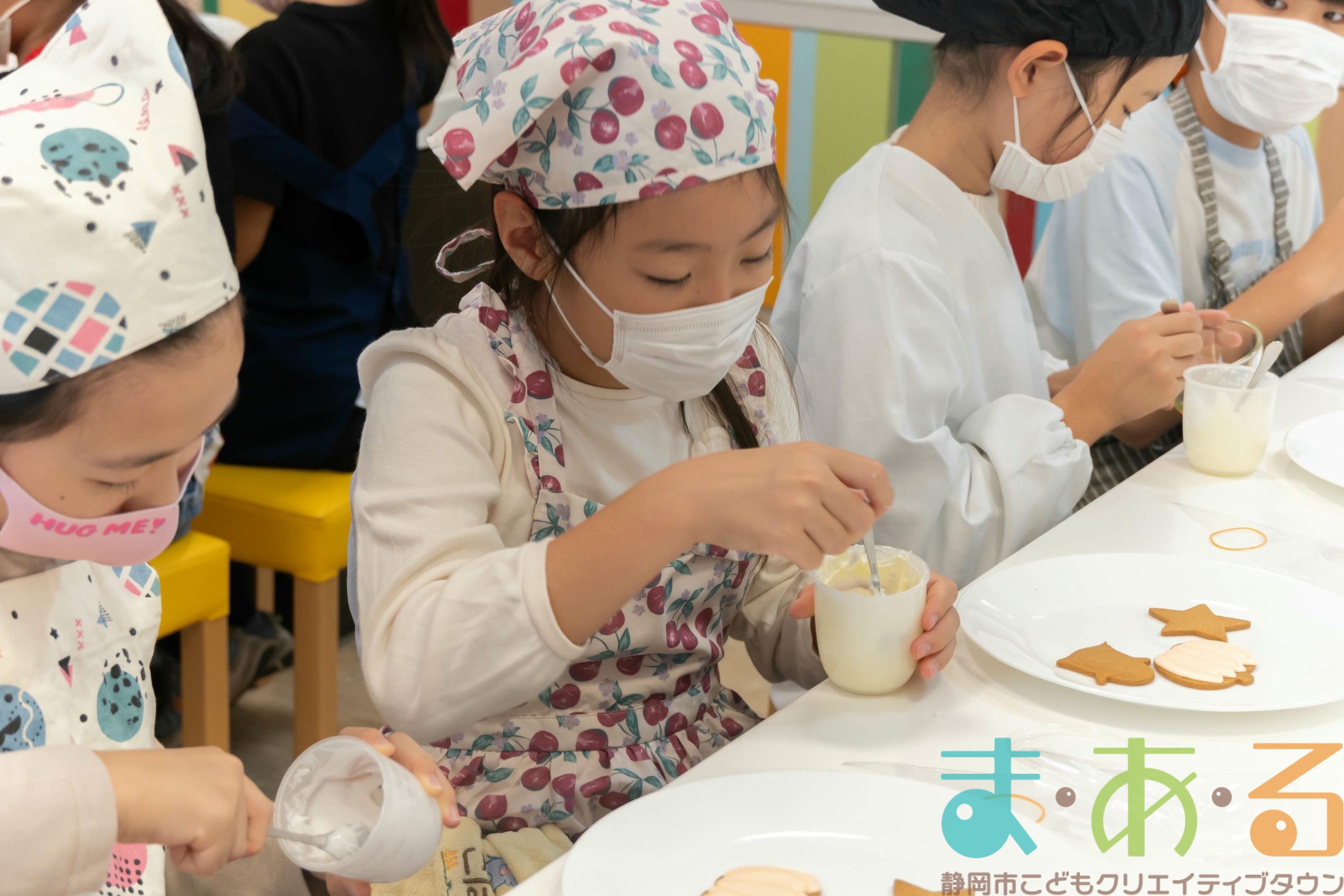 今日は先生が焼いてきてくれた「おばけ」「かぼちゃ」「星」3種類のクッキーに、アイシングクリームを使ってデコレーションをしていきます。