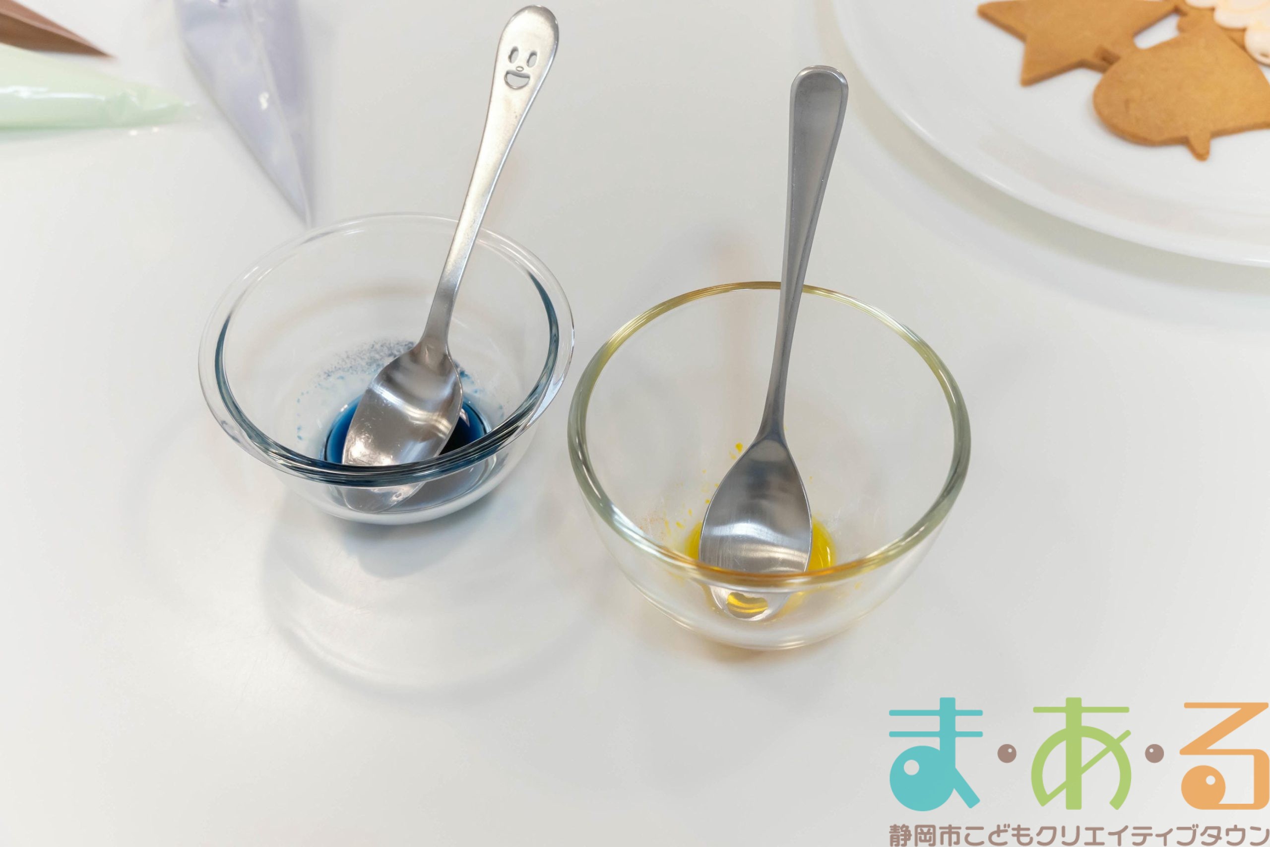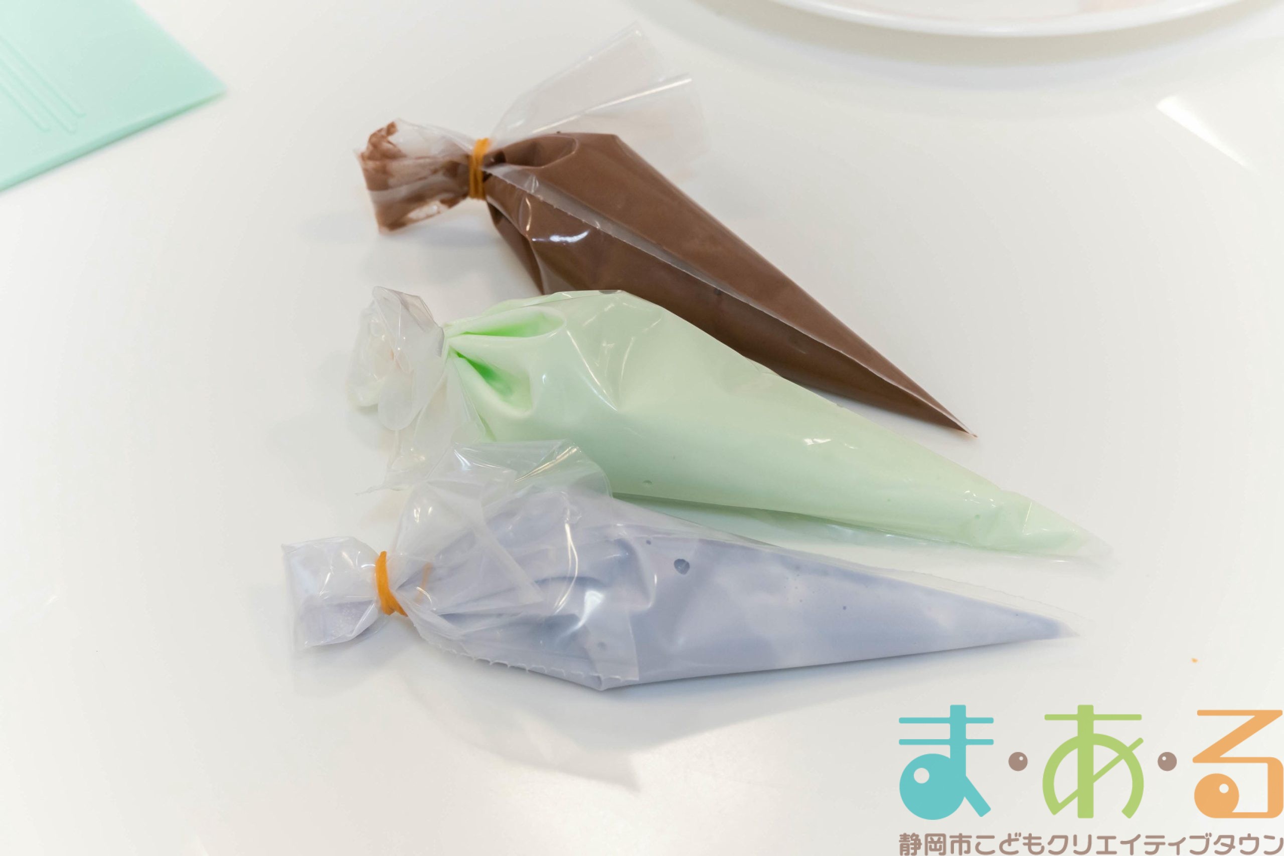 みんなの作ってくれた青、黄色に加え先生が作ってきてくれた色も使いアイシングスタートです。
