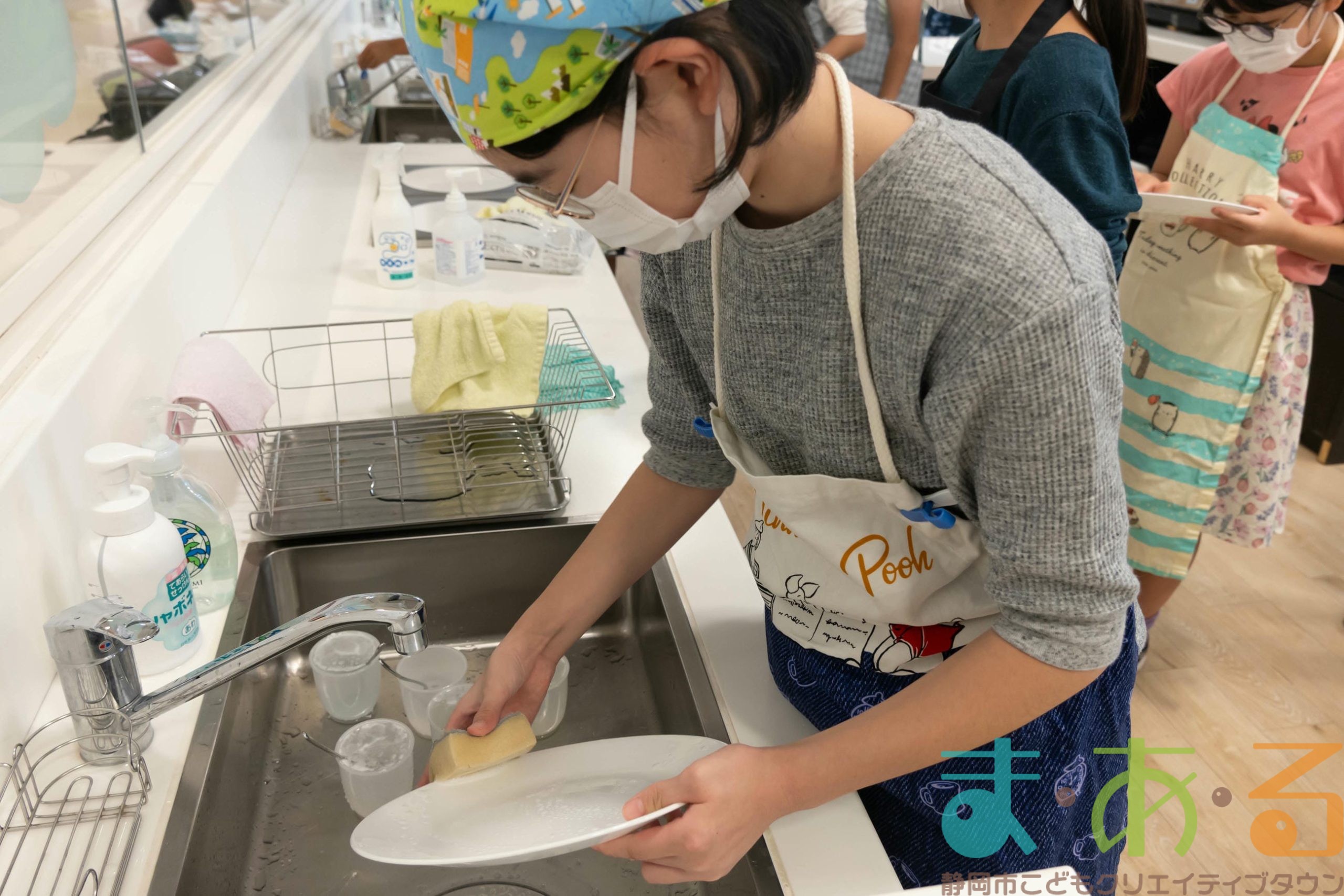 デコレーションが終わりクリームが固まる間、みんなで洗い物を頑張りました。