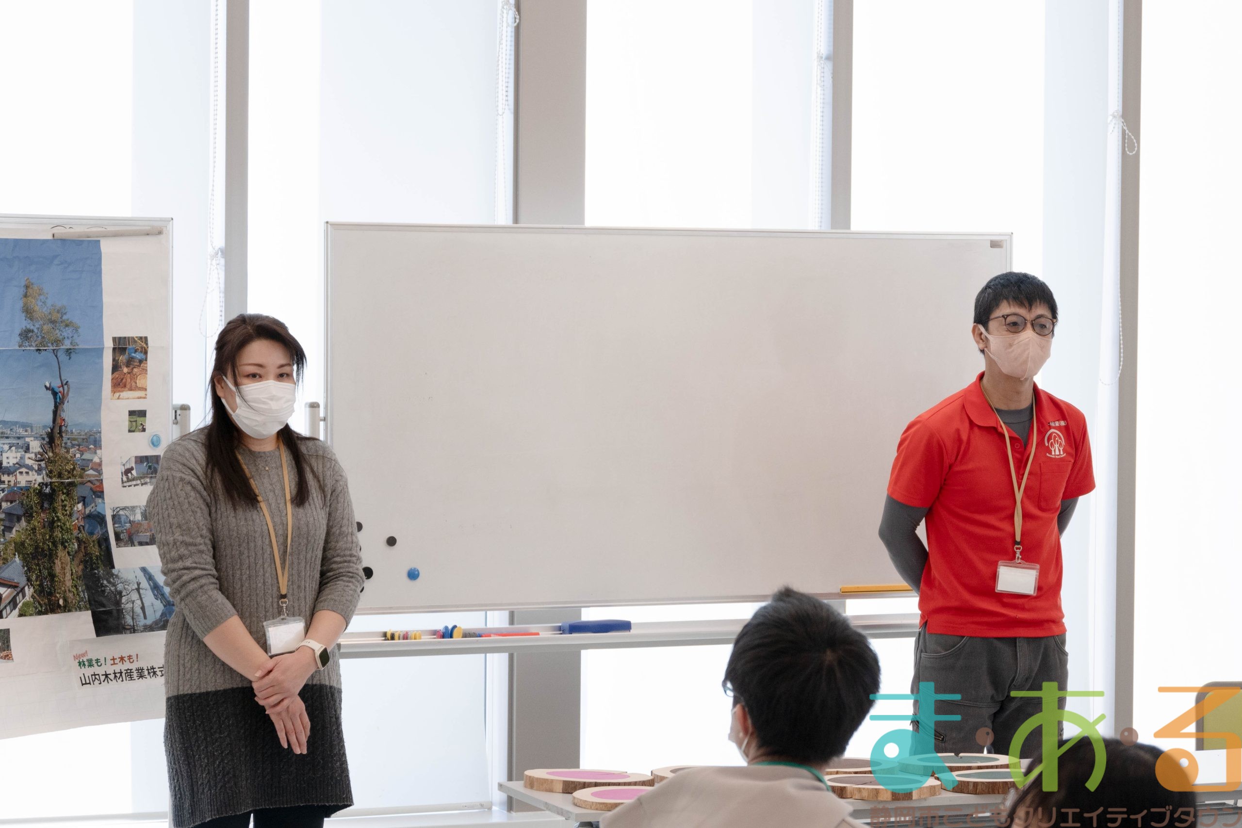 今回は山内木材産業株式会社さんのご協力で「木にかかわるお仕事について」の講話と、ミニ黒板作り講座を実施しました。