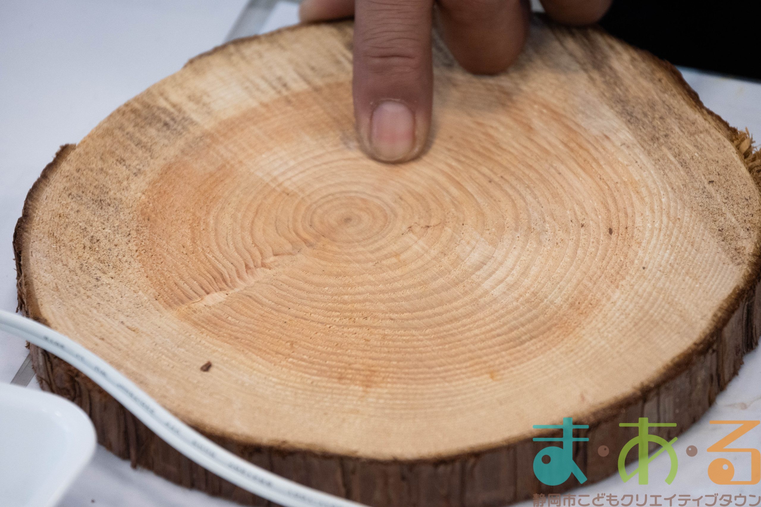 自分たちの丸太の円の模様を数えて、「54年!」「40年!」と声が上がりました。