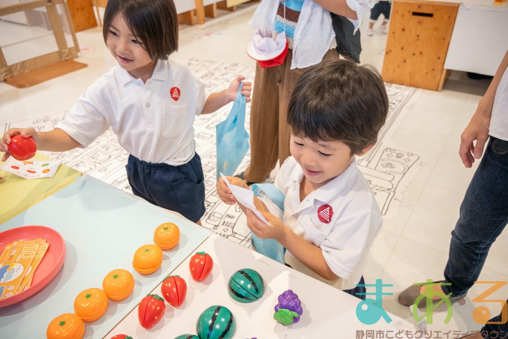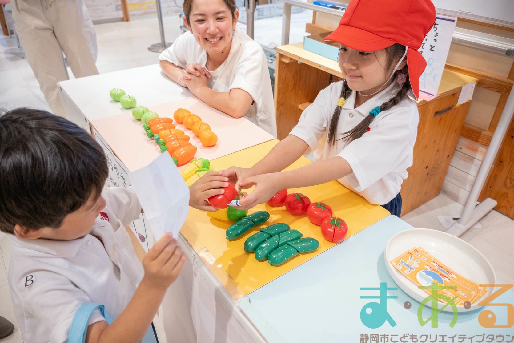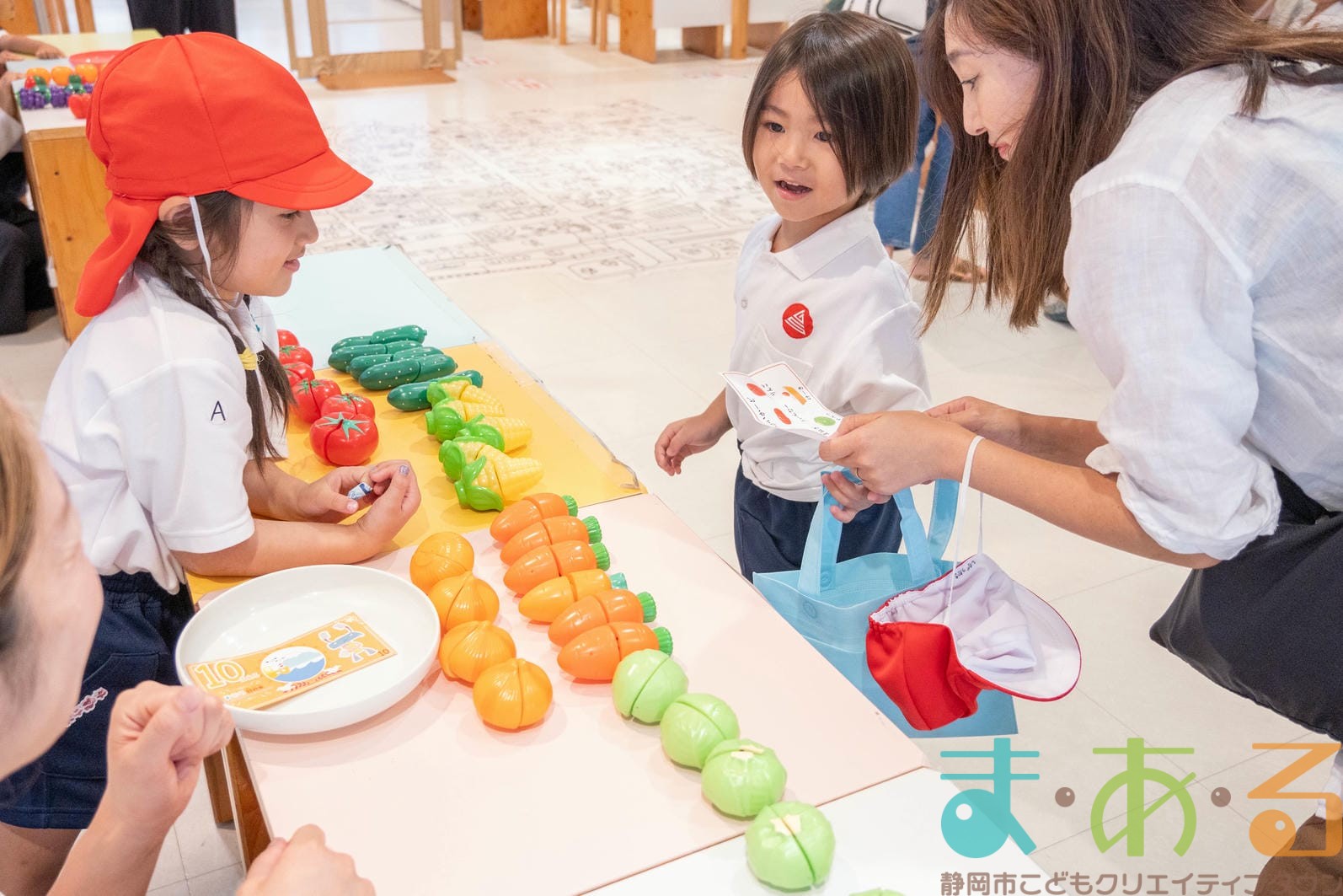 おみせやさん役とおきゃくさん役に分かれて準備からはじめます。