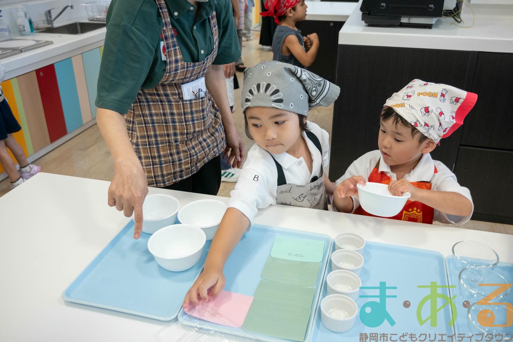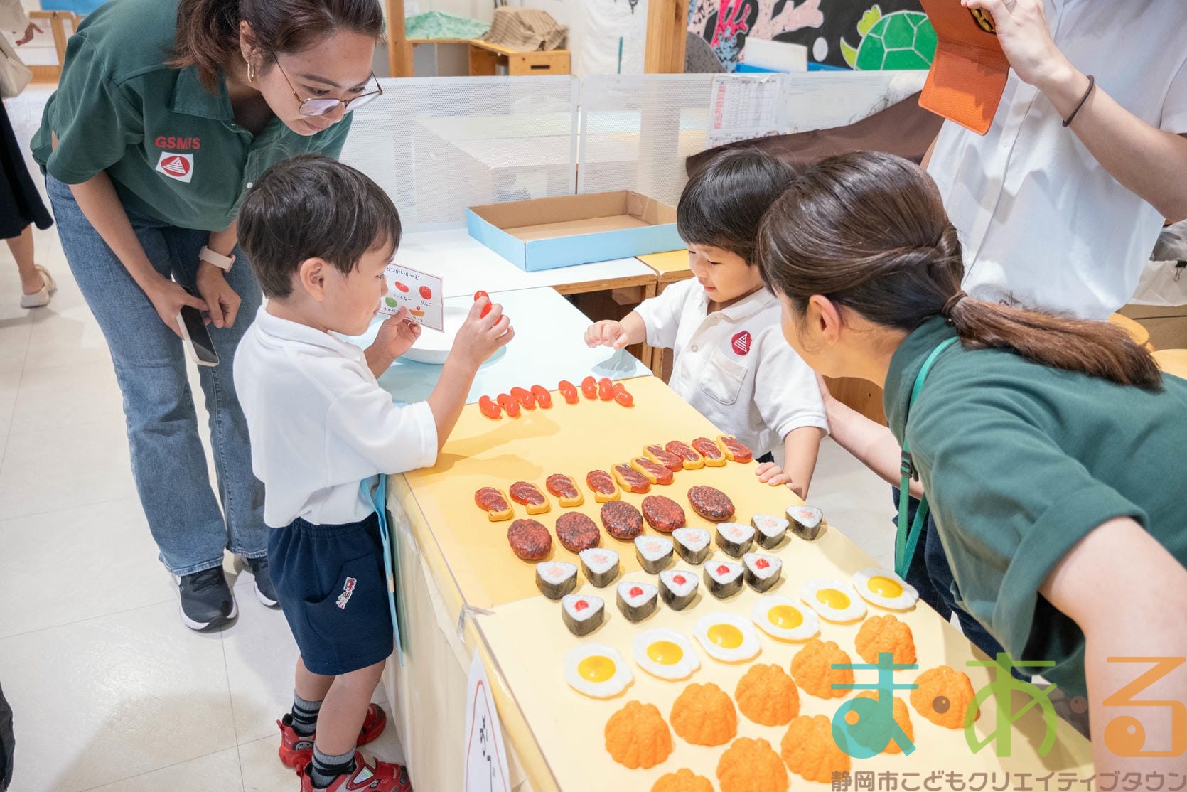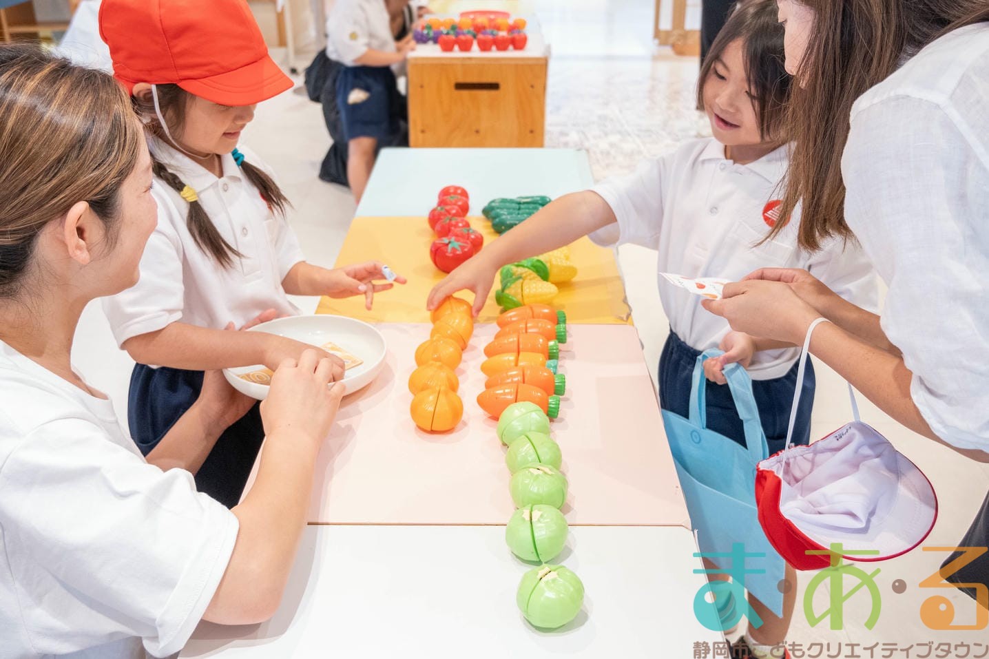 おみせやさん役とおきゃくさん役に分かれて準備からはじめます。