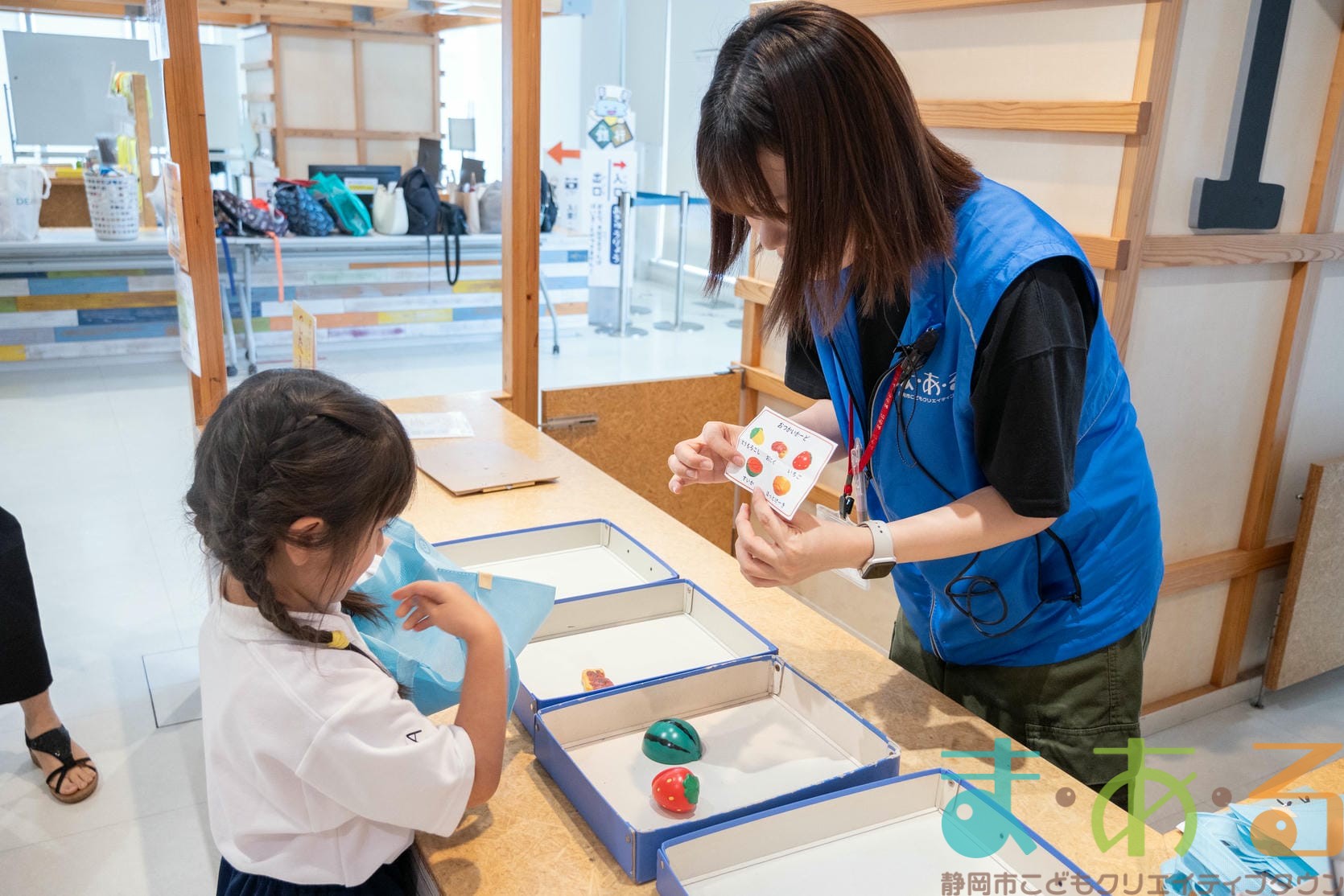 おきゃくさん役の子たちはバッグに入っている「おつかいカード」で買ってくるものを確認します。