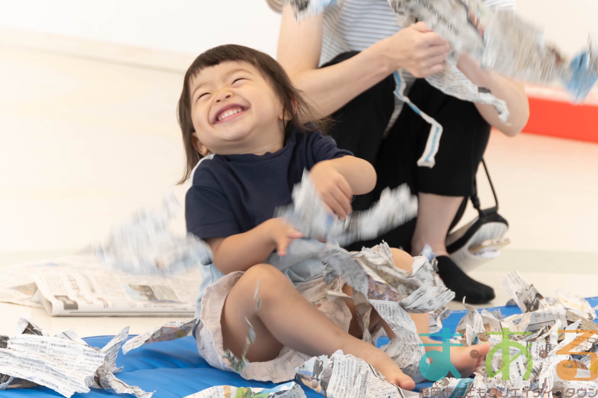 くしゃくしゃと丸める、にぎる、ひっぱるなどの遊びを通して指先の力を伸ばしていきましょう。