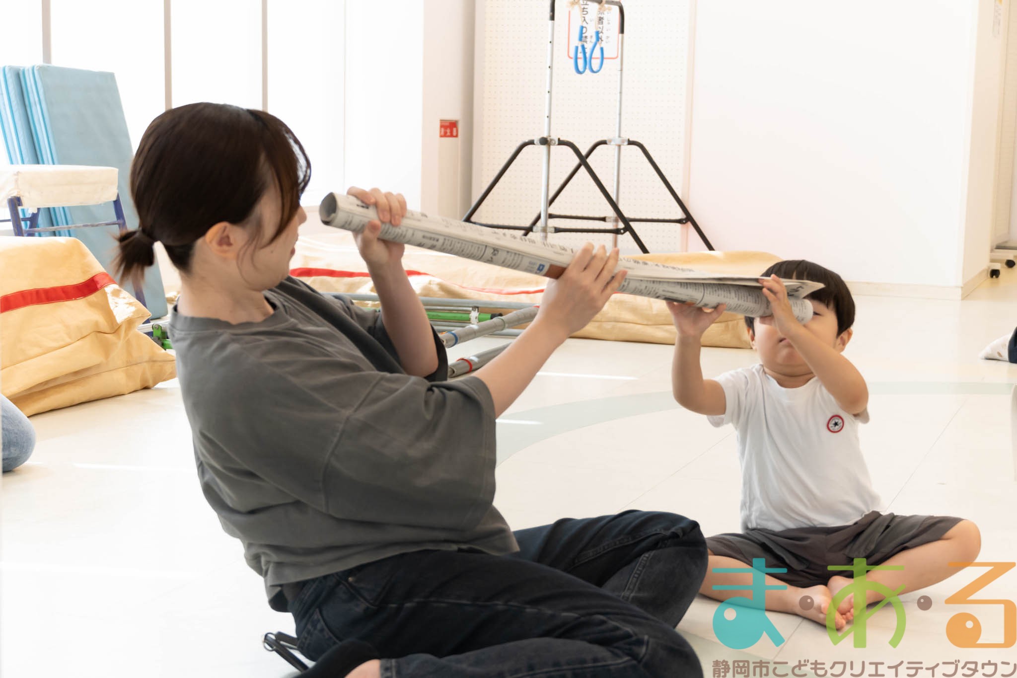 まずは細長い筒を作り、親子で端と端からのぞいてみます。