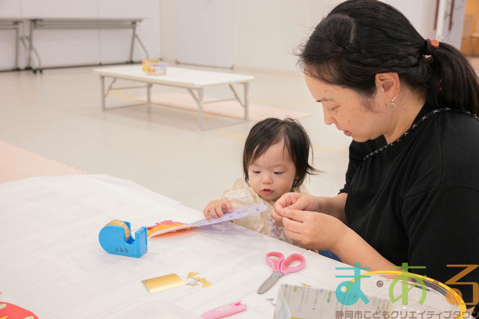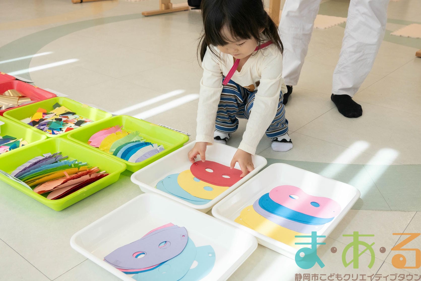 目をふさがないように飾り付けをしていきます。シールやテープでぺたぺた貼ったり、のりを使って折り紙を貼ったり自由に飾ってね。