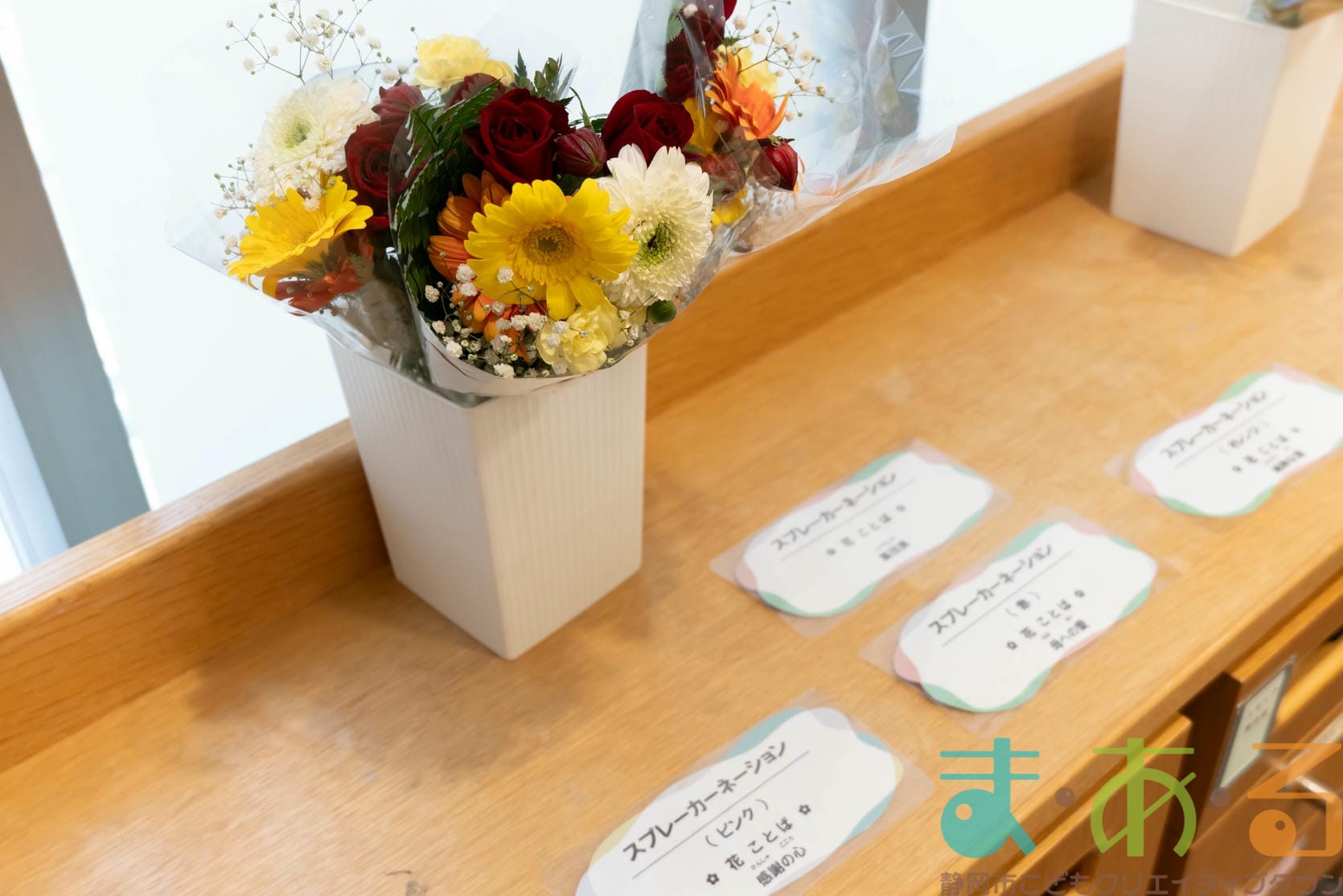 それぞれのお花には花言葉もあり、黄色いガーベラは「やさしさ」、白いガーベラは「きぼう」など、色によっても違うんですね。