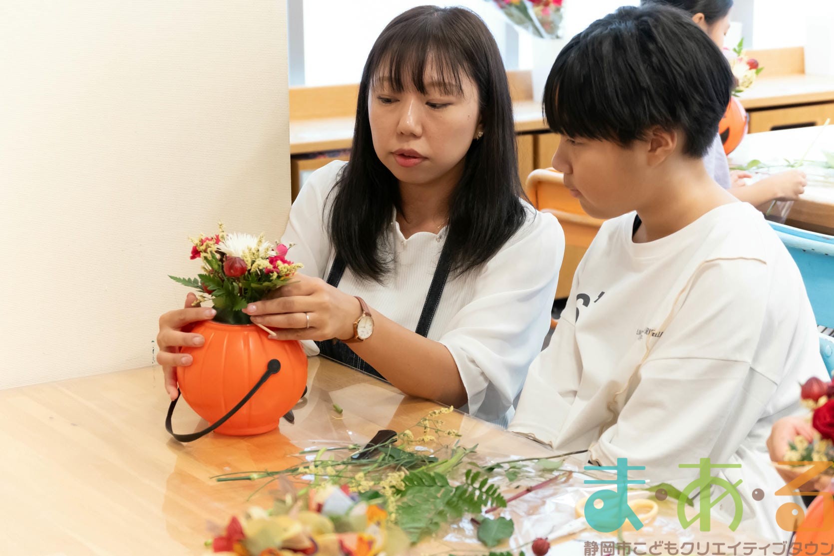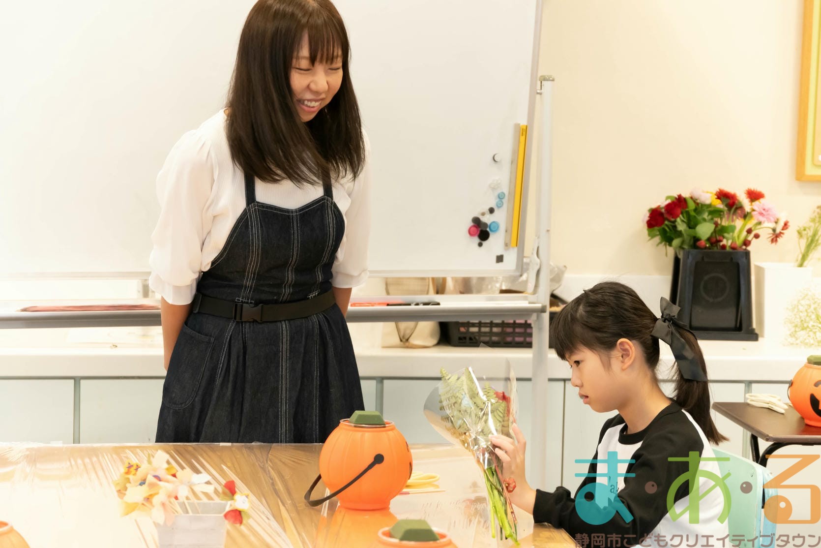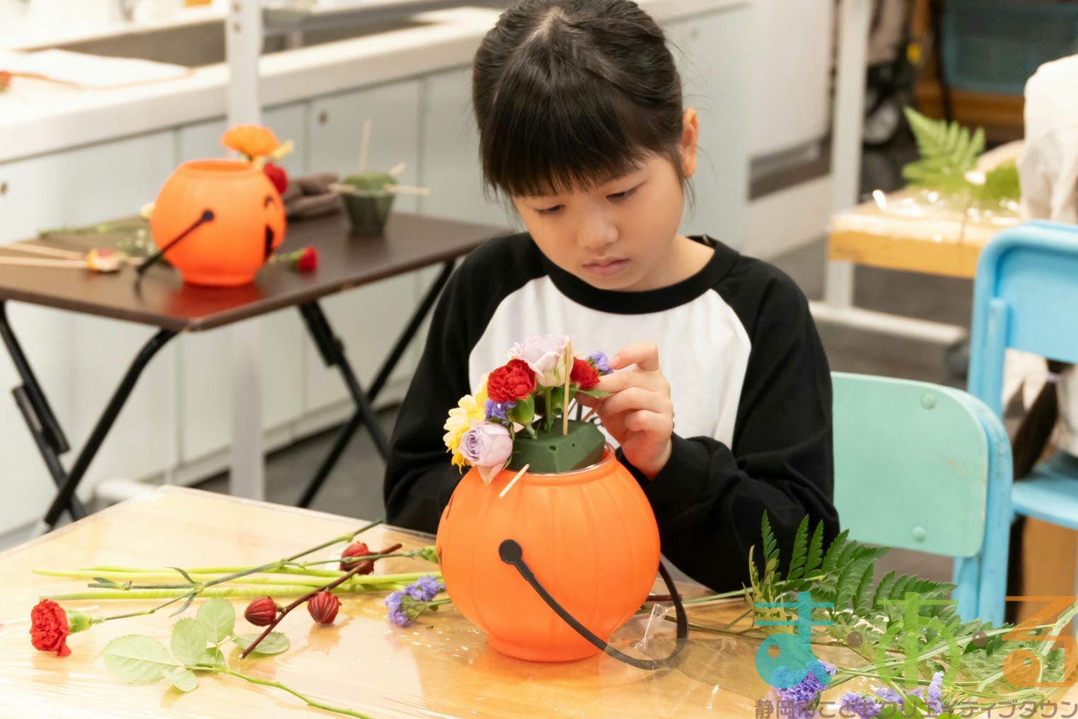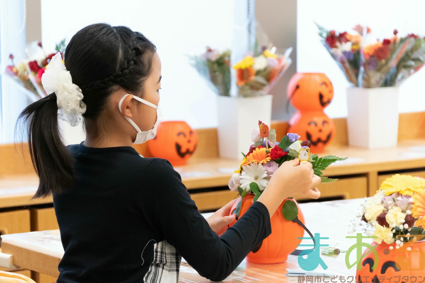10月19日は、フラワーアレンジメントデザイナーの後閑玲子先生(Apiacere -アピアチェーレ-)のご協力により、「ハロウィンのフラワーアレンジ!」講座を開催しました。