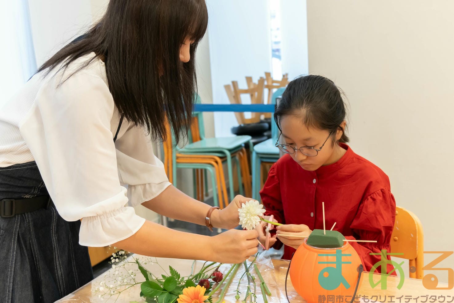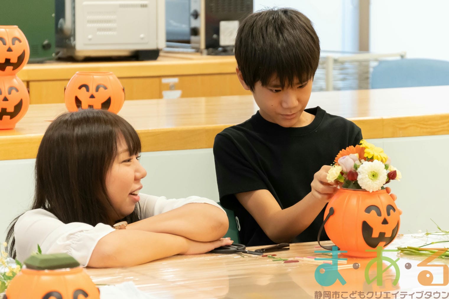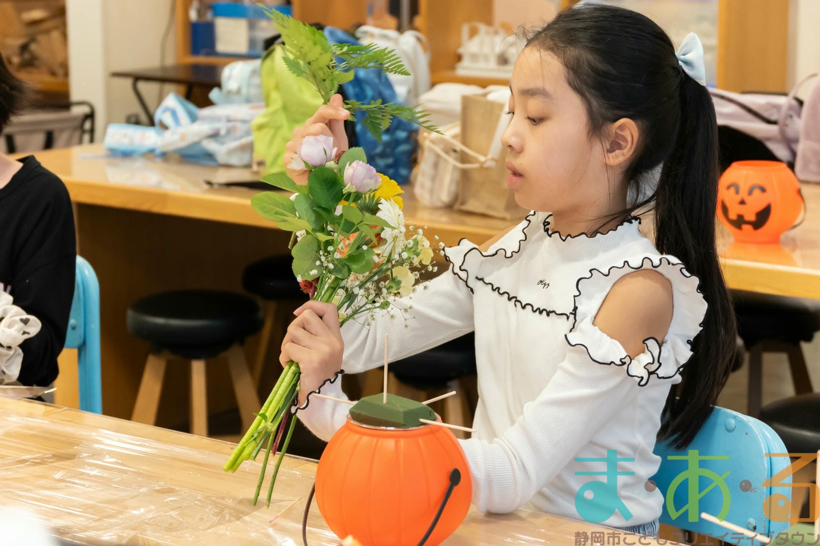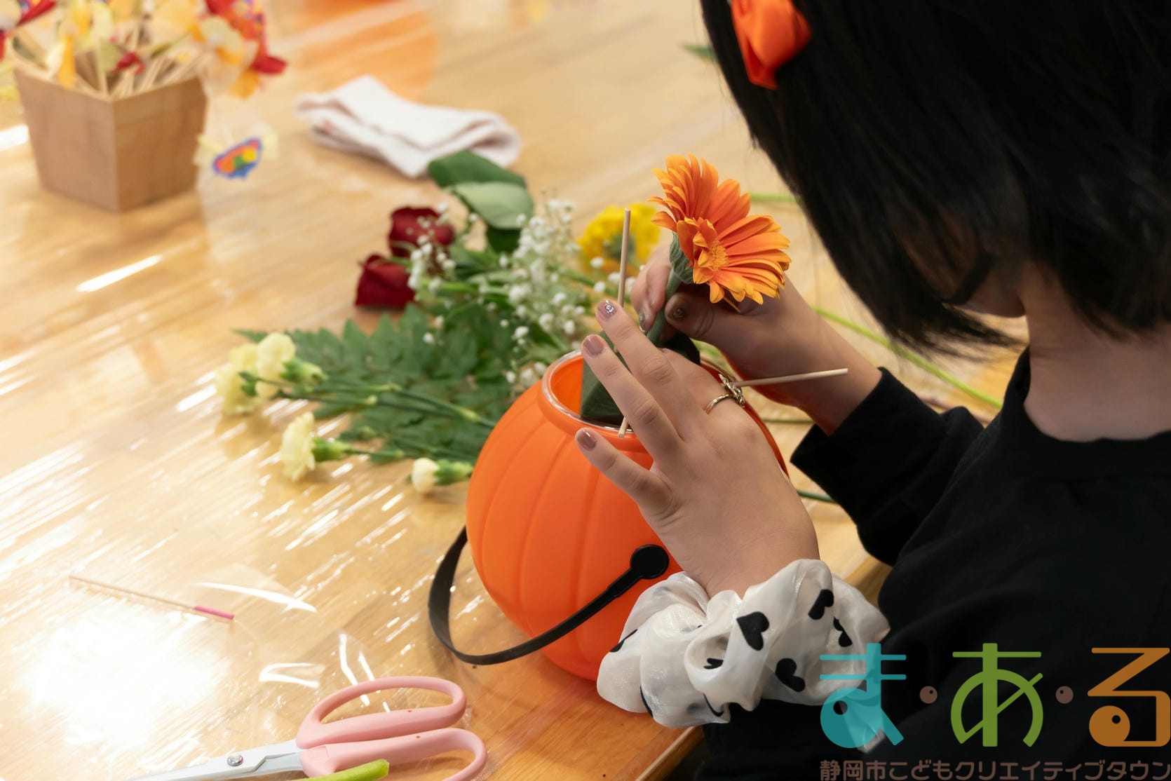 10月19日は、フラワーアレンジメントデザイナーの後閑玲子先生(Apiacere -アピアチェーレ-)のご協力により、「ハロウィンのフラワーアレンジ!」講座を開催しました。
