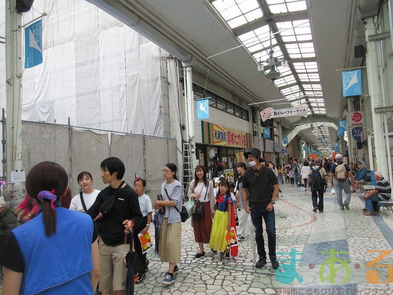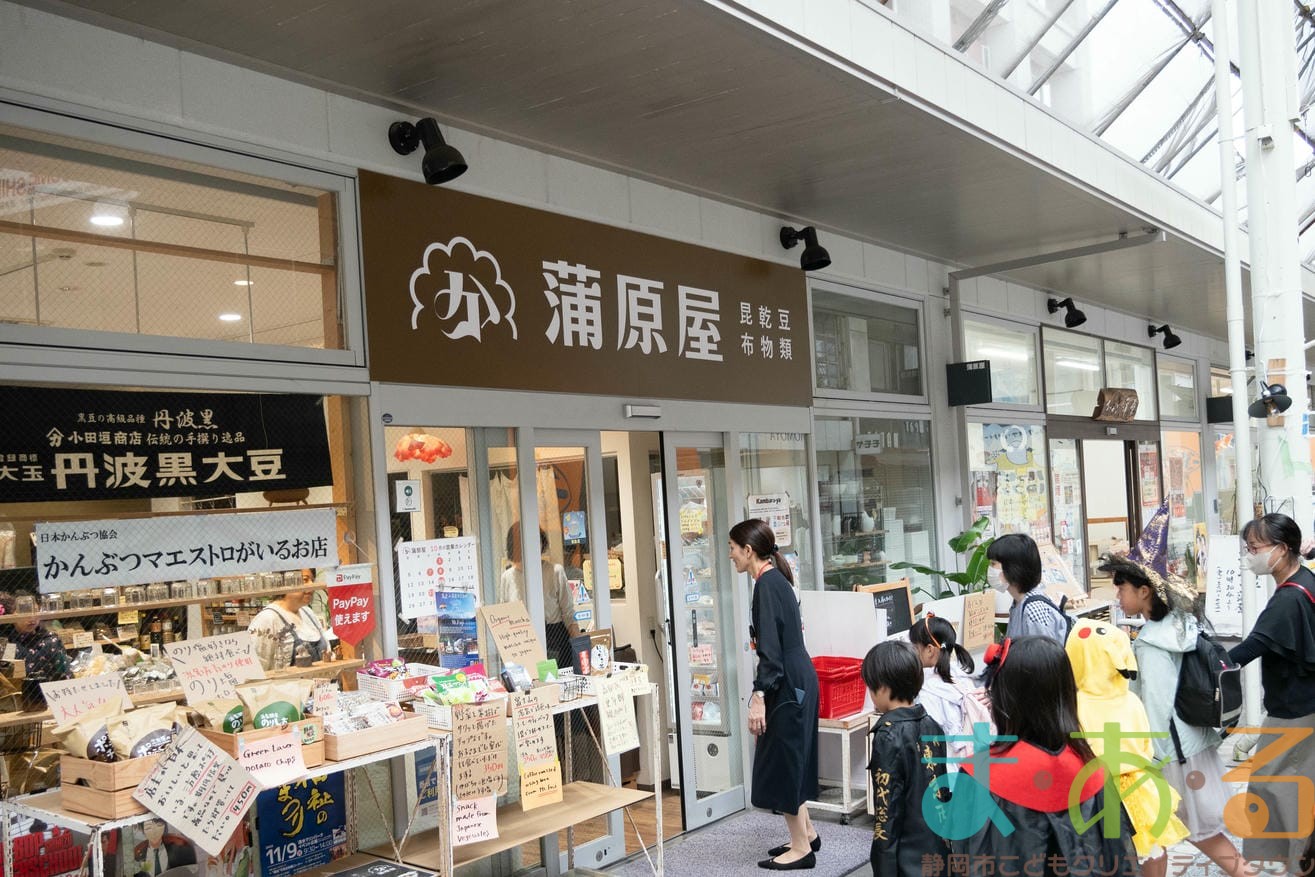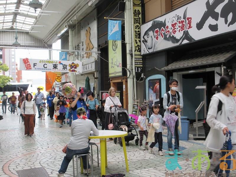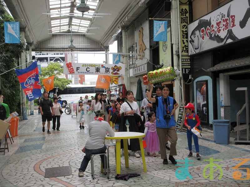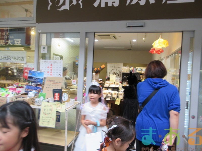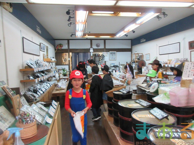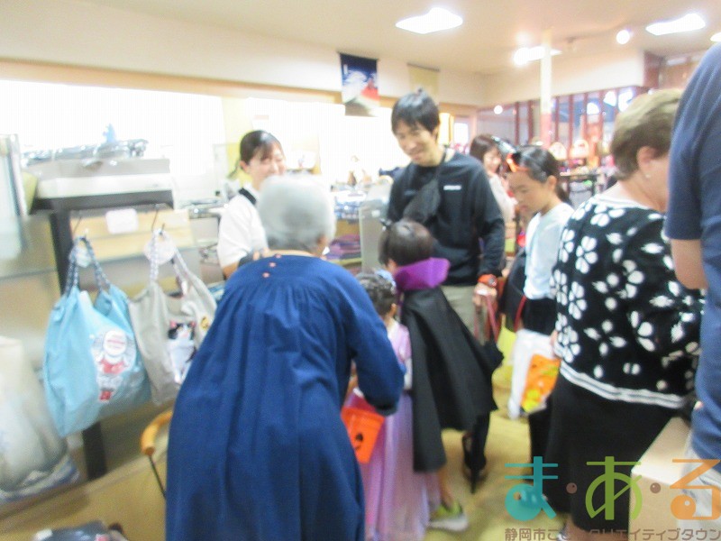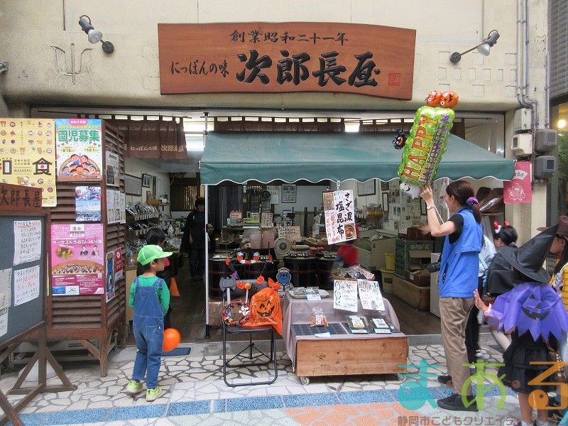 商店街のアーケード入り口にたどり着くと、外国人の観光客がたくさんいて「ハッピーハロウィン♪」とこどもたちに声をかけてくれました。この日はちょうど大型客船が清水港に寄稿していたので、そこからの観光客が特に多い日でした。