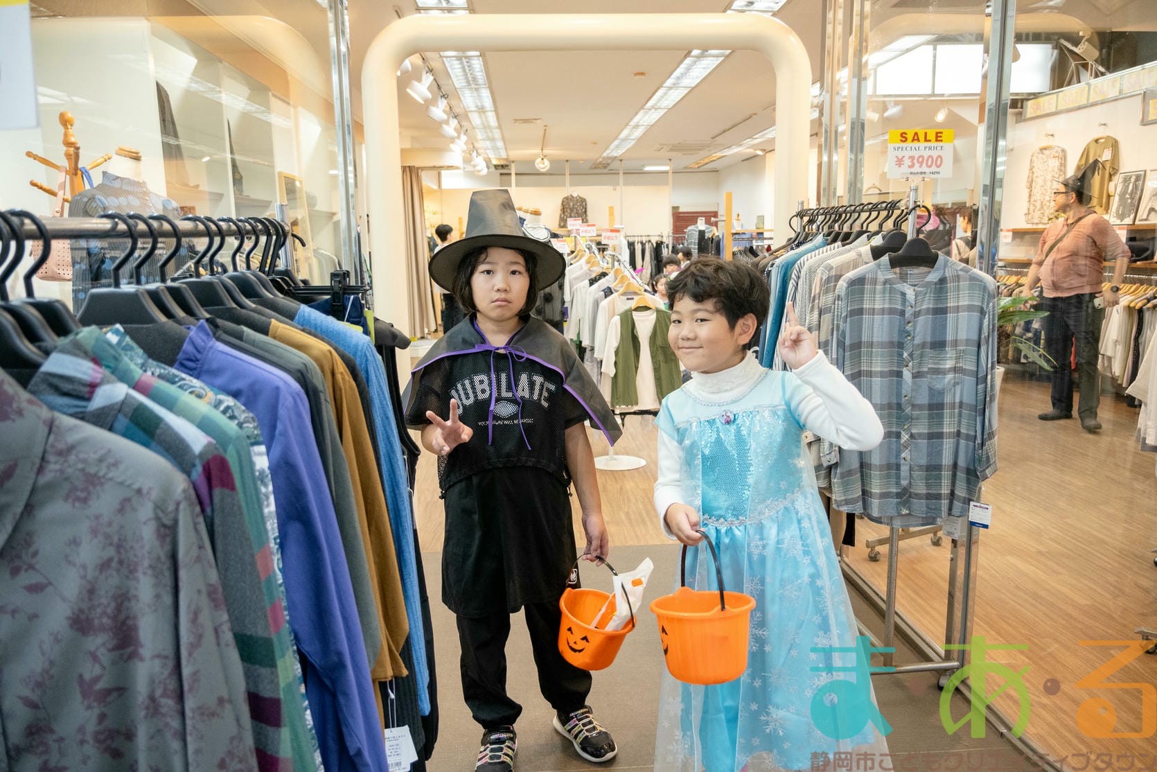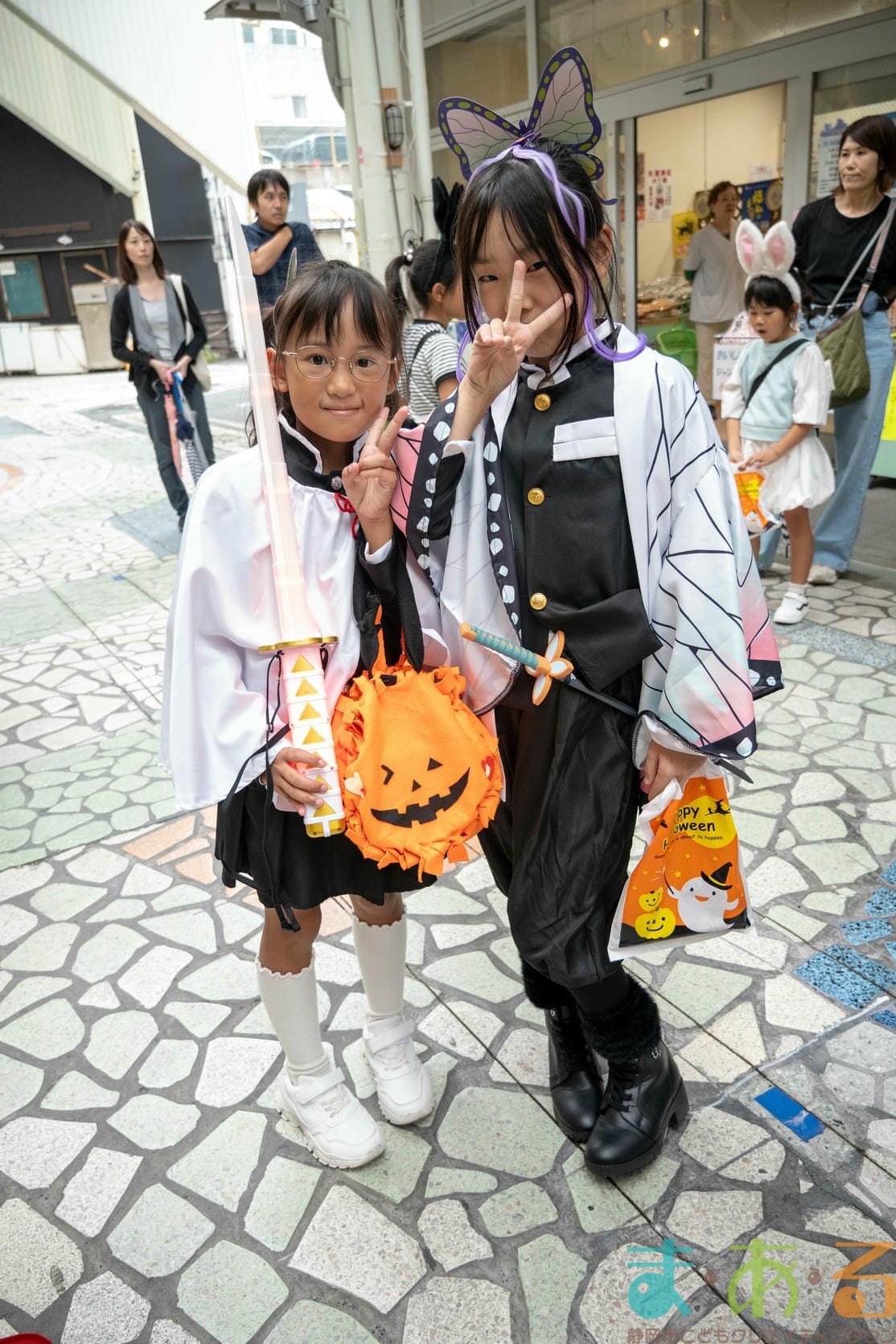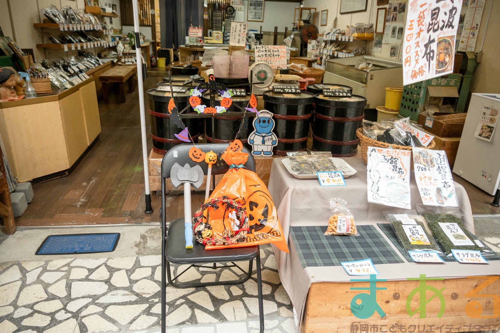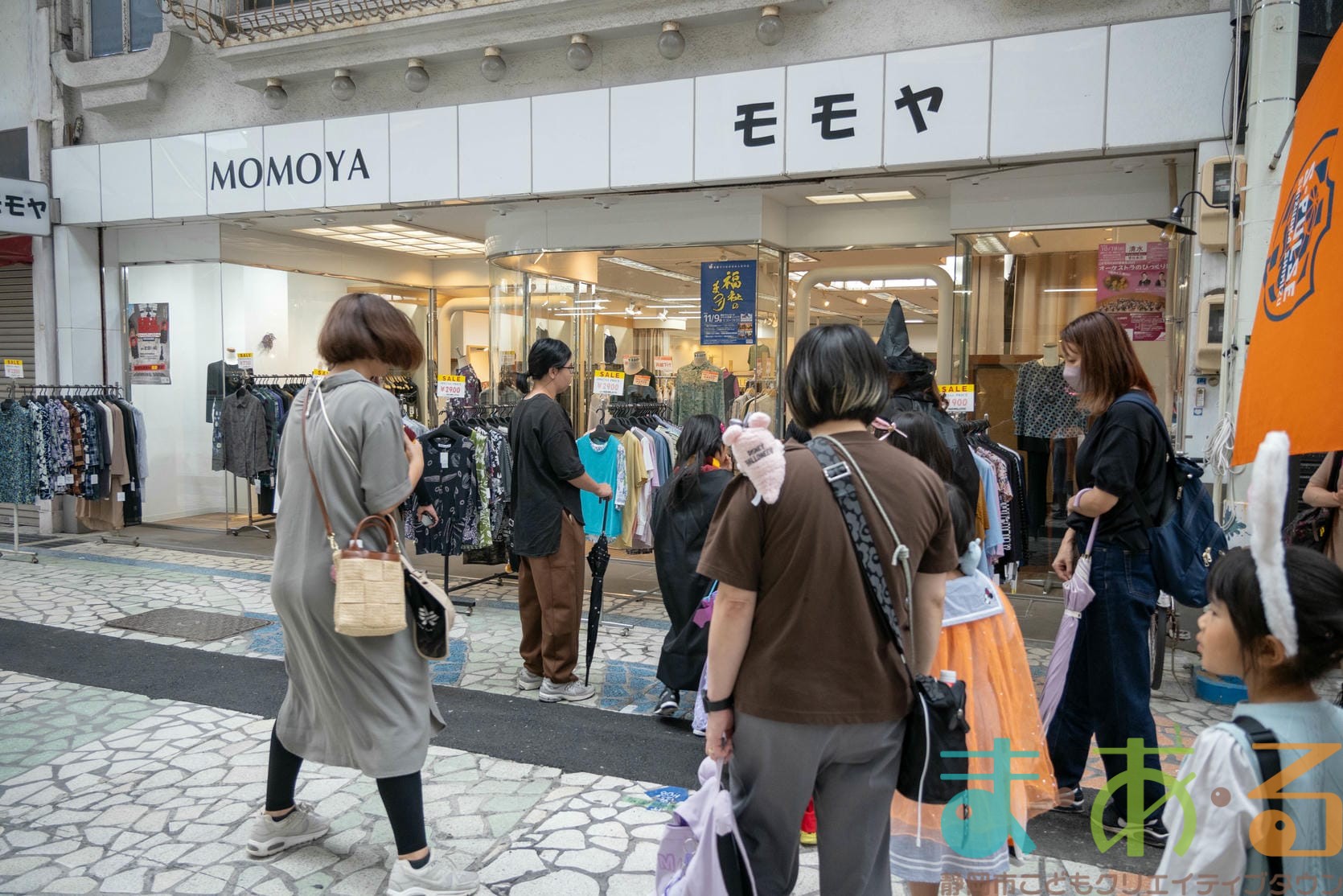 商店街のアーケード入り口にたどり着くと、外国人の観光客がたくさんいて「ハッピーハロウィン♪」とこどもたちに声をかけてくれました。この日はちょうど大型客船が清水港に寄稿していたので、そこからの観光客が特に多い日でした。