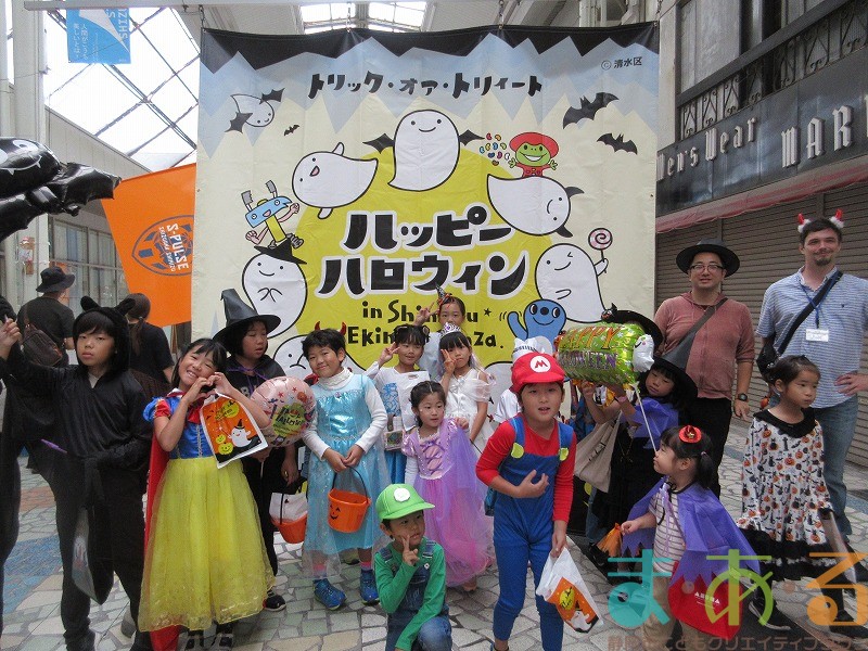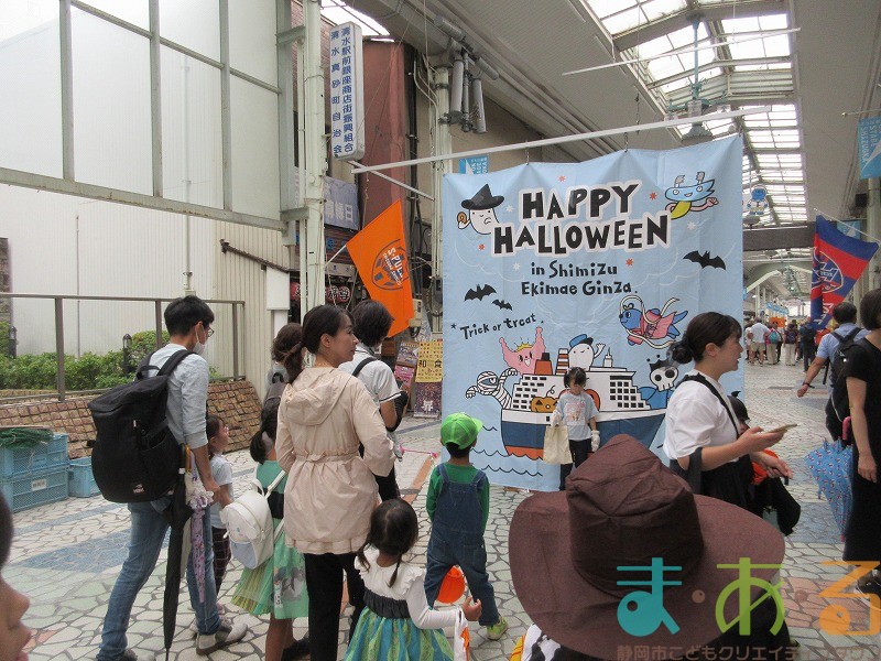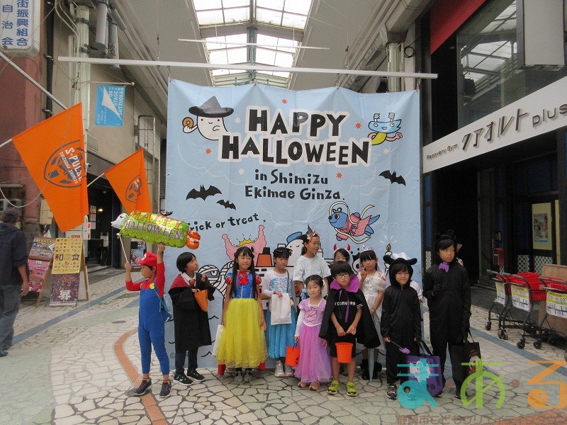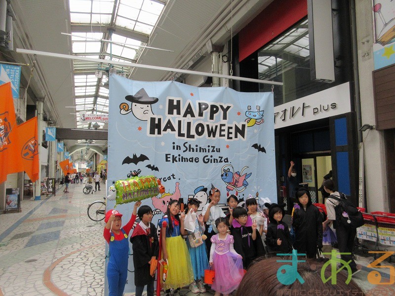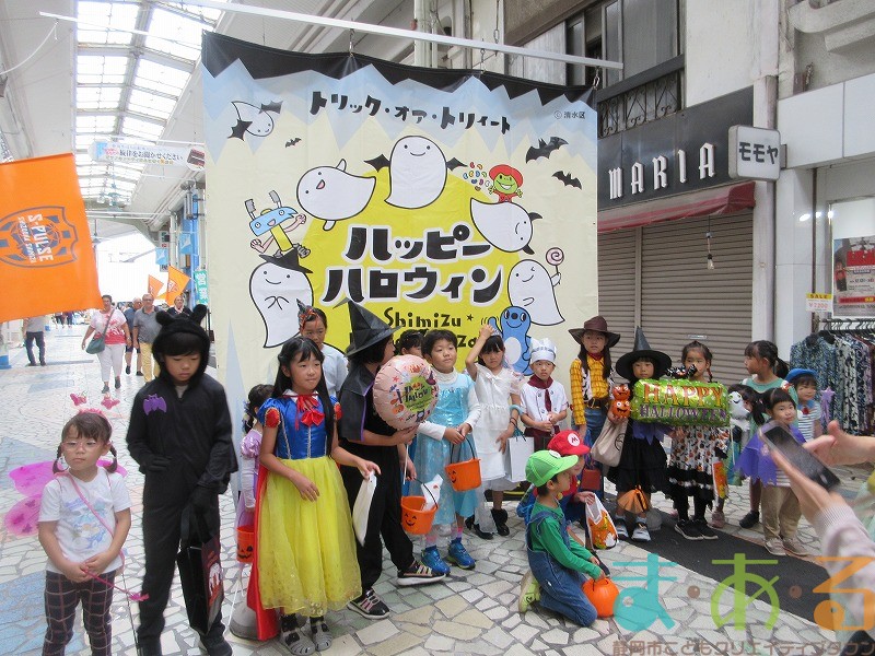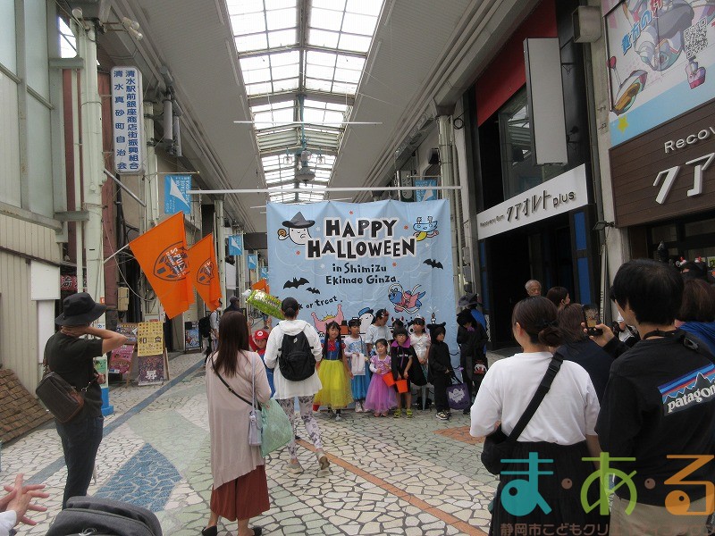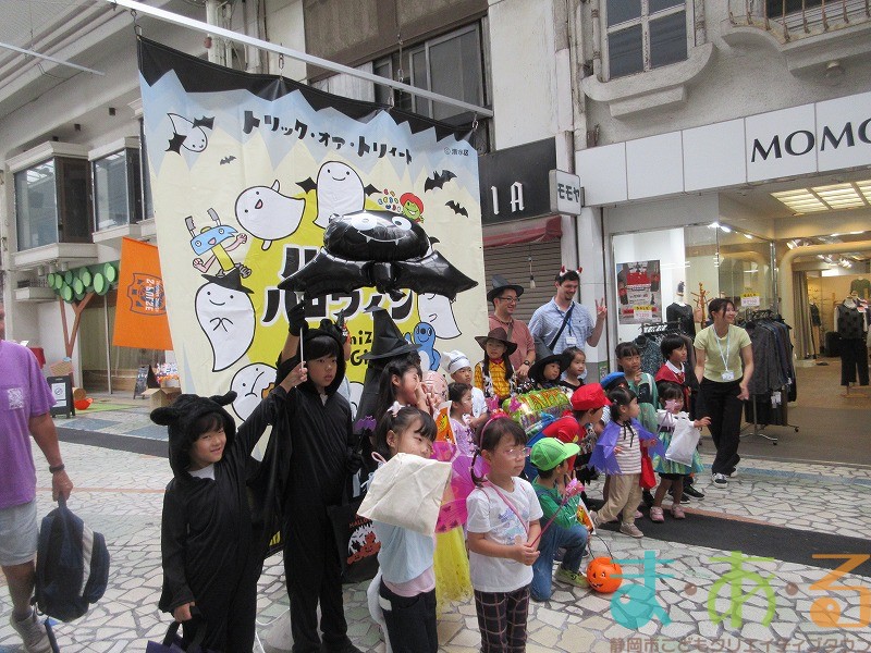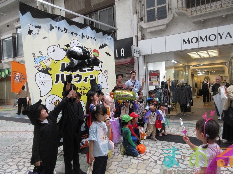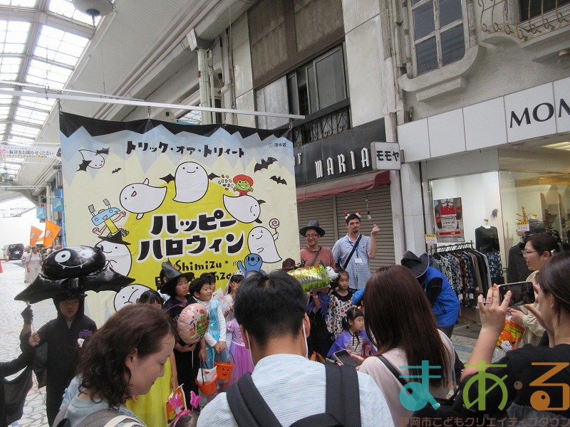 10月4日にビバしみず様にご協力いただき、ハロウィンおさんぽパレードを開催しました。清水駅前銀座商店街を仮装をしたこどもたちがおさんぽをしながらトリックオアトリートの合言葉に、商店街の方々と触れ合いながらお菓子をもらって歩きました。