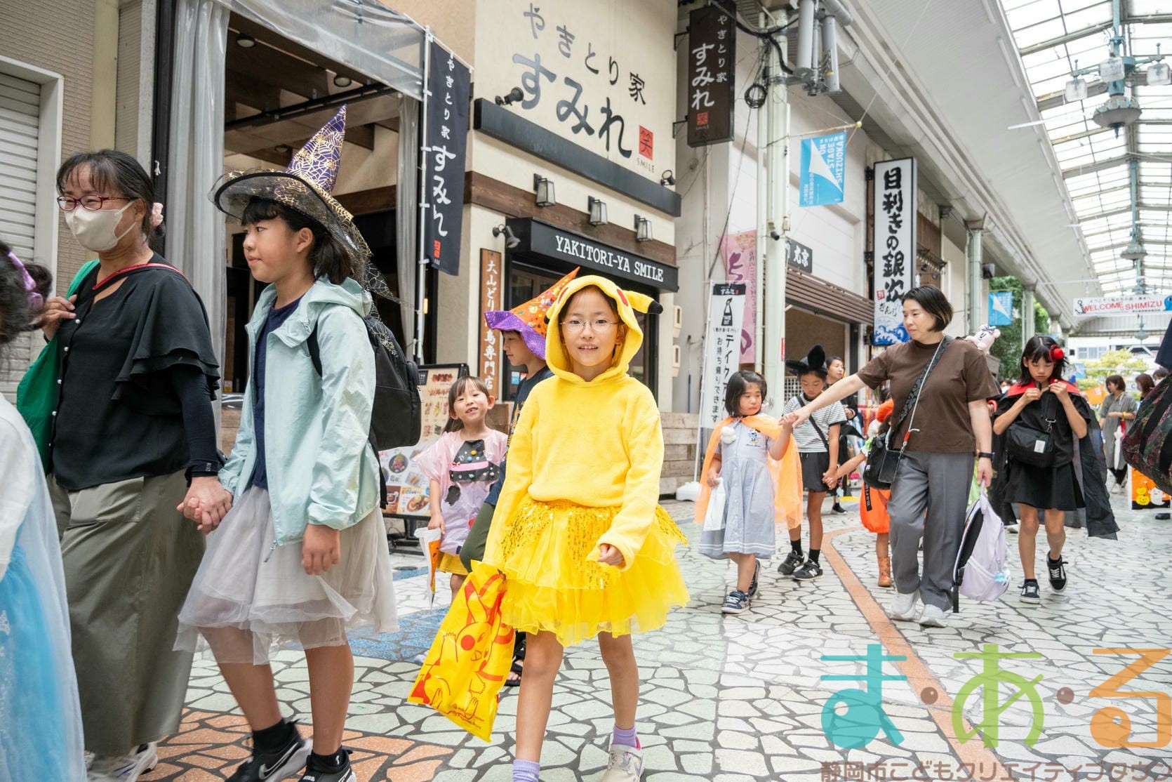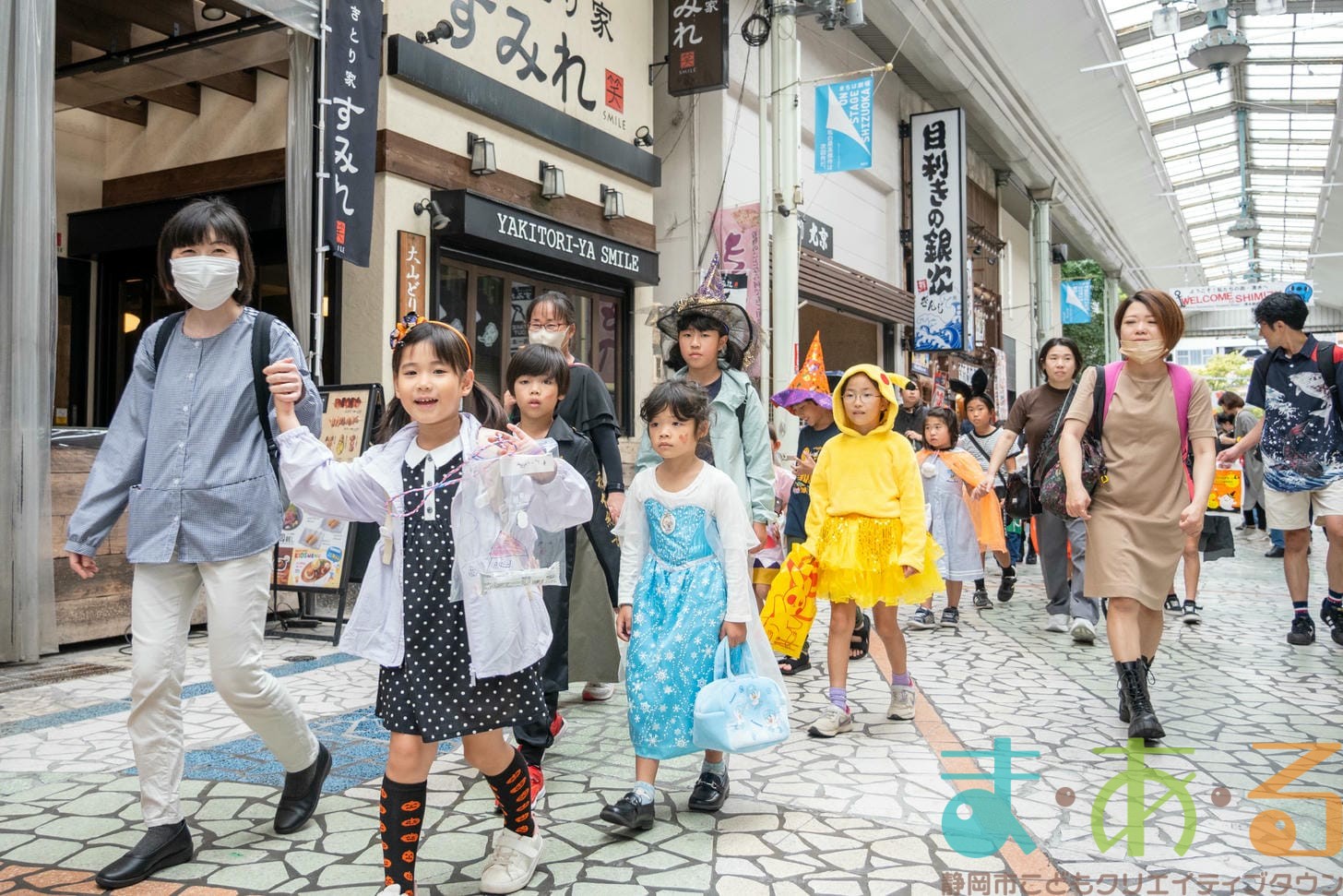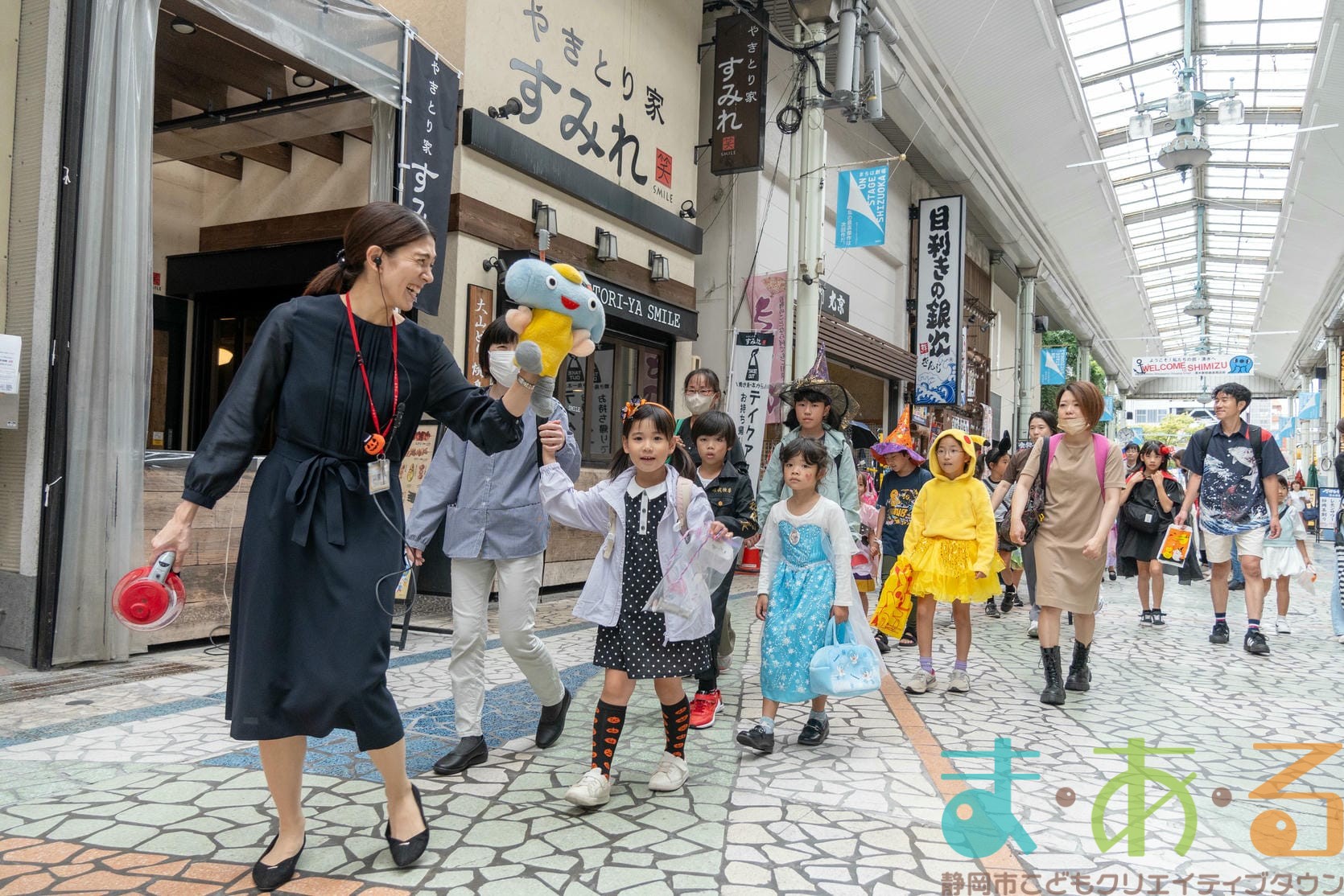 10月4日にビバしみず様にご協力いただき、ハロウィンおさんぽパレードを開催しました。清水駅前銀座商店街を仮装をしたこどもたちがおさんぽをしながらトリックオアトリートの合言葉に、商店街の方々と触れ合いながらお菓子をもらって歩きました。