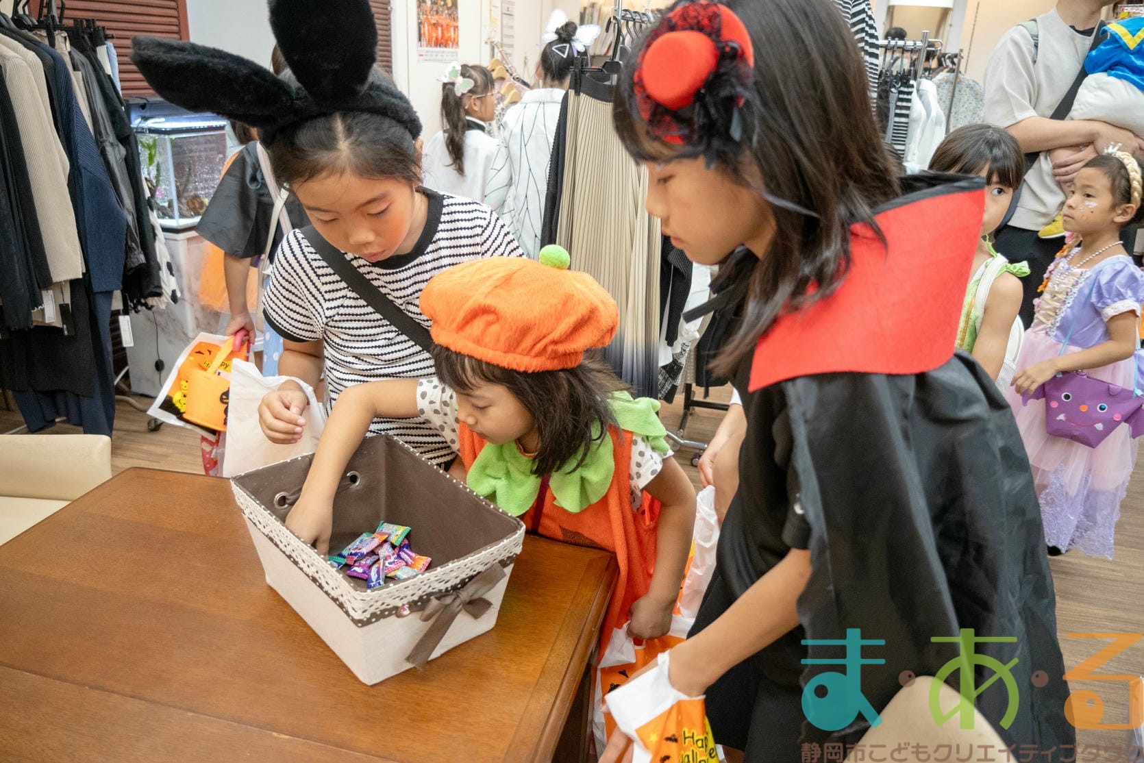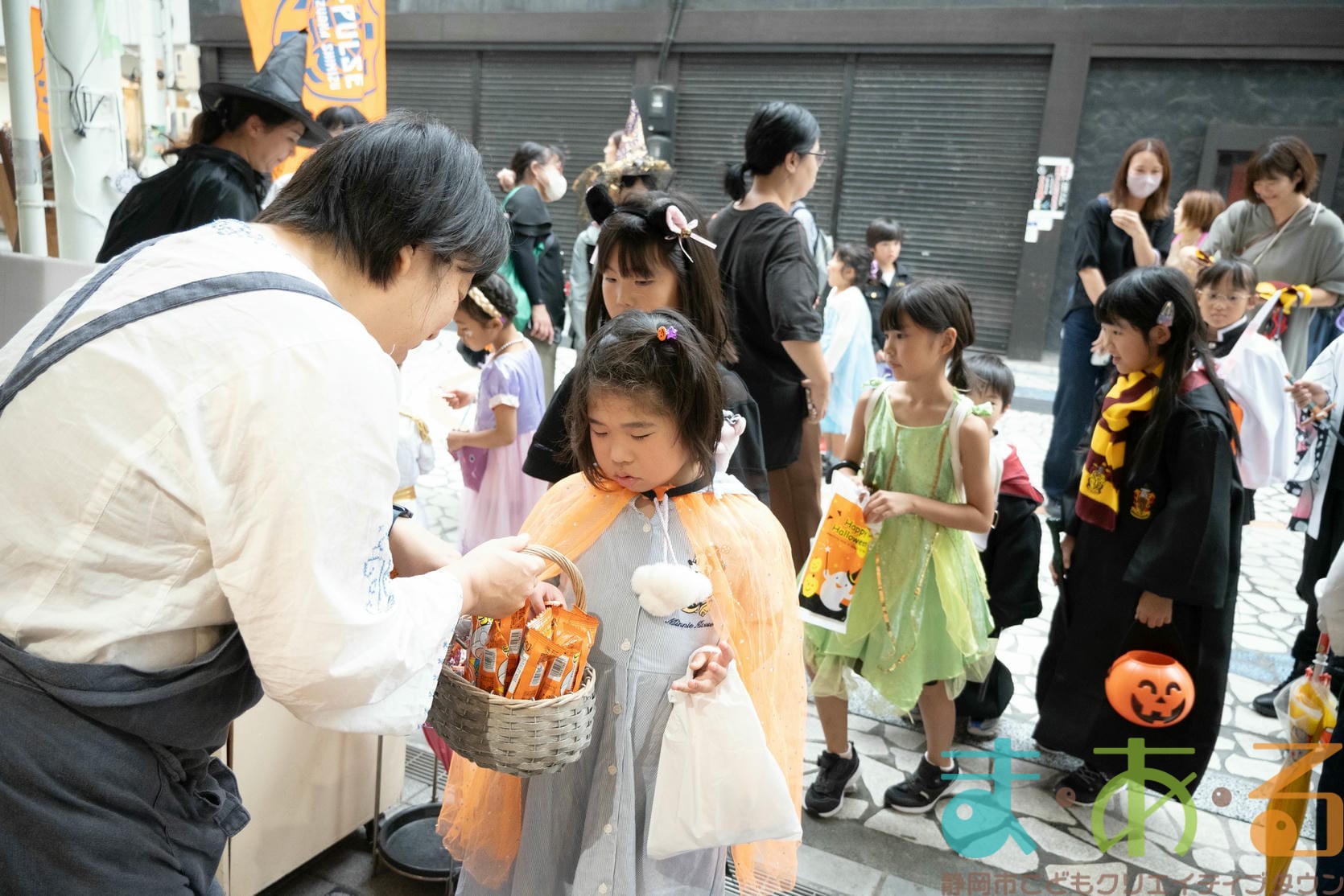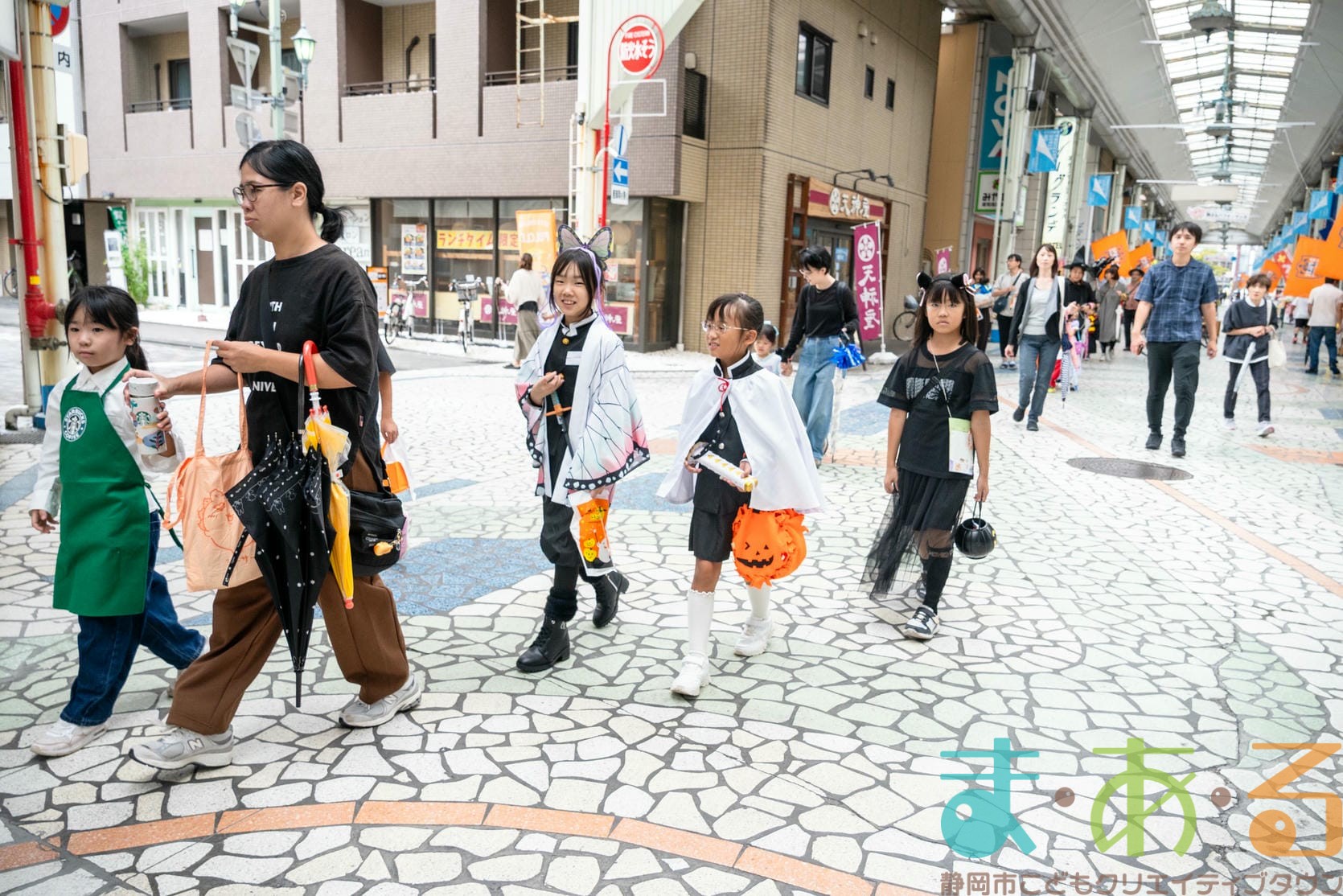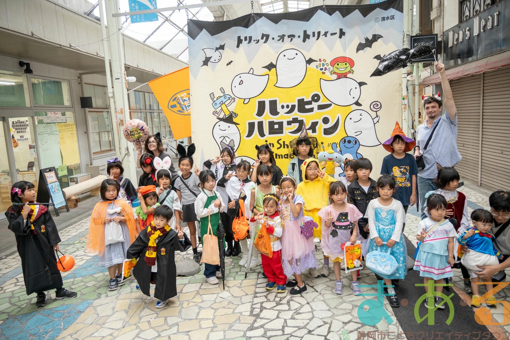10月4日にビバしみず様にご協力いただき、ハロウィンおさんぽパレードを開催しました。清水駅前銀座商店街を仮装をしたこどもたちがおさんぽをしながらトリックオアトリートの合言葉に、商店街の方々と触れ合いながらお菓子をもらって歩きました。