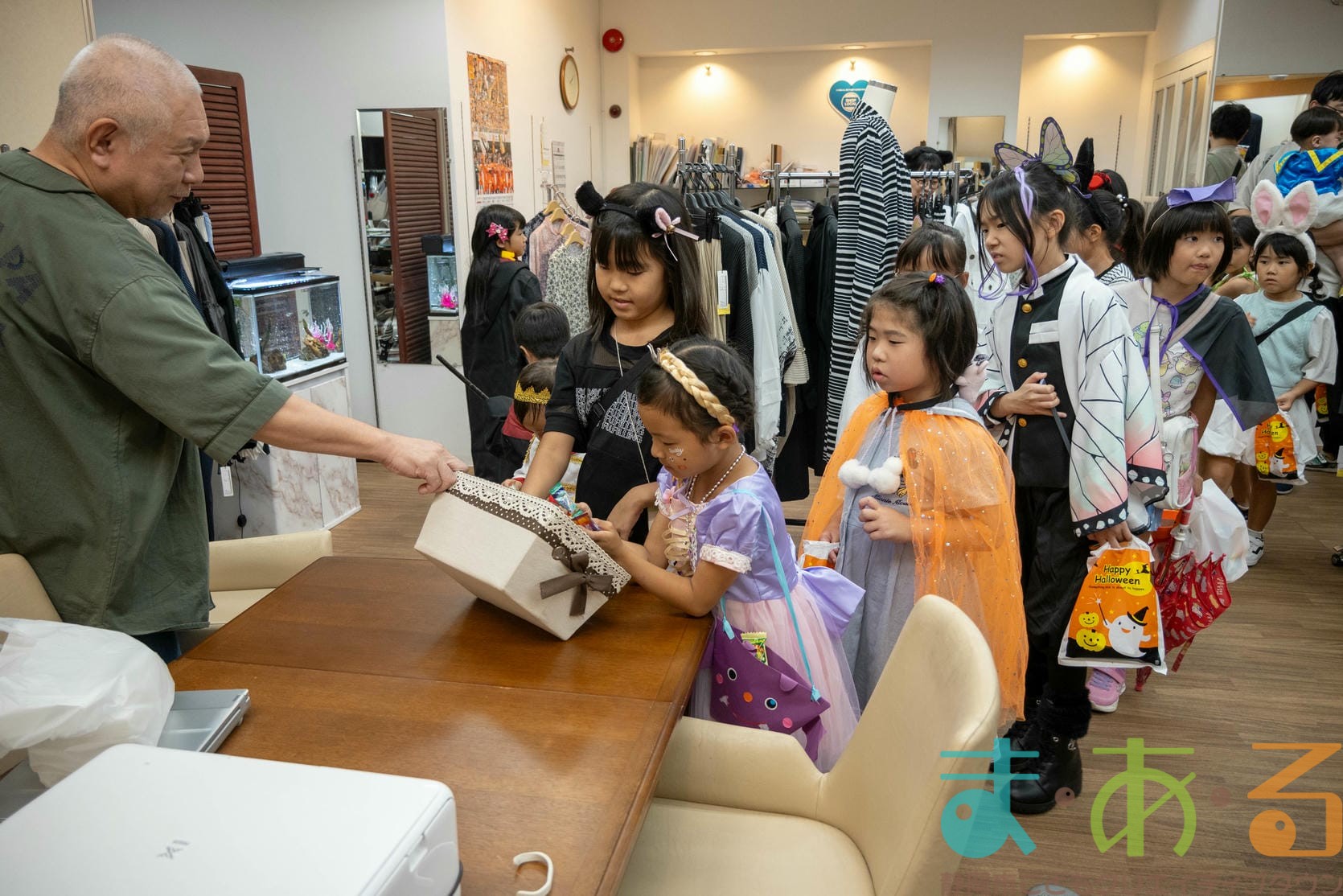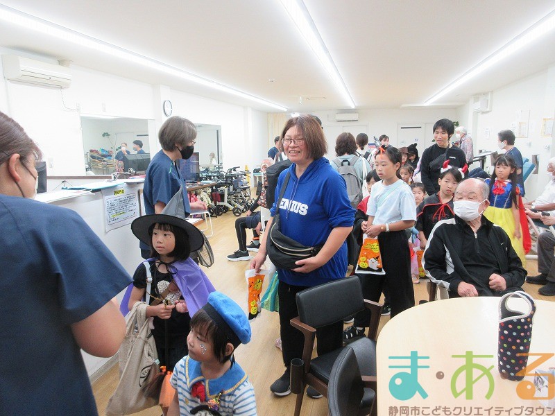 仮装をしたこどもたちに自然と利用者の方も笑顔になります。