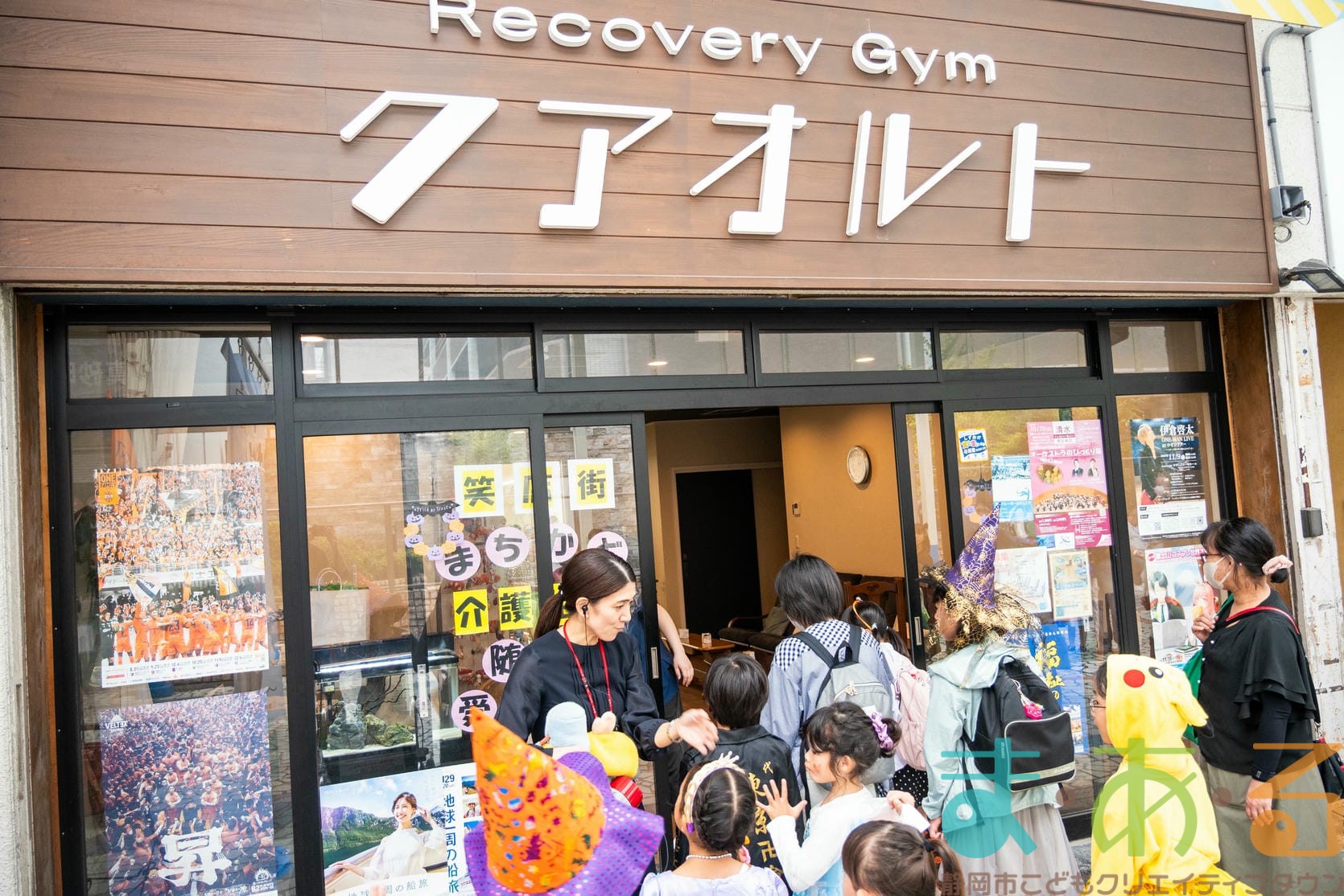 次に向かったのは、「Recovery Gym クアオルト」さんでした。ここでは、お店の方だけでなく、利用者の方も子どもたちにお菓子を渡してくれました。