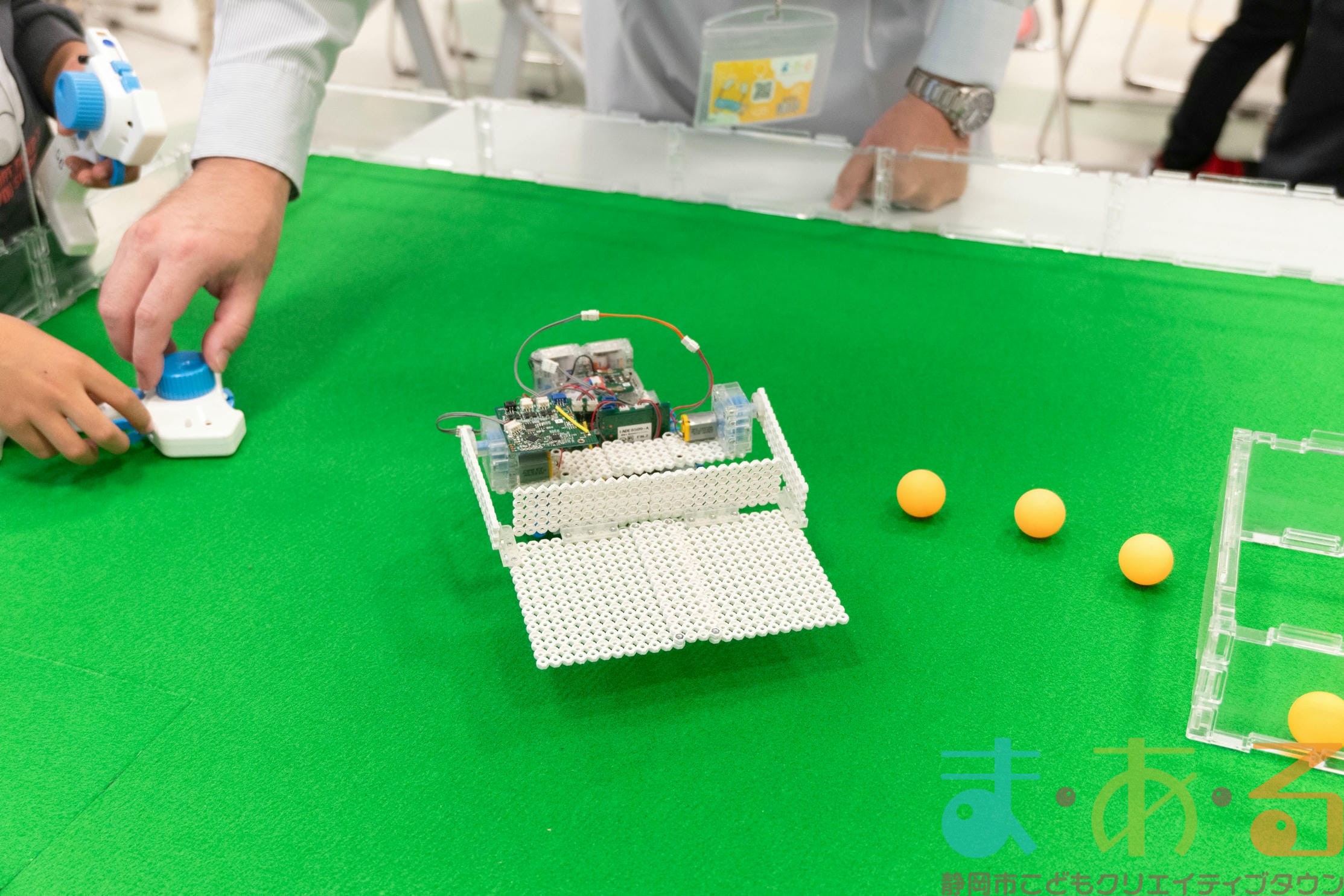 今回のロボットは、正確に球をすくい上げ、指定の場所に入れることが目的です。