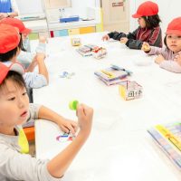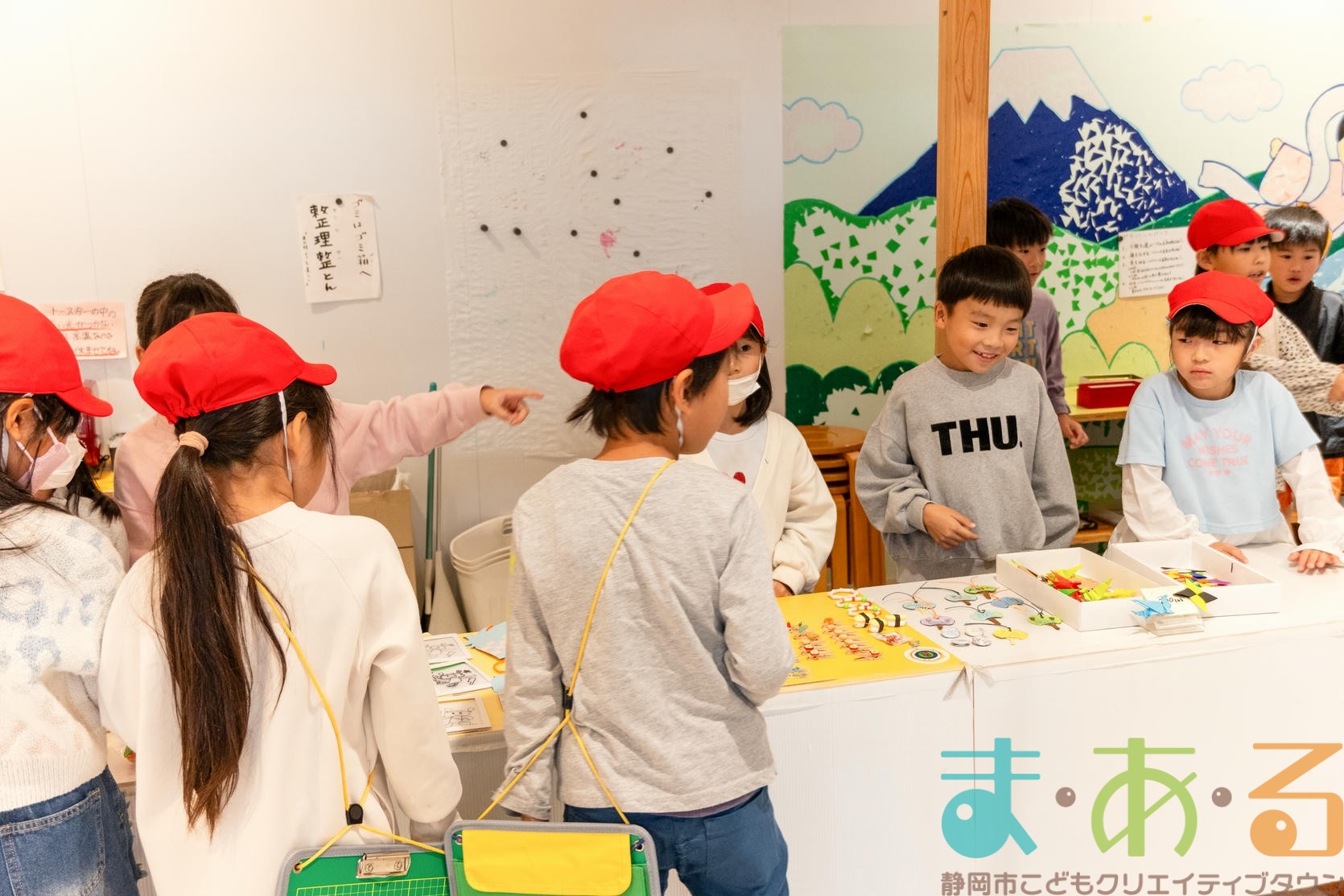 次はおしごとごっこです。駒越商店がオープンしたのでおみせやさん役とおきゃくさん役を交代で体験しました。どれにしようかワクワクした表情でおかいものをするおきゃくさん、大きな声で「いらっしゃいませ!」と声をかけるおみせやさん、皆さん元気いっぱいにおしごとごっこを楽しみました。