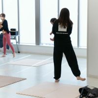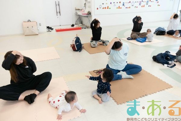 ママたちは頭と背中に手を置いて、ゆったりとしたストレッチからスタートです。