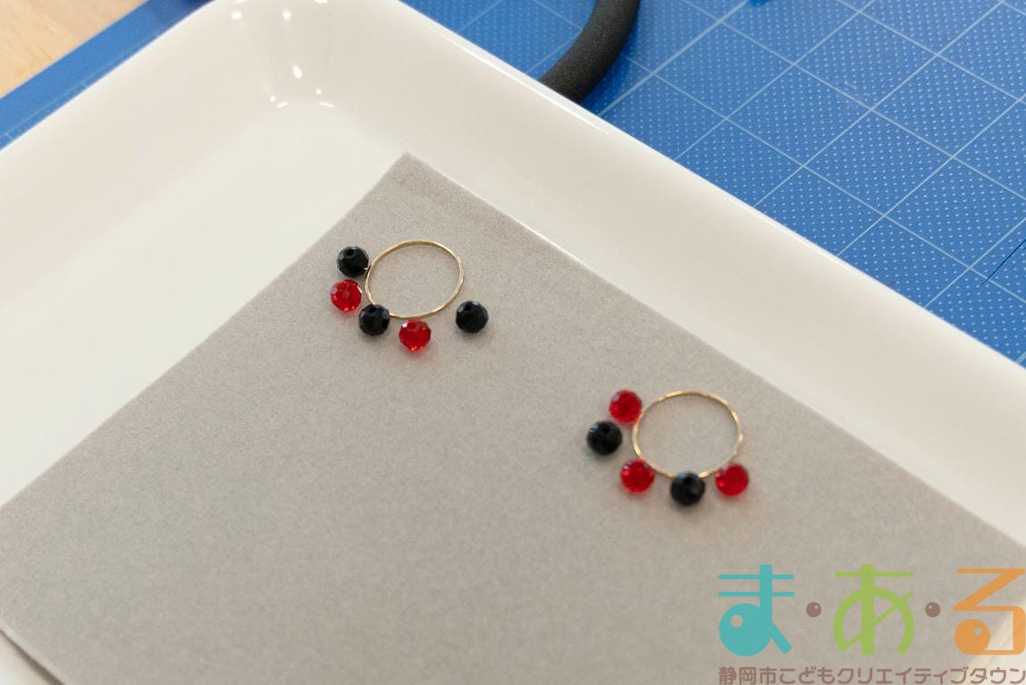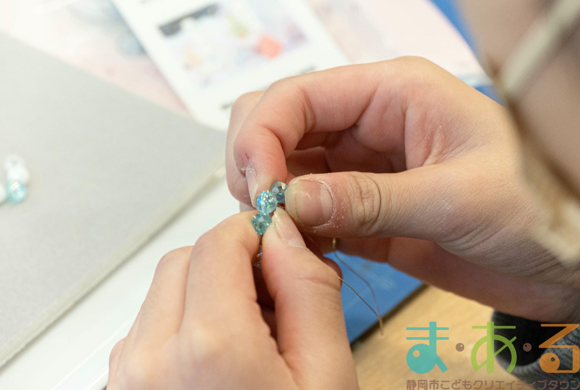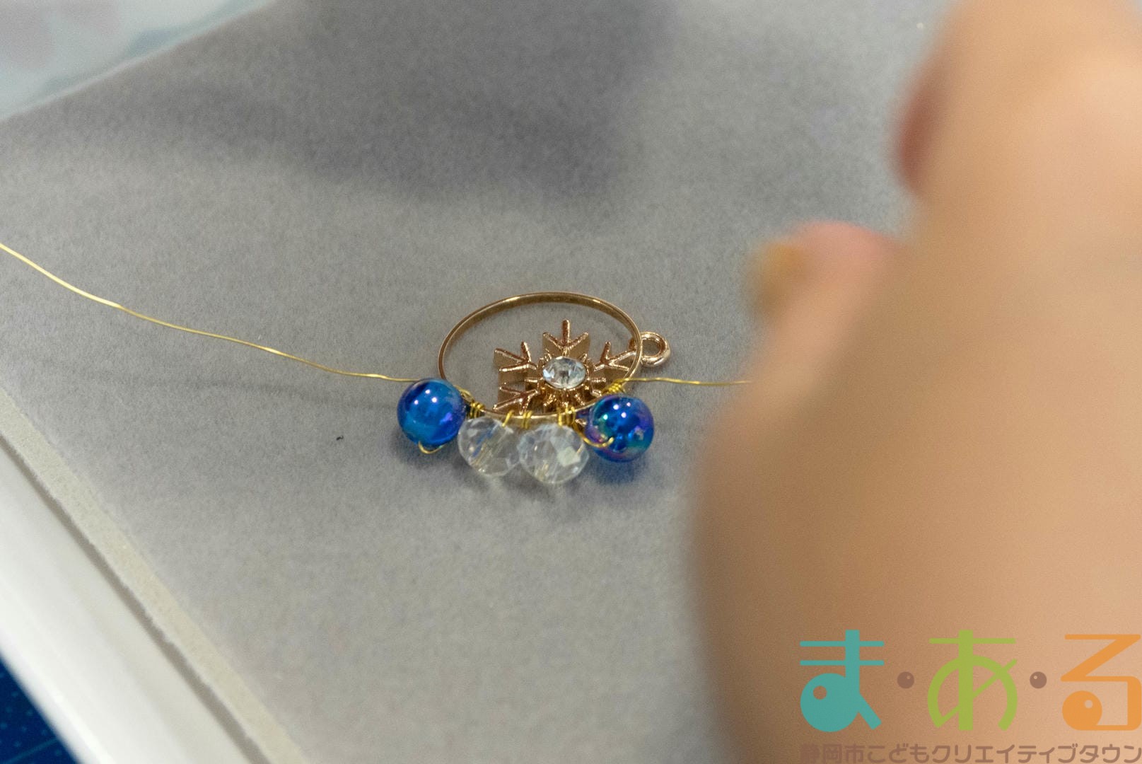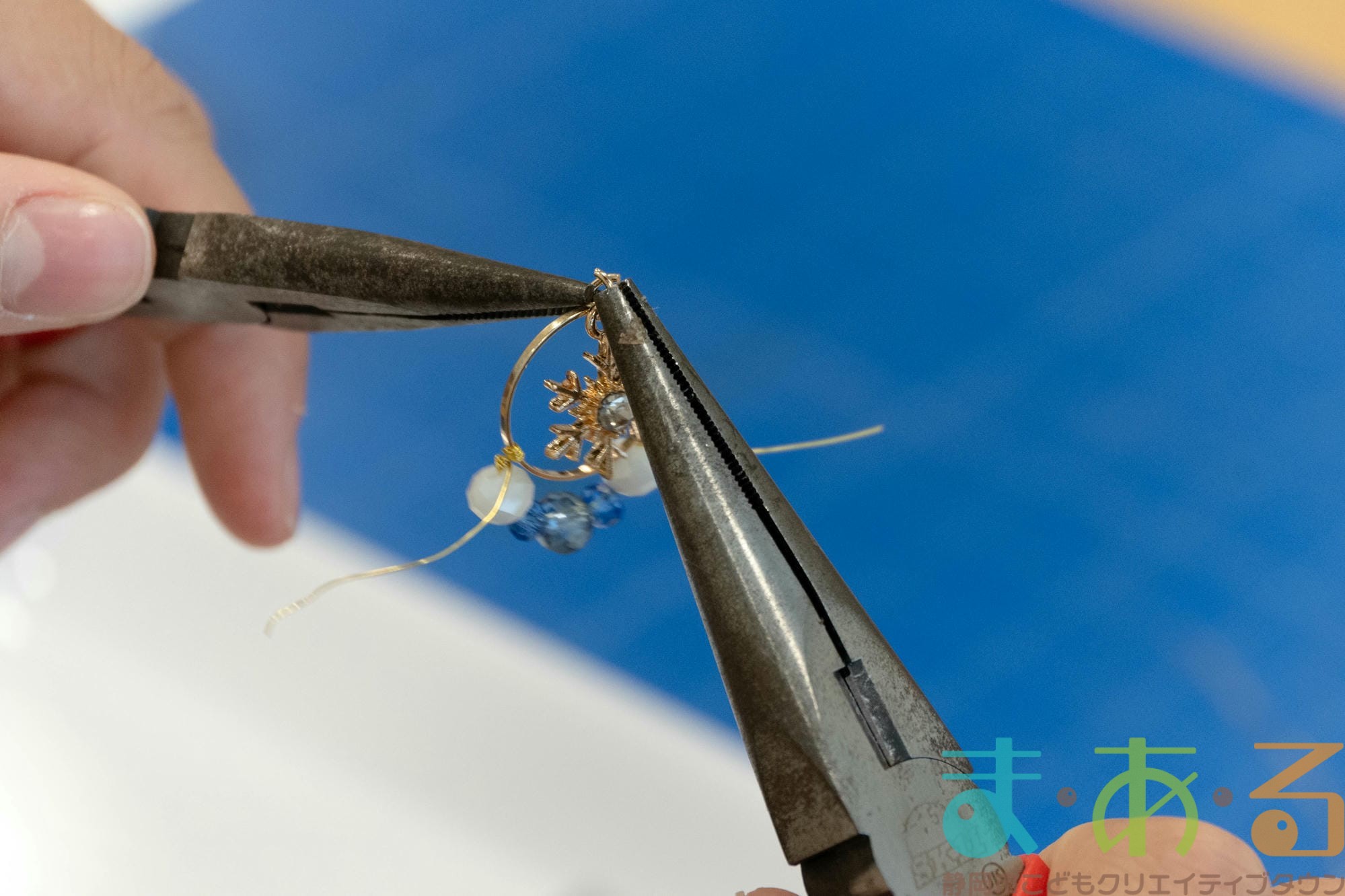丁寧に教えていただきながら、きっちりとワイヤーでビーズを固定することが出来ました。