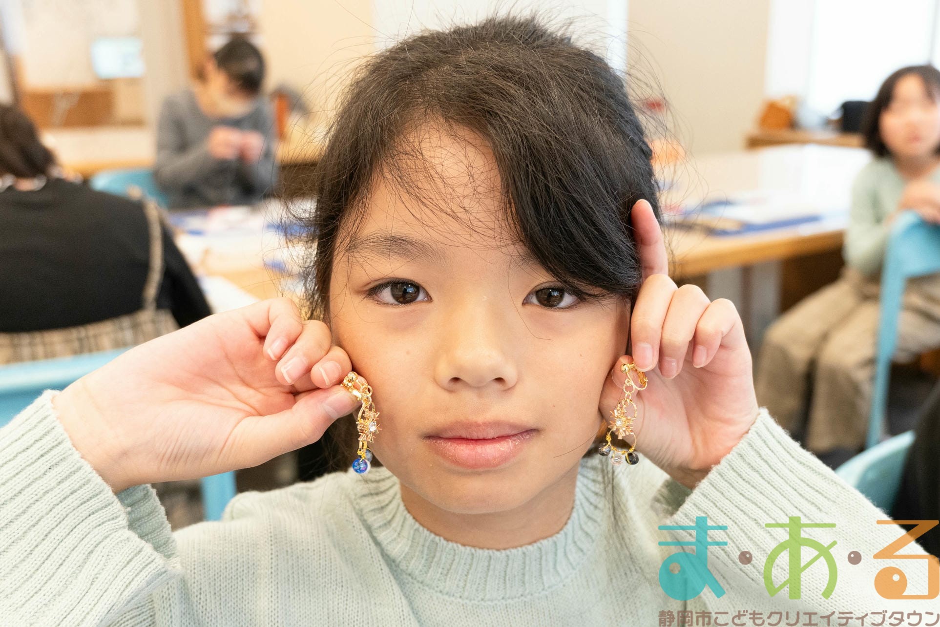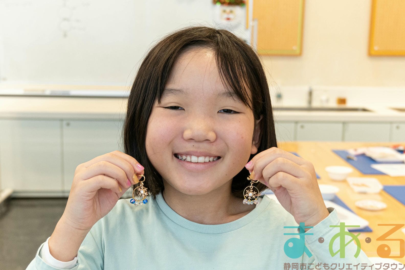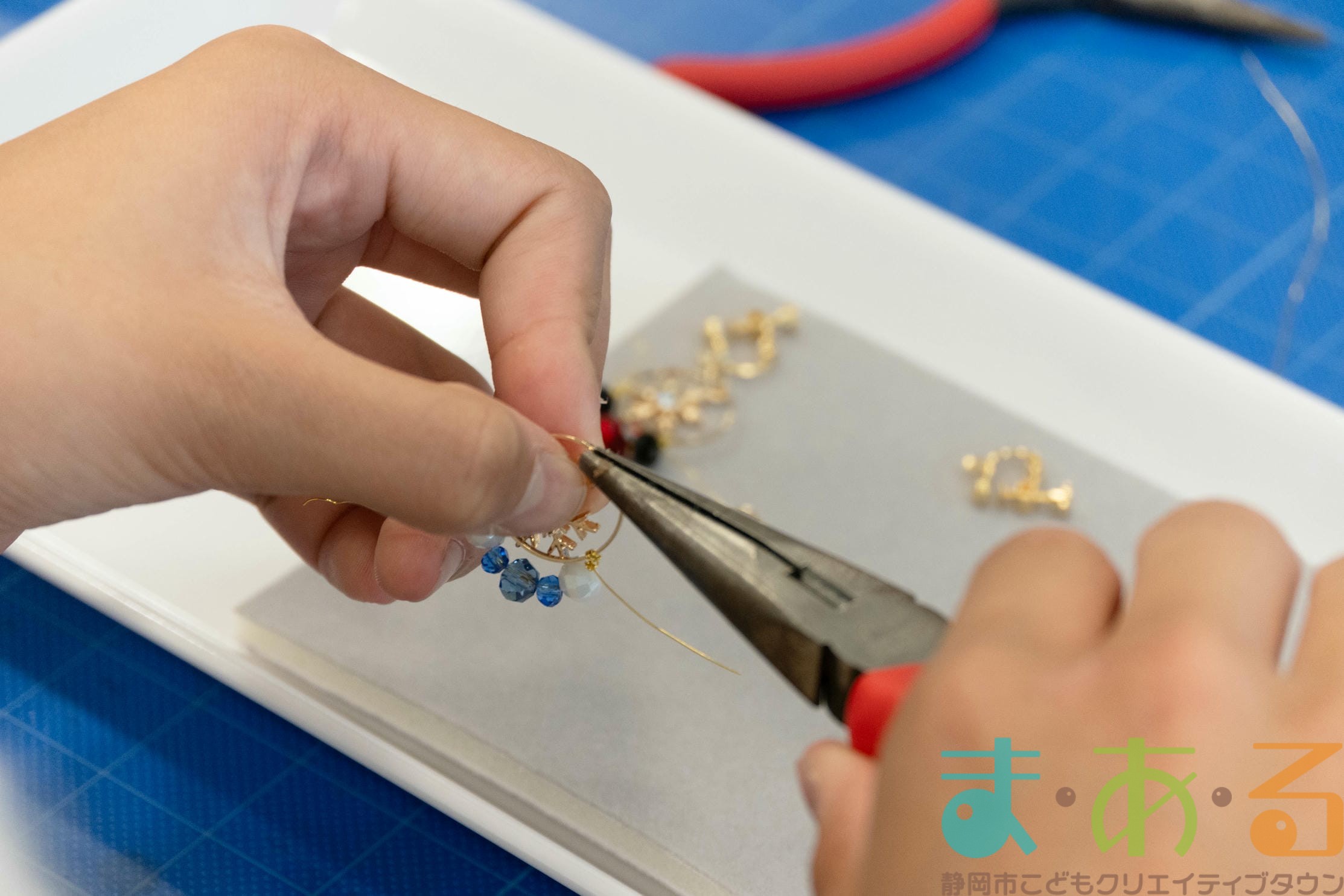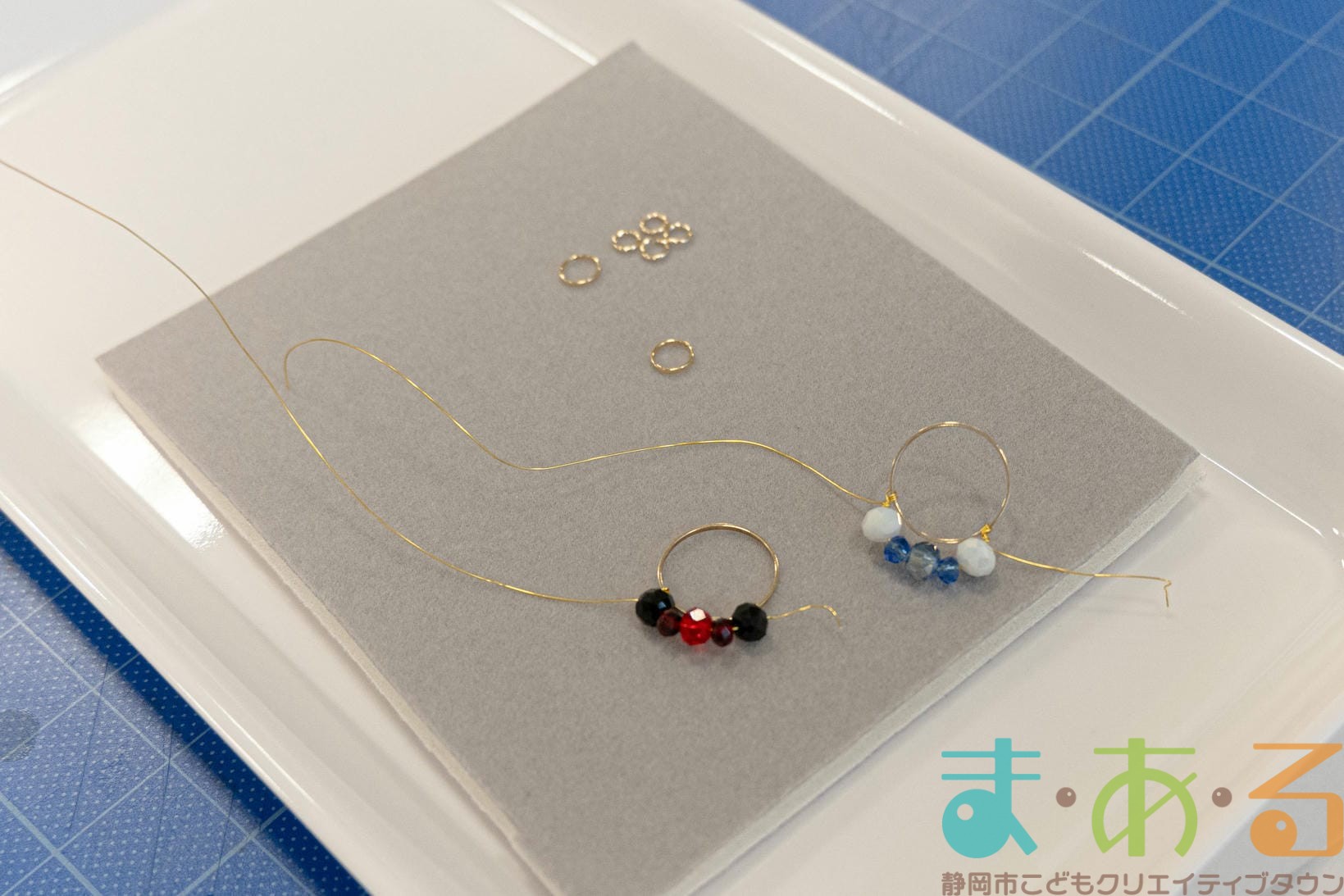 ビーズやパーツを自由に組み合わせてオリジナルのイヤリングを作ります。