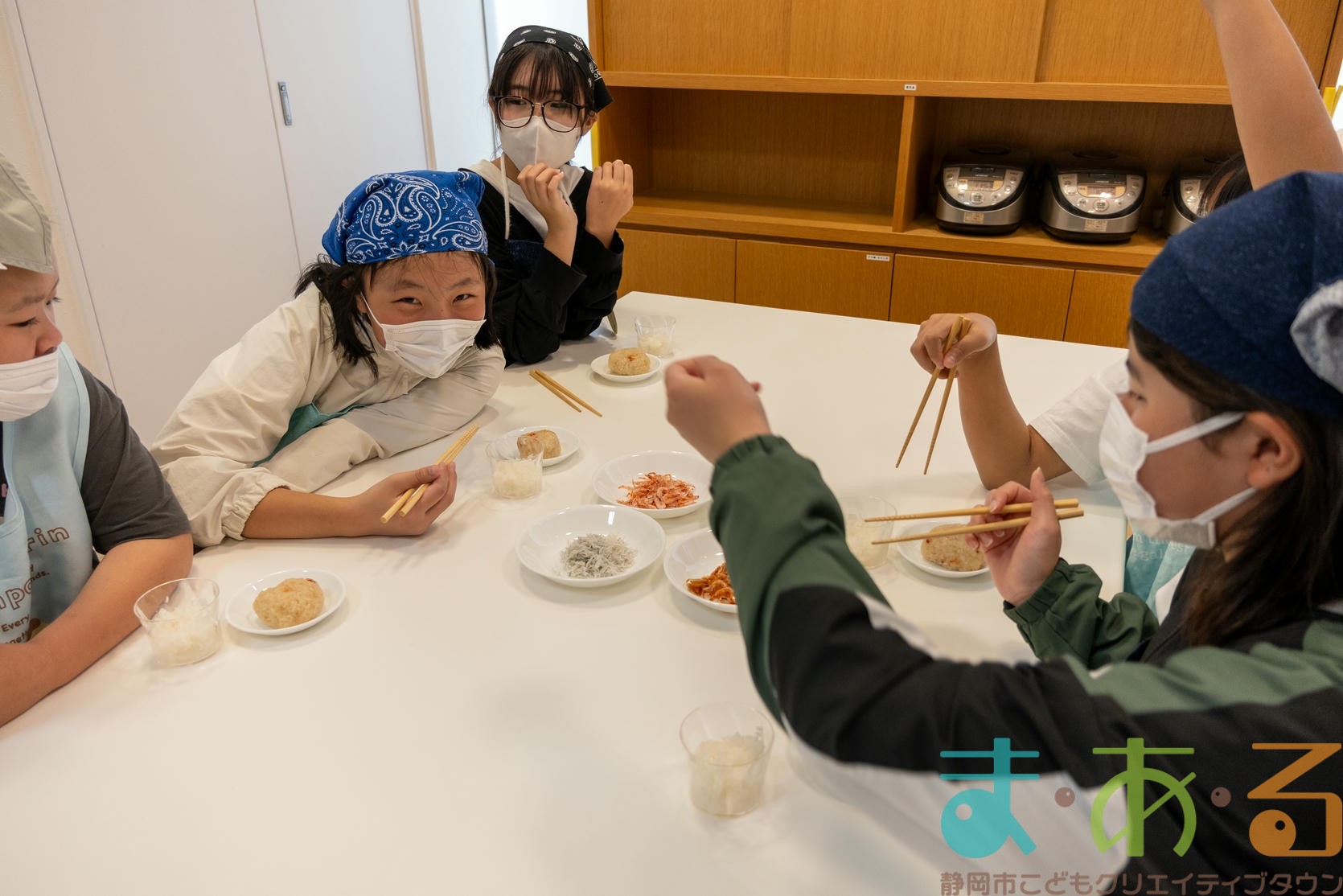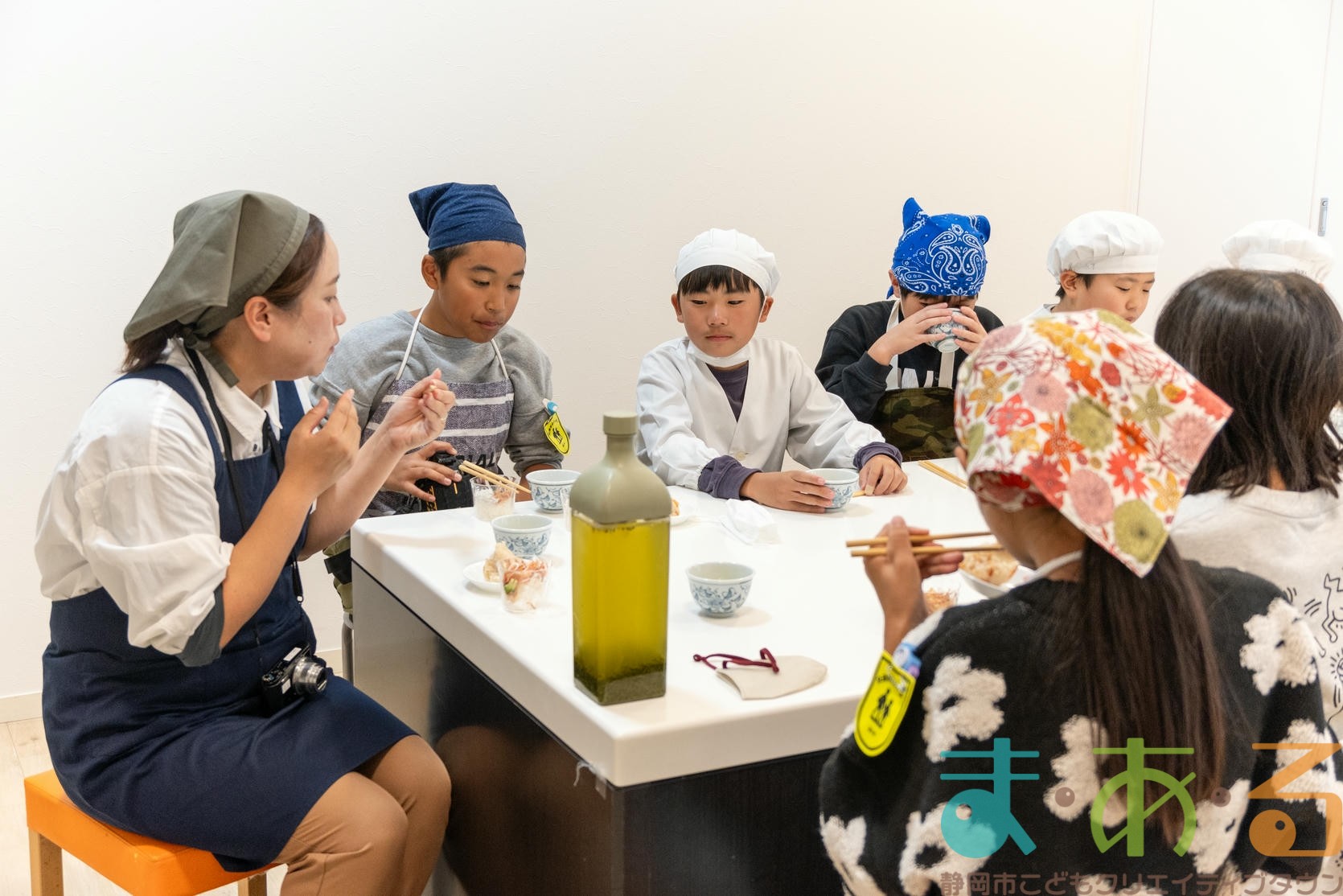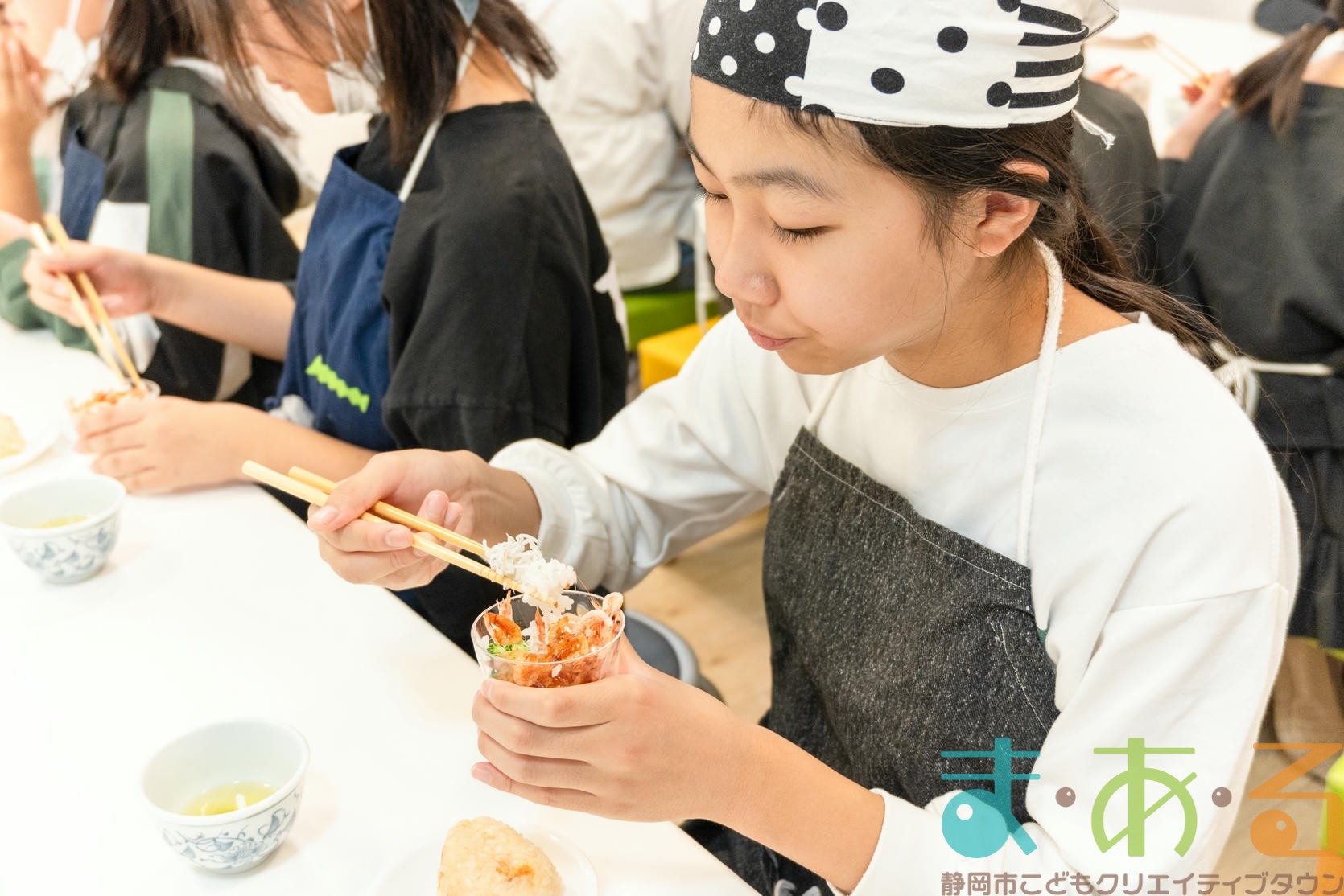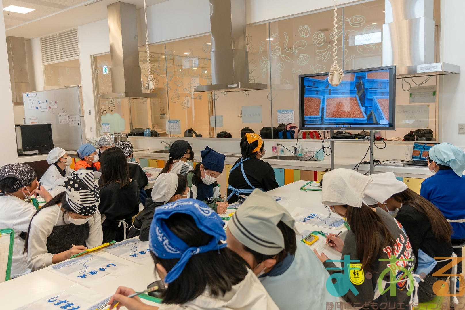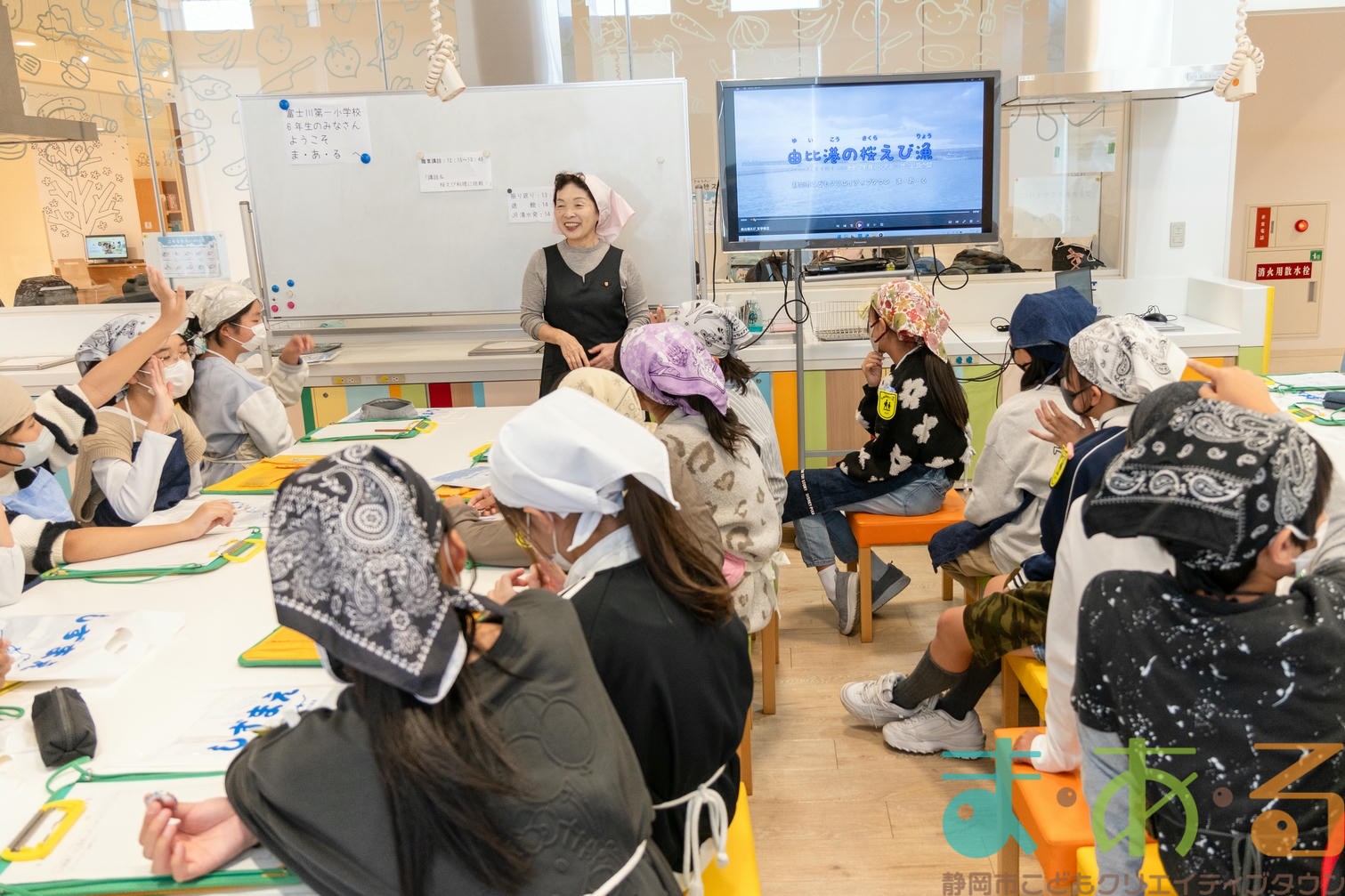 山崎先生に「桜えびは生でも茹でても干してもおいしいですよ。」と教えていただきました。生徒さんは「初めて桜えびを食べたけど、思ったより甘かった!」「おいしかった。」など、地元しずまえの味に大満足の様子でした。