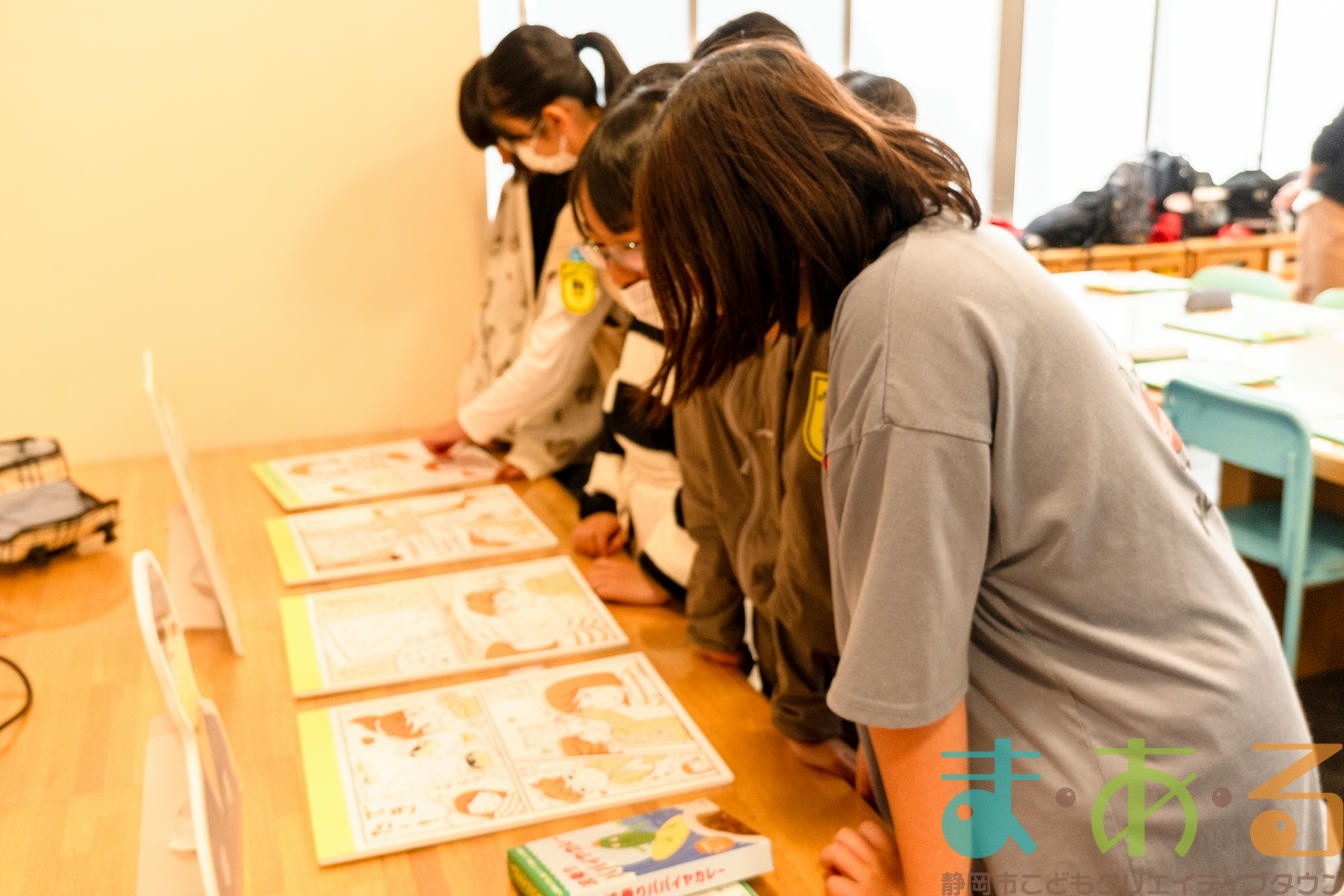 出来上がった4コマ漫画をお友達同士で見せ合う時間も設けました。どの作品も上手に描けていて面白かったです。