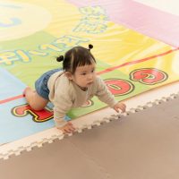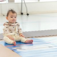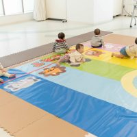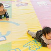 お部屋の雰囲気に慣れるため、赤ちゃんたちにはレースマットの上で自由に過ごしてもらいます。