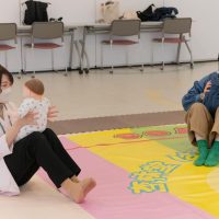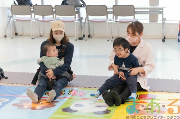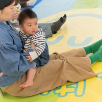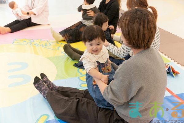 足を伸ばしたまま前後に進む骨盤エクササイズも、親子のスキンシップを楽しみながら行うことができました。