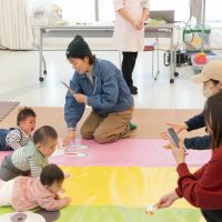 11月11日は、株式会社杏林堂薬局の池ヶ谷先生・金子先生・山田先生にご協力いただき、ちびっこプログラム『元気いっぱい!ニコニコはいはいレース』を開催しました。