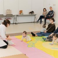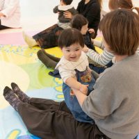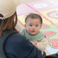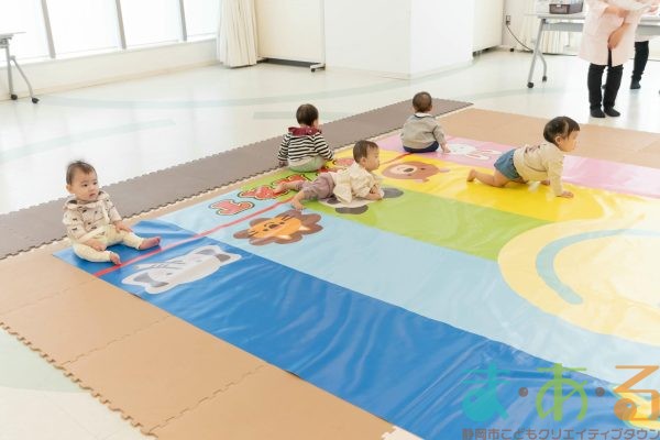 後ろを向いて座ってみる子、遠くをじっと見つめる子、泣いている子など赤ちゃんたちの反応は様々。