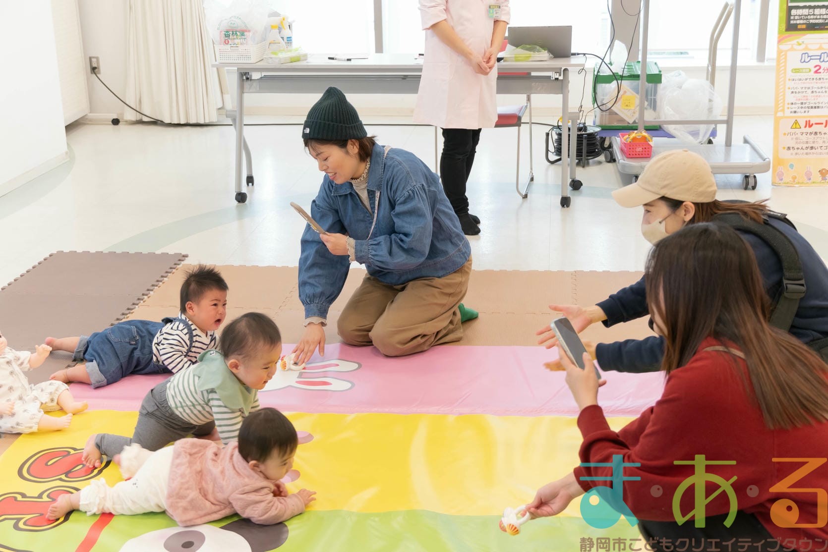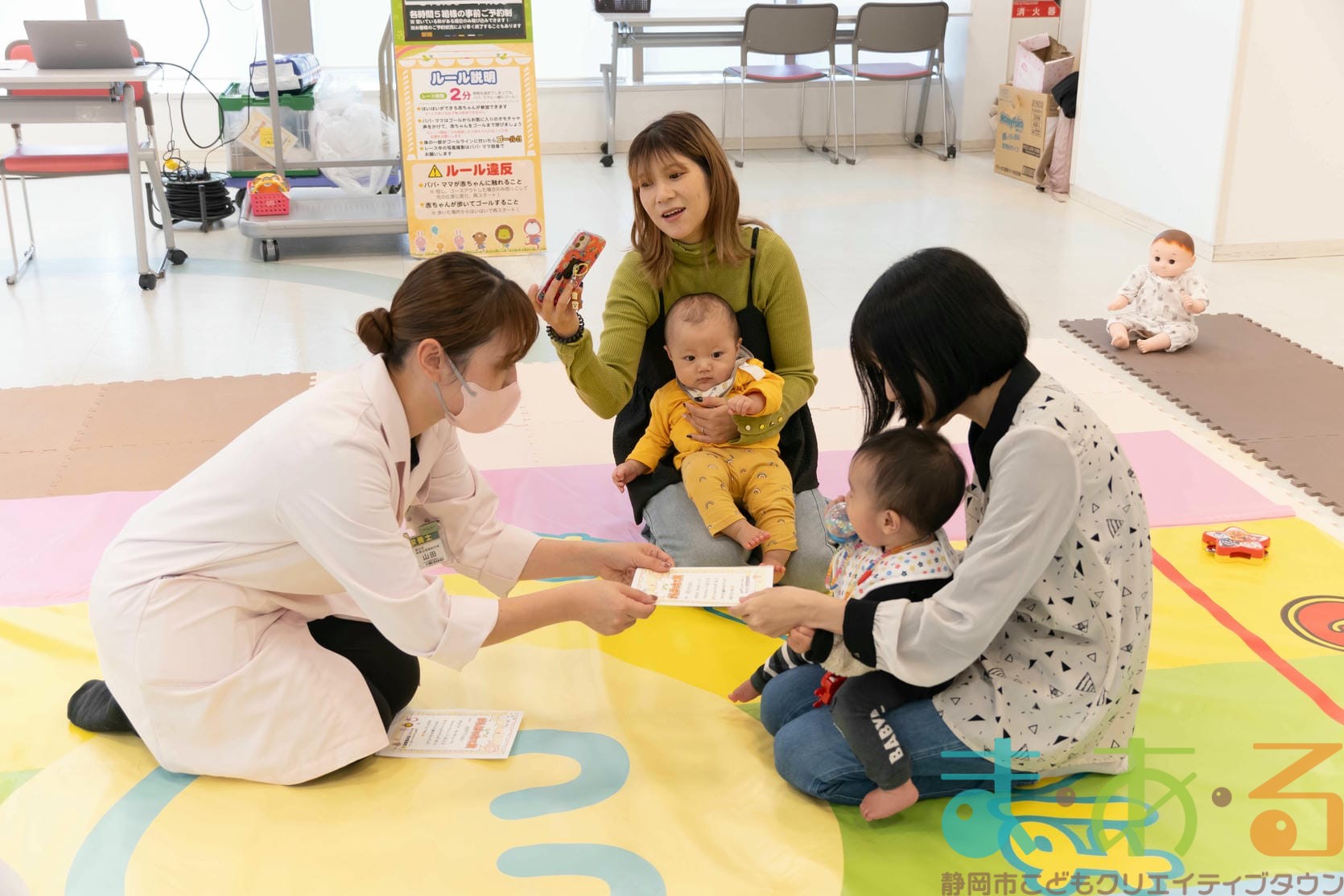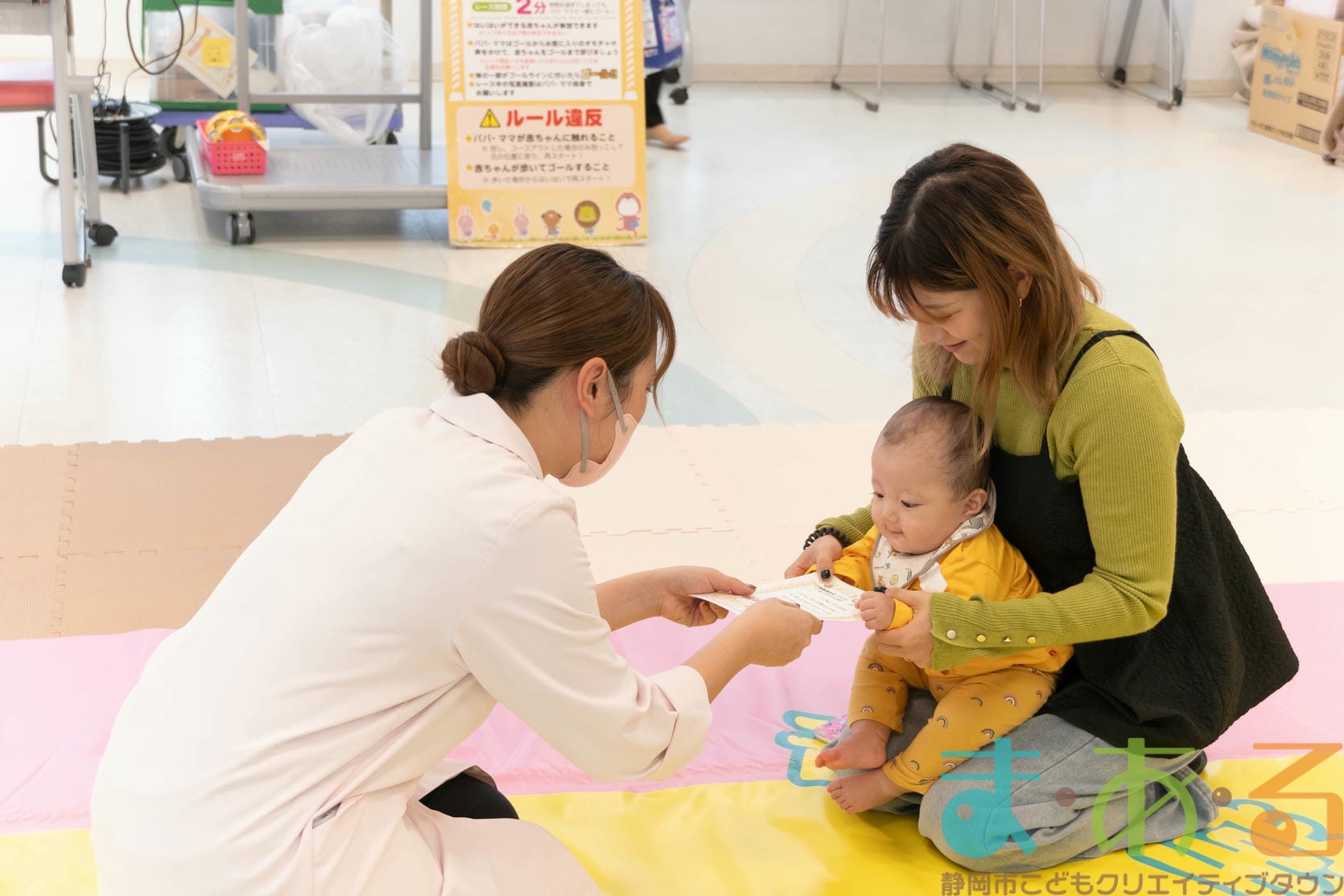 11月11日は、株式会社杏林堂薬局の池ヶ谷先生・金子先生・山田先生にご協力いただき、ちびっこプログラム『元気いっぱい!ニコニコはいはいレース』を開催しました。