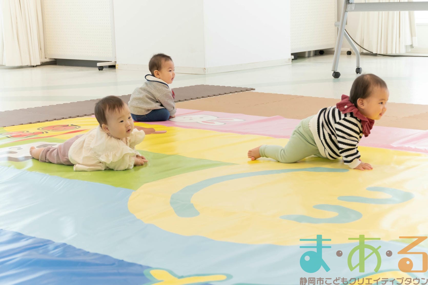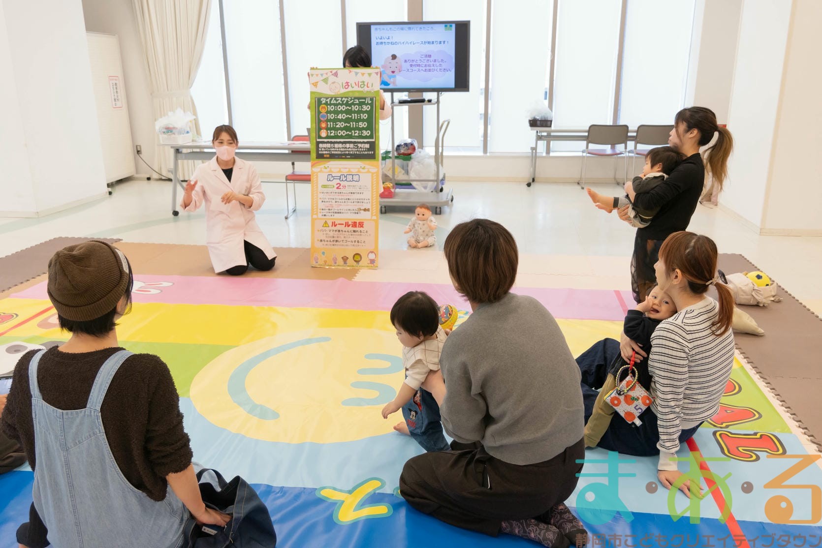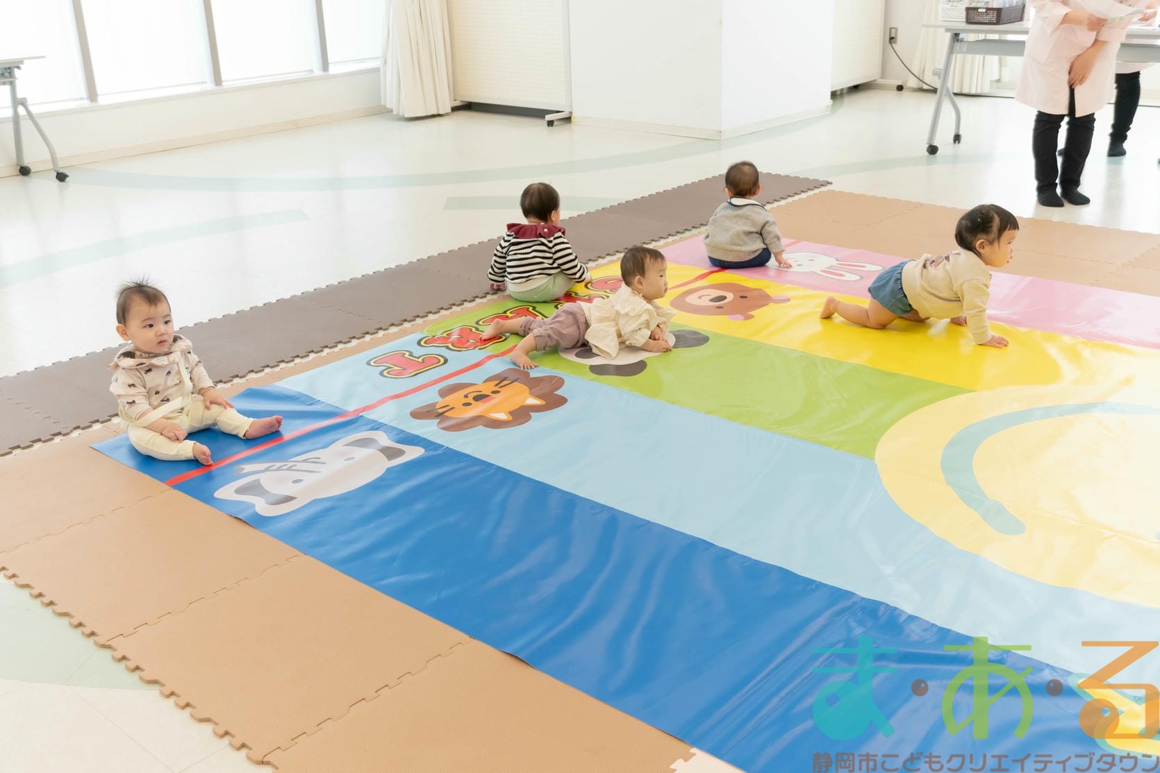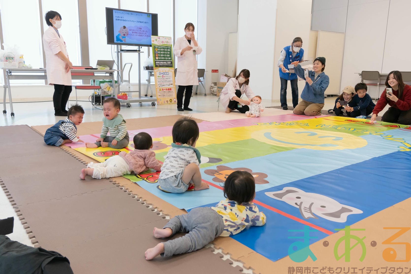 11月11日は、株式会社杏林堂薬局の池ヶ谷先生・金子先生・山田先生にご協力いただき、ちびっこプログラム『元気いっぱい!ニコニコはいはいレース』を開催しました。