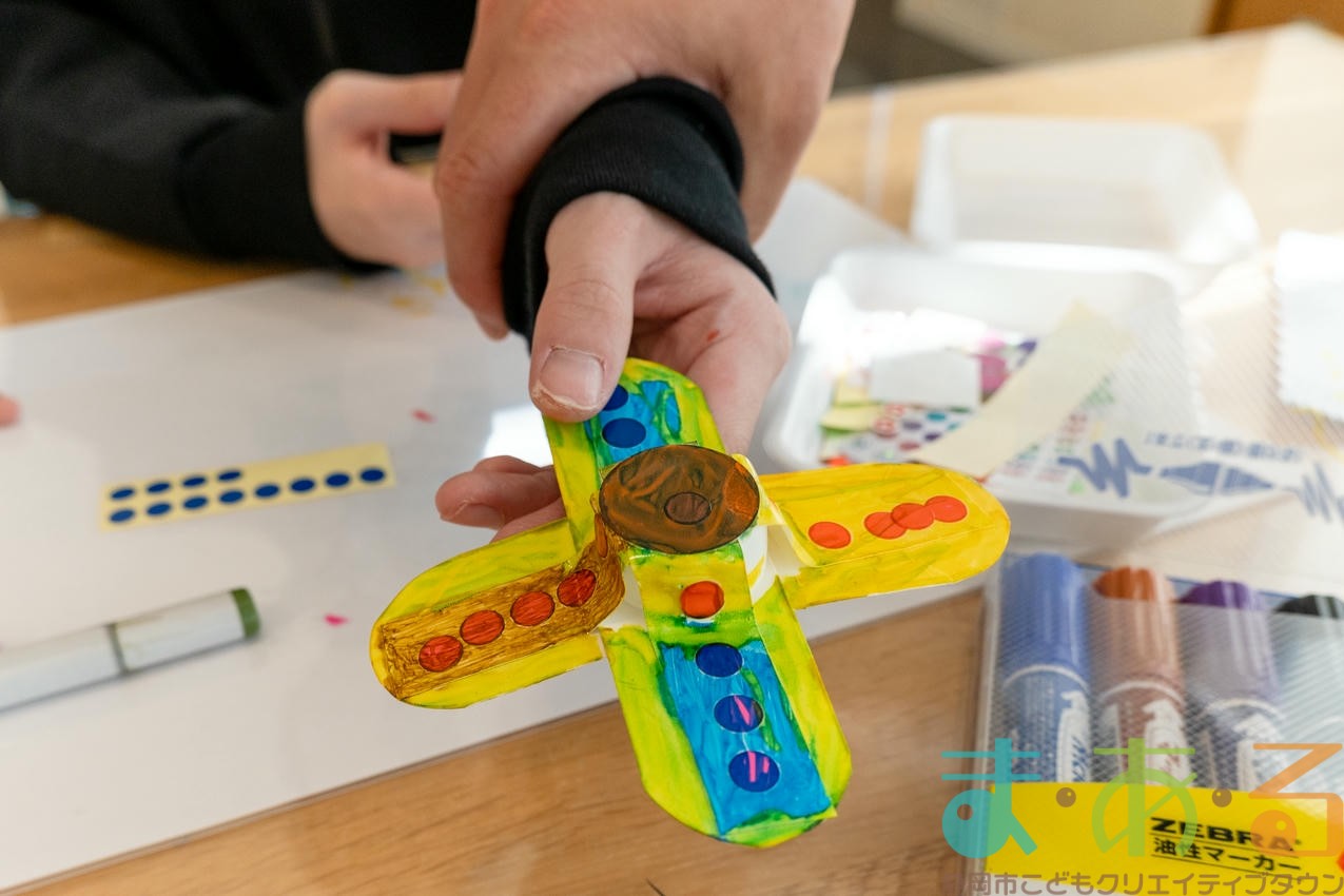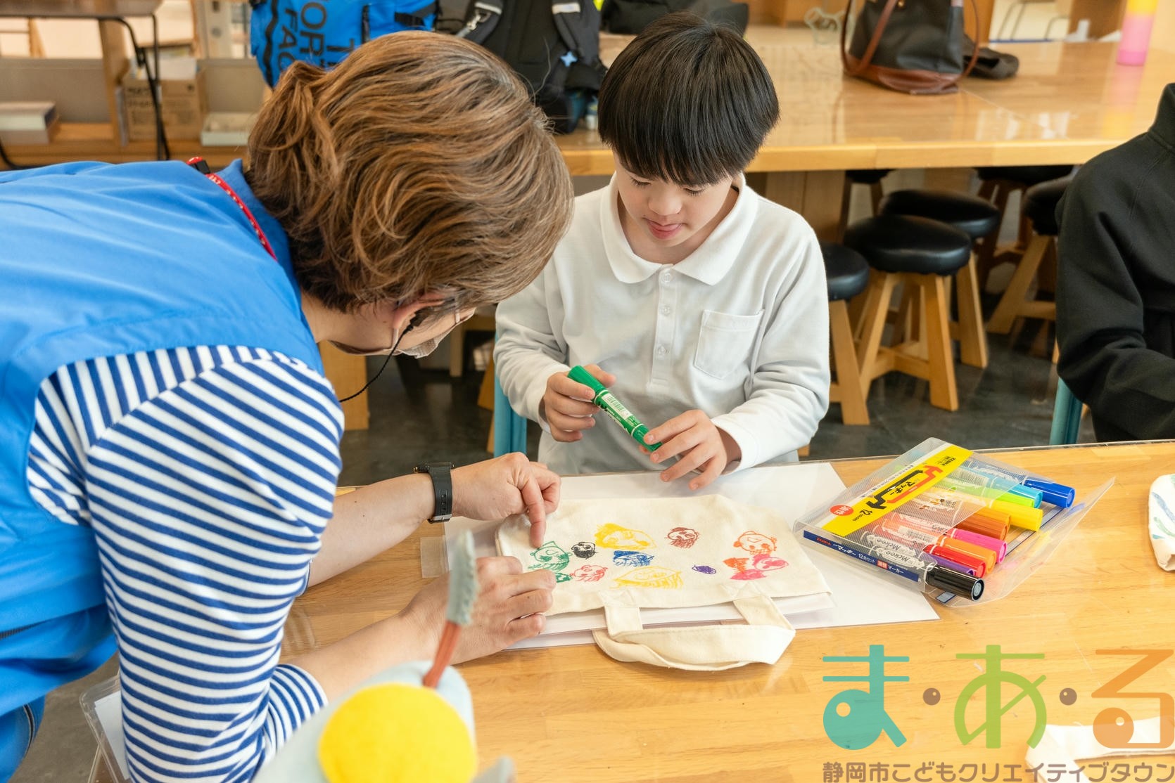 最初に、スタッフあやちゃんによるものづくり体験をしました。作ったのは「プラバンネームキーホルダー」と「油性ペン染めバッグ」です。