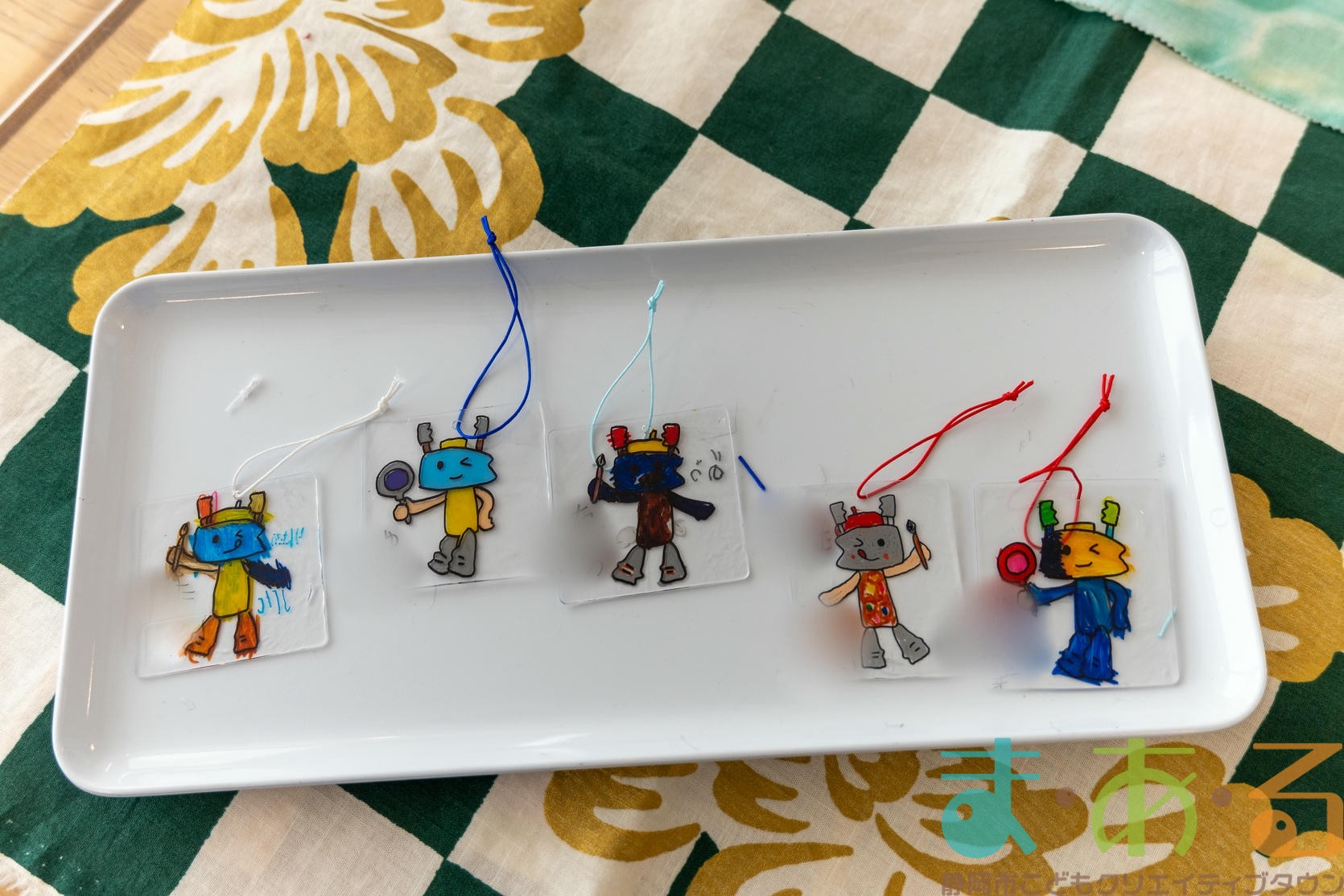 プラバンネームキーホルダーは、「まあるん」を思い思いの色で塗りました。