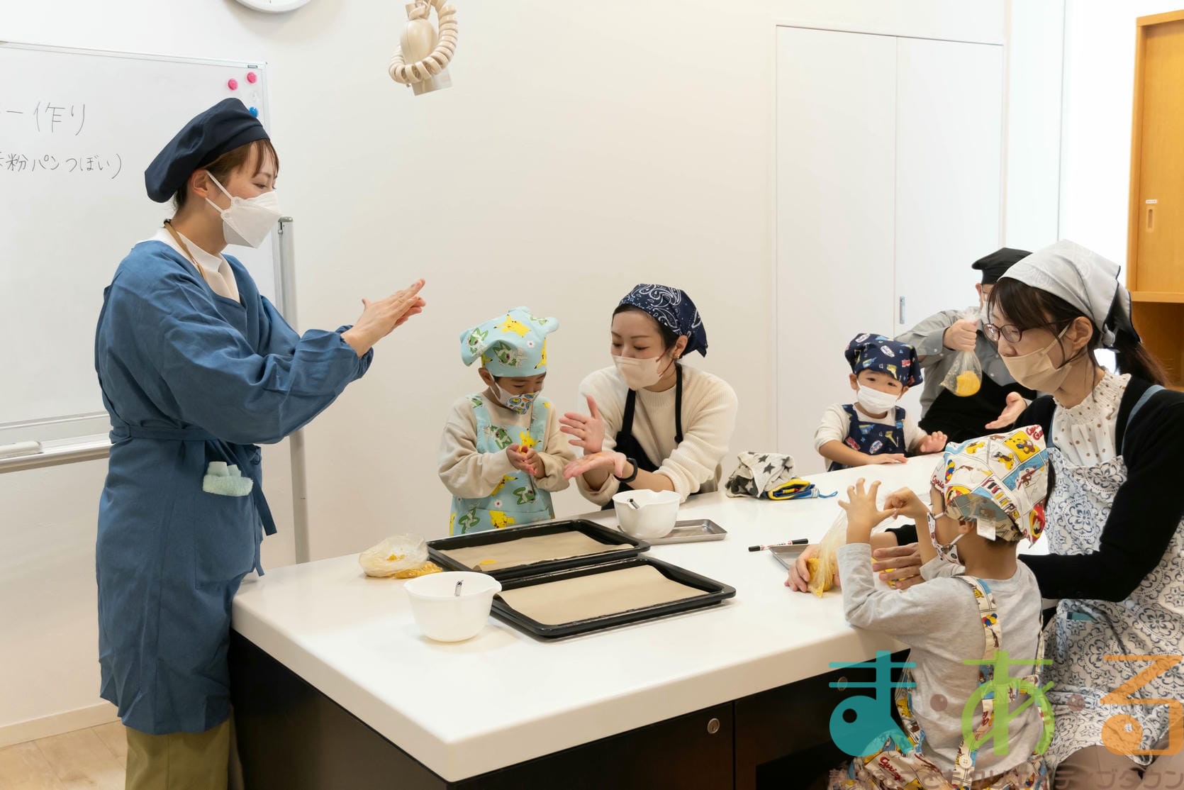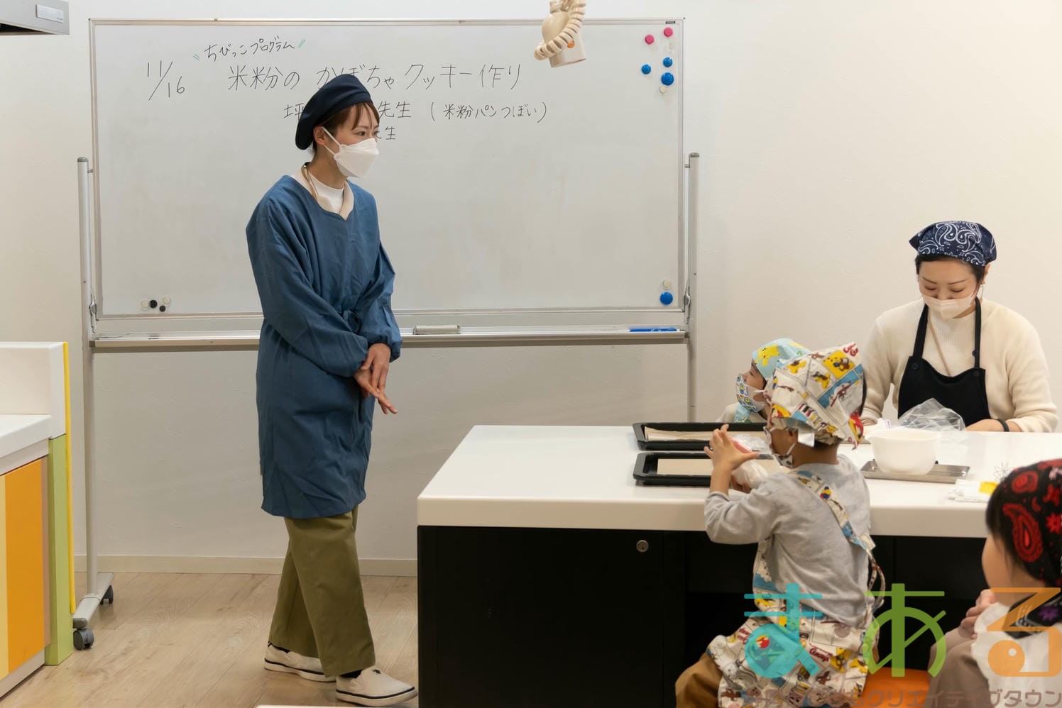 11月16日は、米粉パンつぼいの坪井佳奈先生と坪井裕美子先生にご協力いただき、未就学児親子講座「米粉のかぼちゃクッキーを作ろう!」を開催しました。