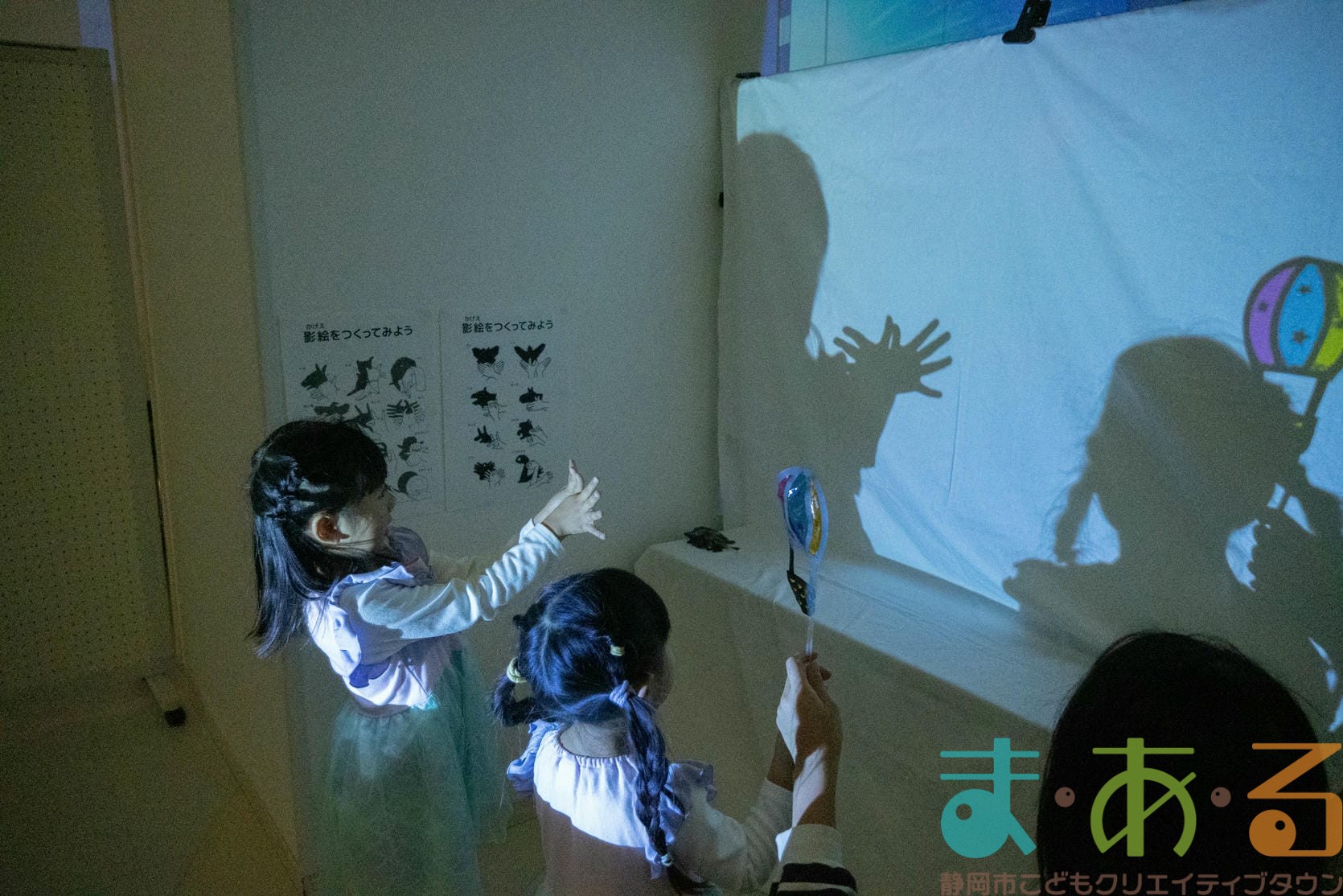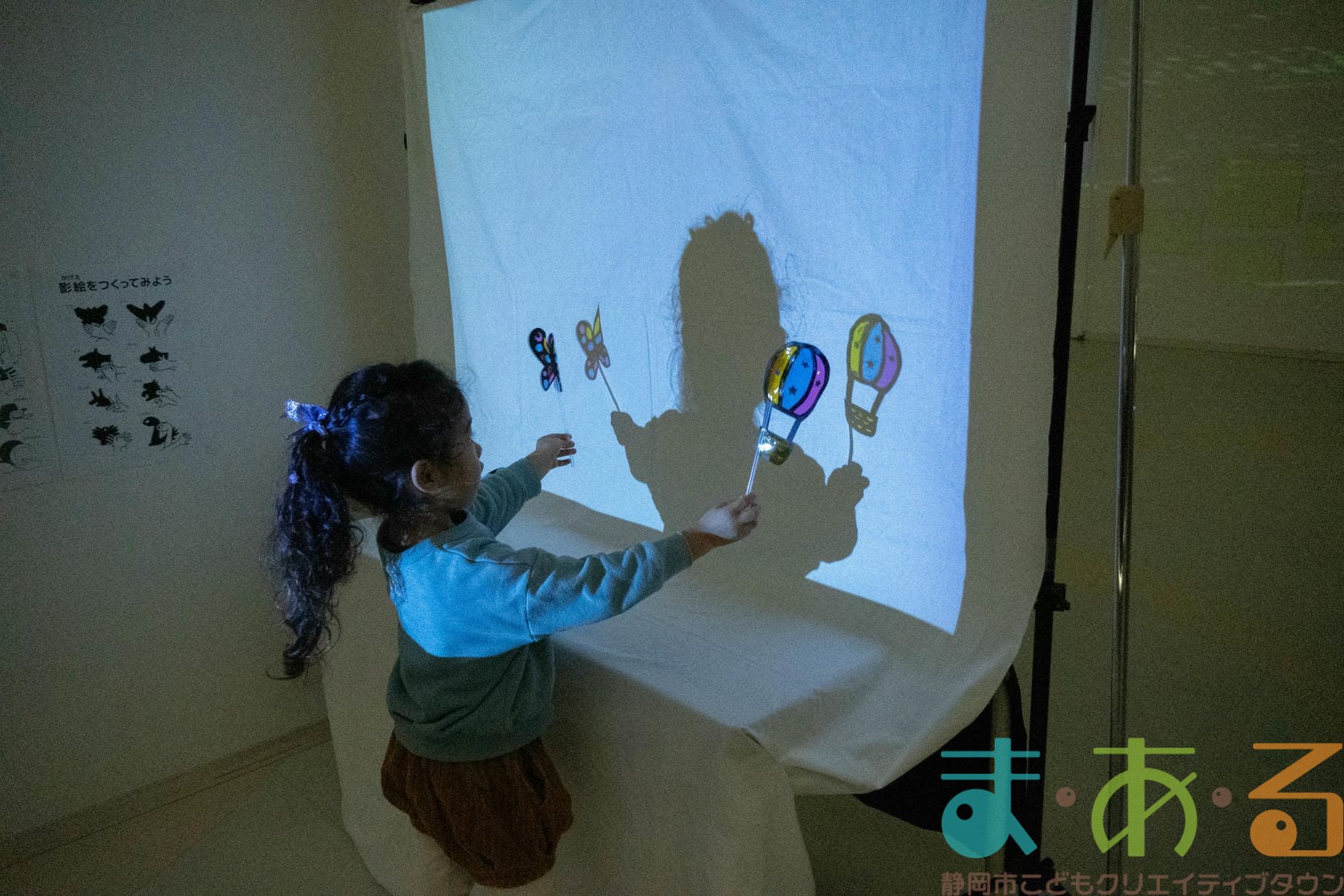 影絵コーナーではお話を作りながら遊ぶことができます。