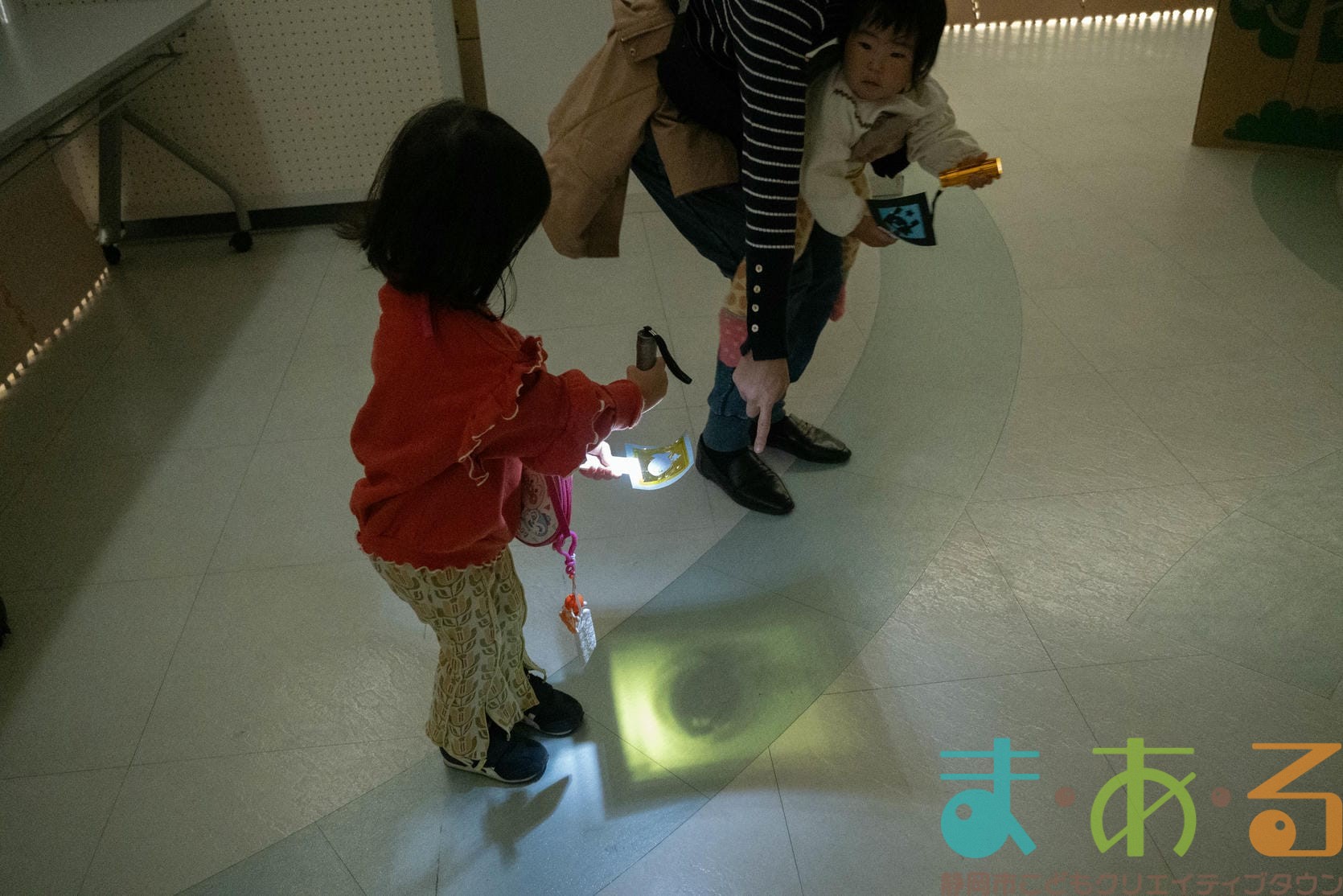 大人たちが上からライトを当てると光が差し込みます。