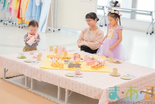 おいしそうなお菓子が並ぶお茶会コーナーはいつも大人気です。