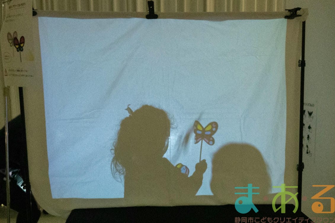 自分の手も使って影絵遊びに挑戦!
