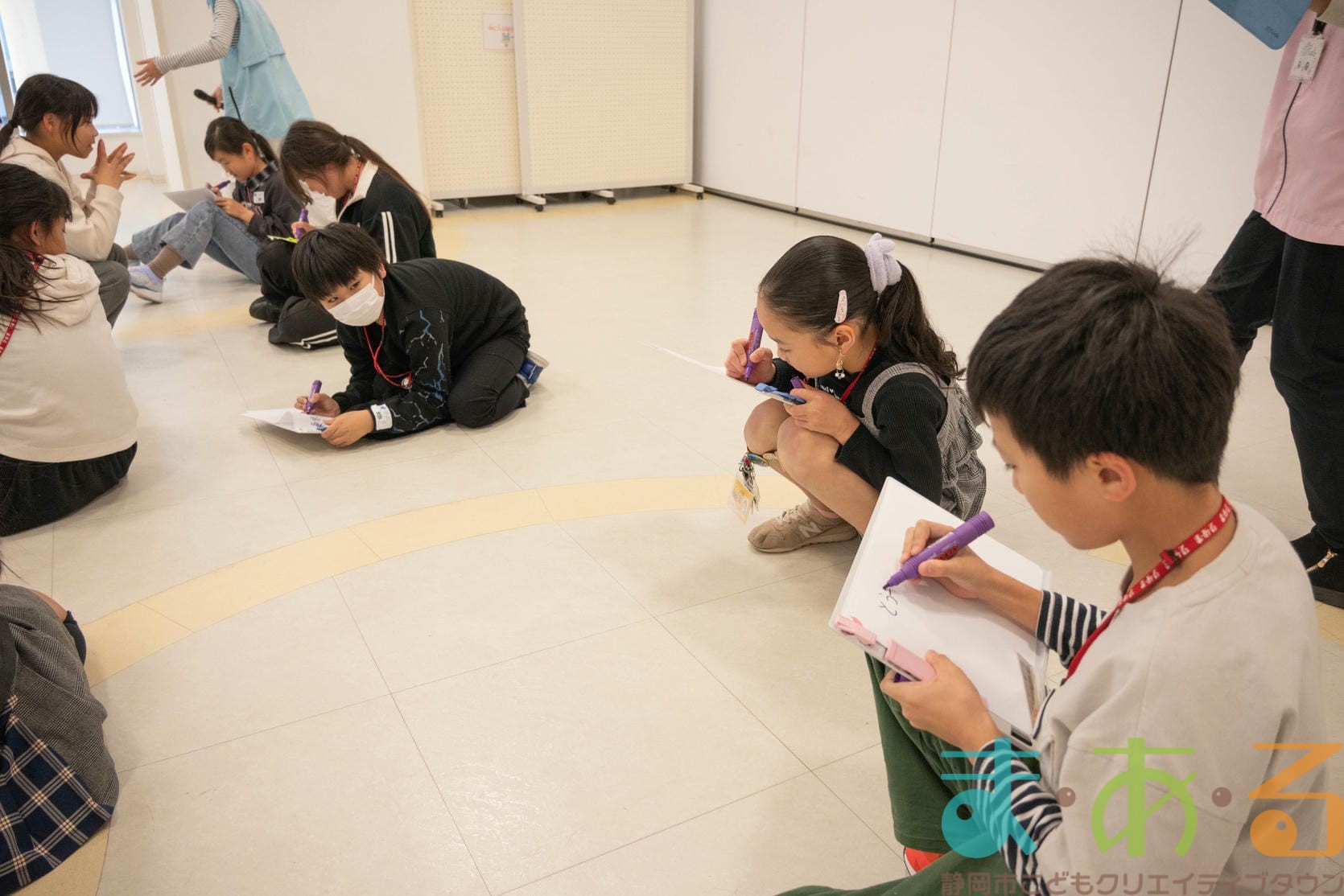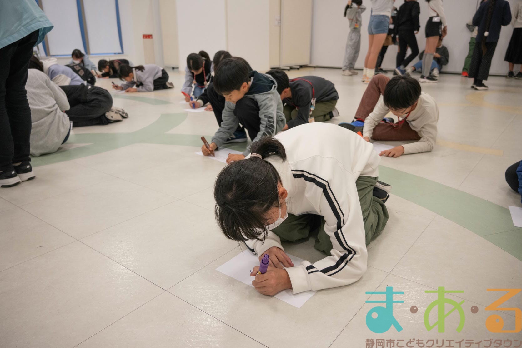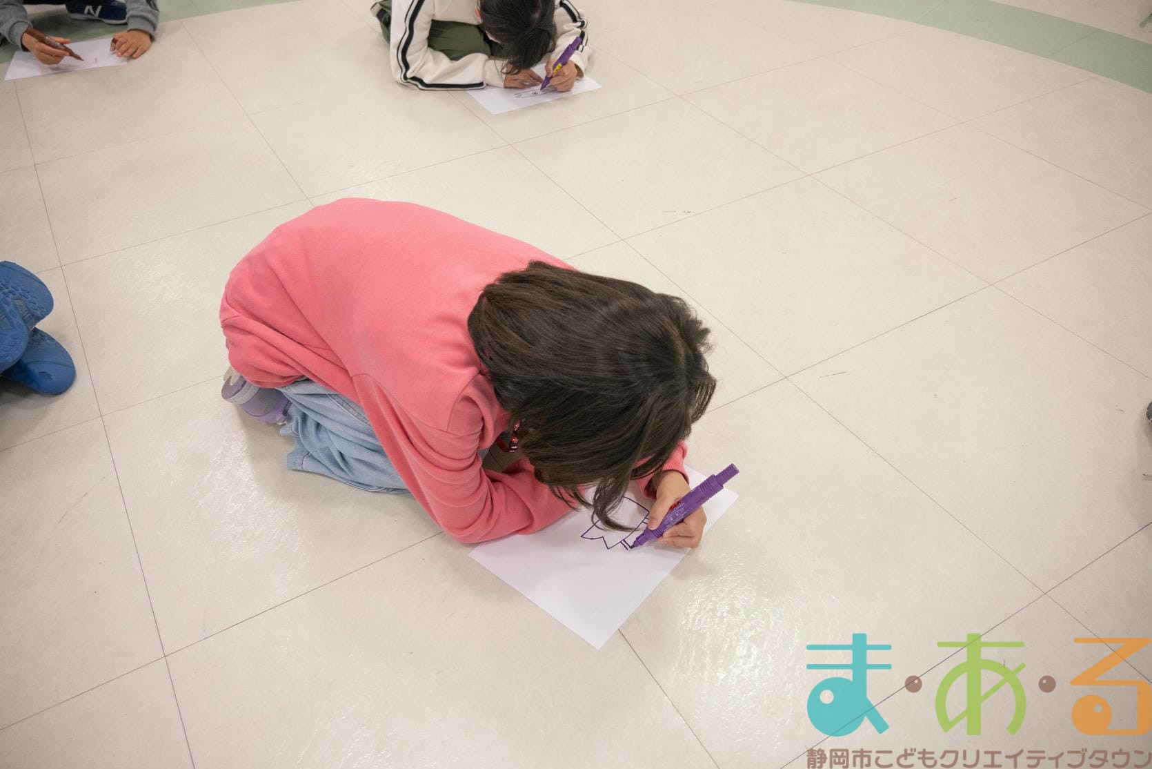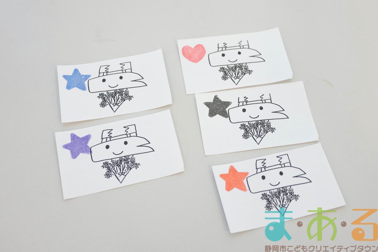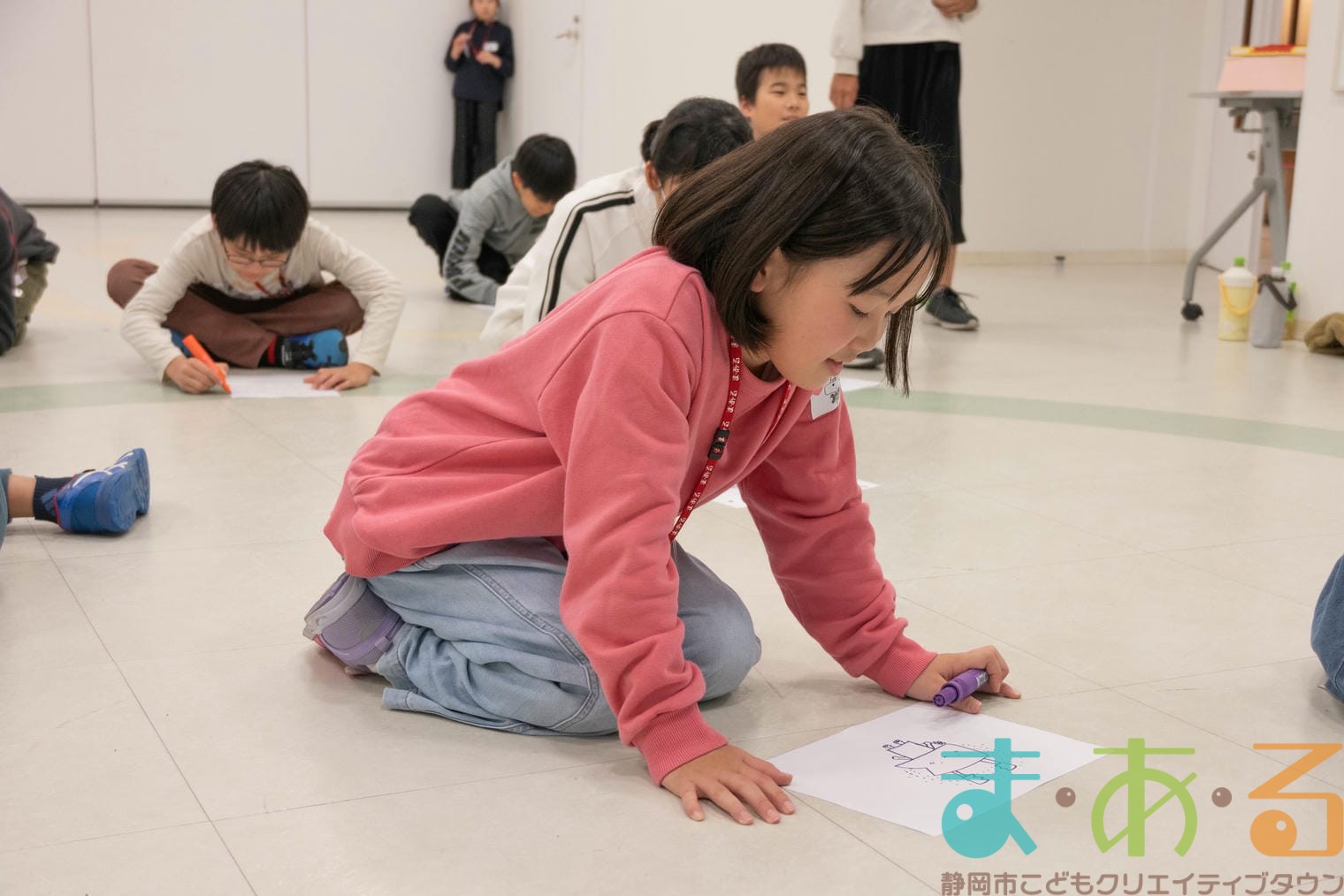 まあるんを描きたい人は紙とペンをもらい、制限時間4分の間に「まあるん」のイラストを描きます。まあるんがいればどんなデザインでもOK!