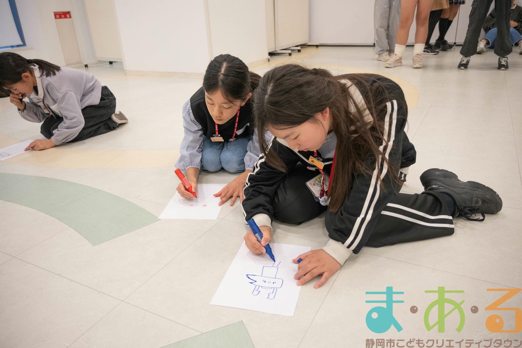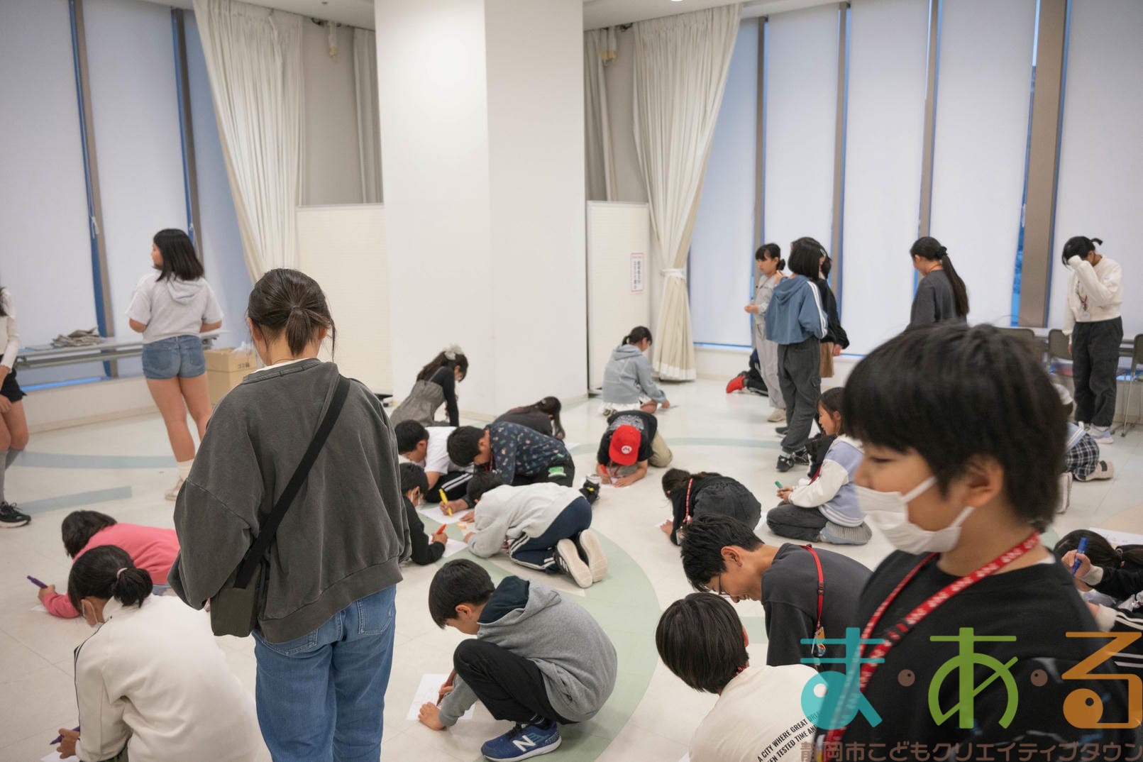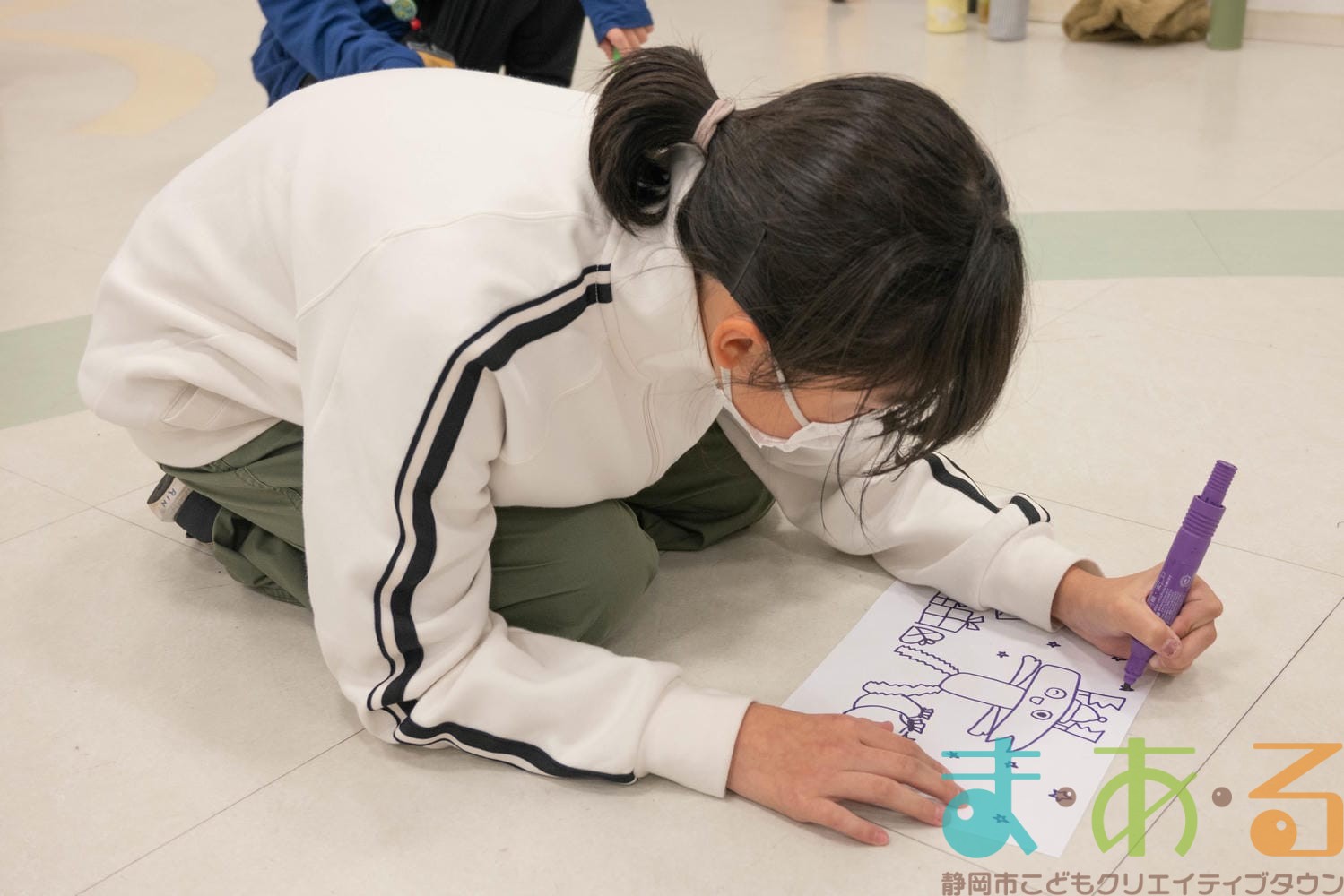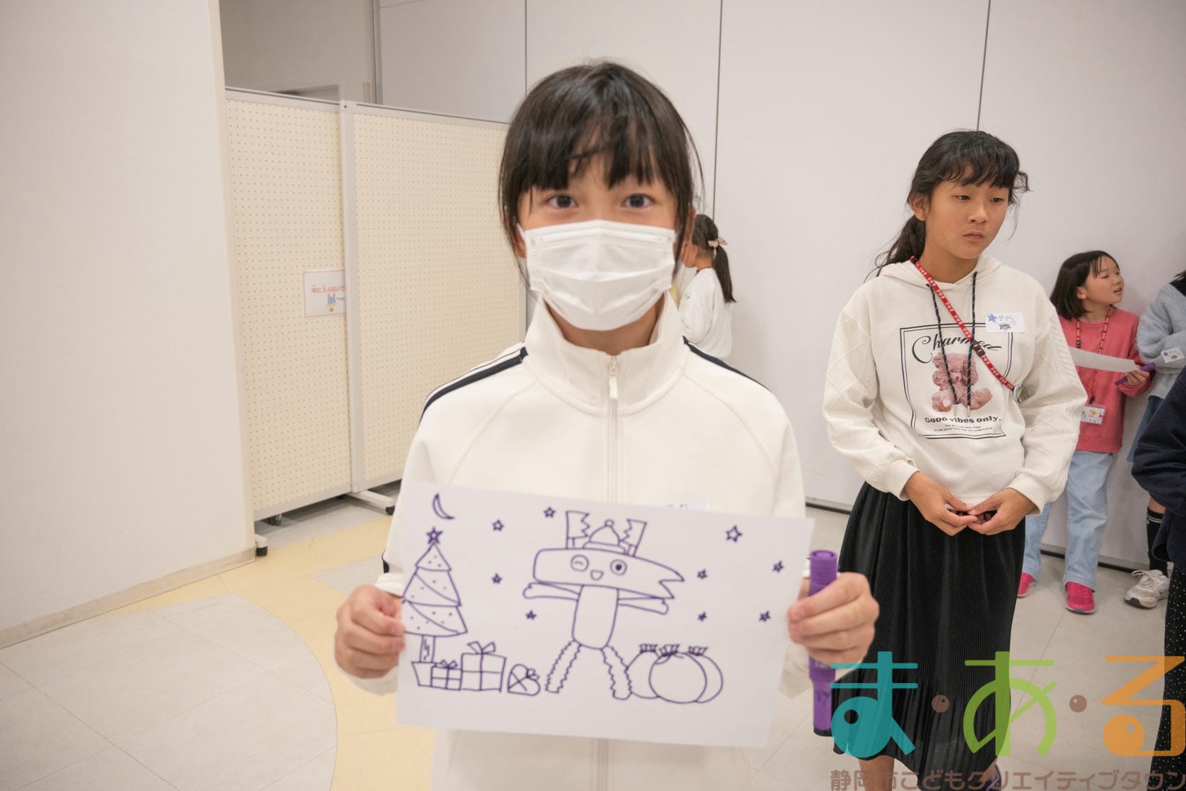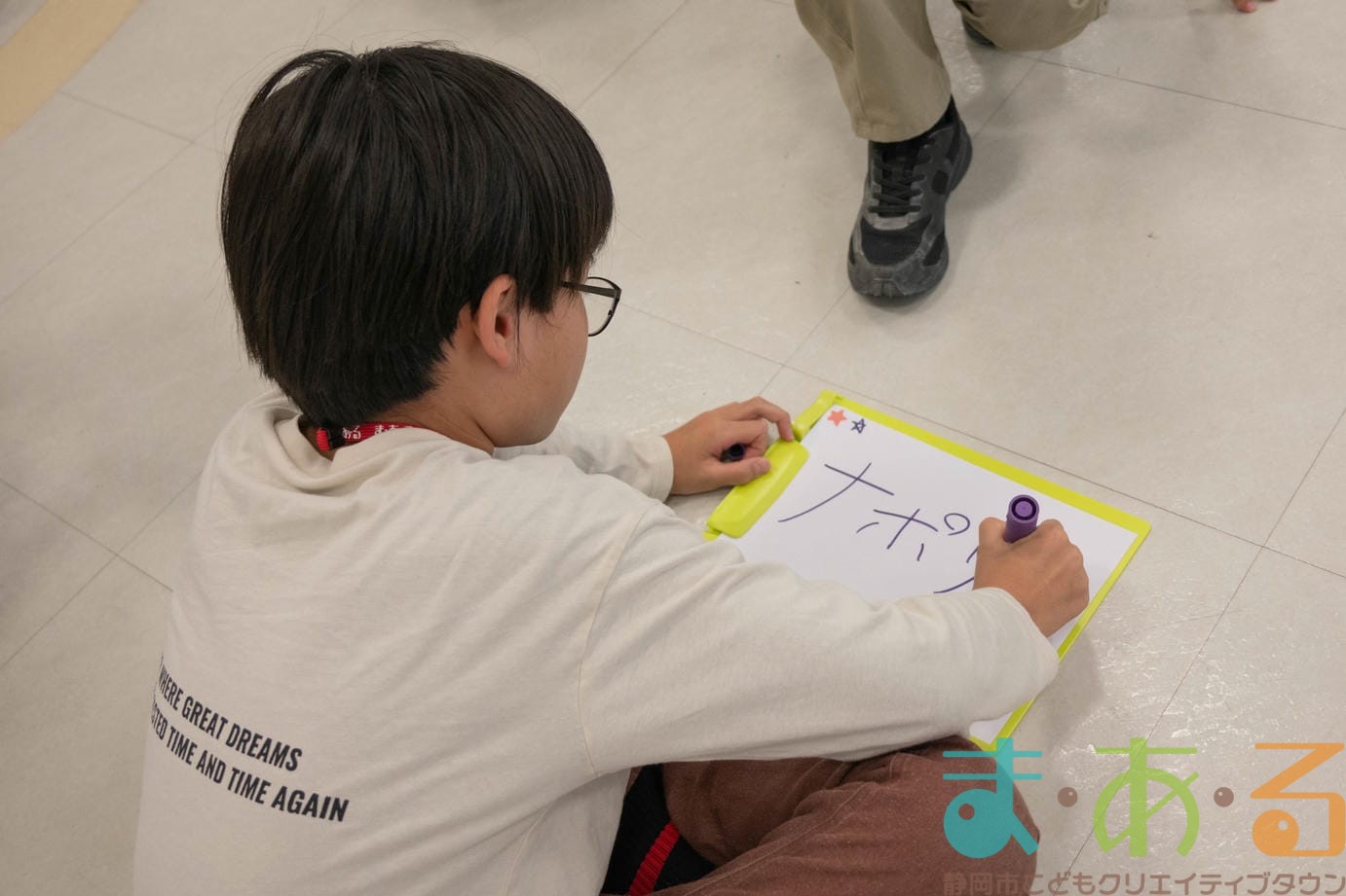 まあるんを描きたい人は紙とペンをもらい、制限時間4分の間に「まあるん」のイラストを描きます。まあるんがいればどんなデザインでもOK!