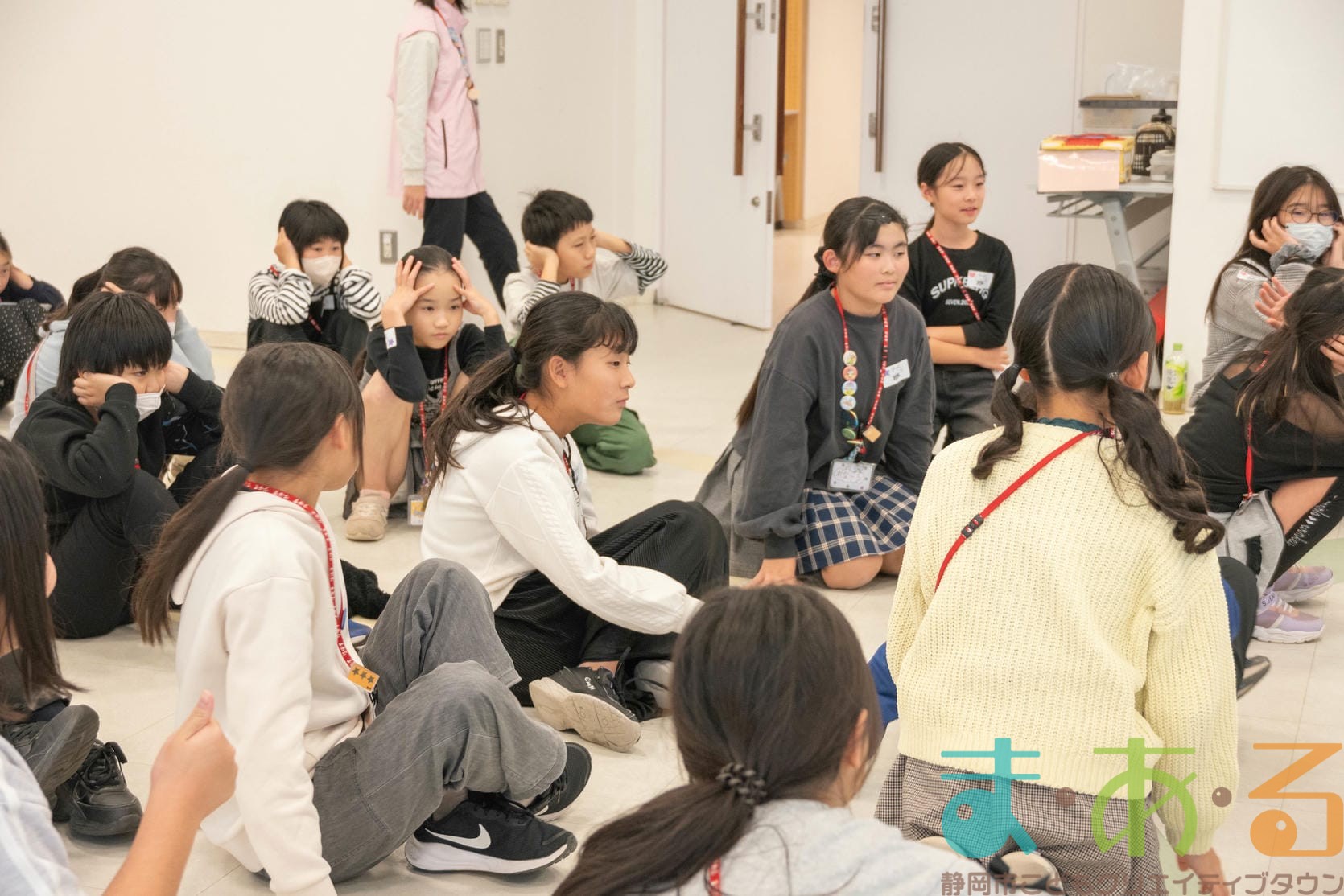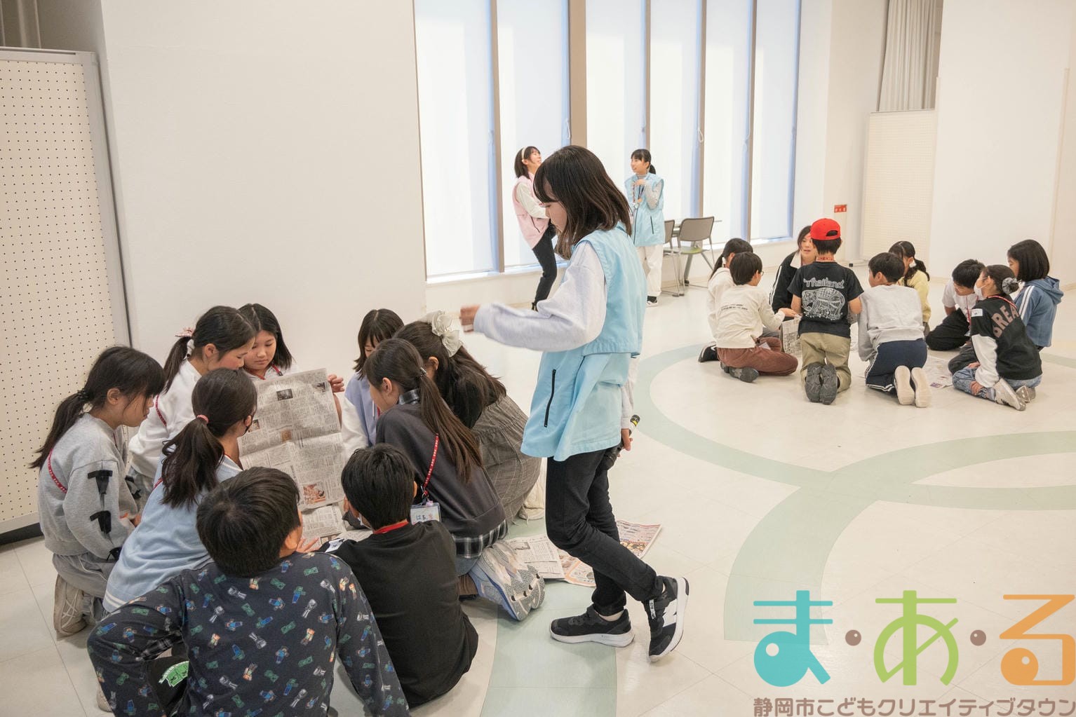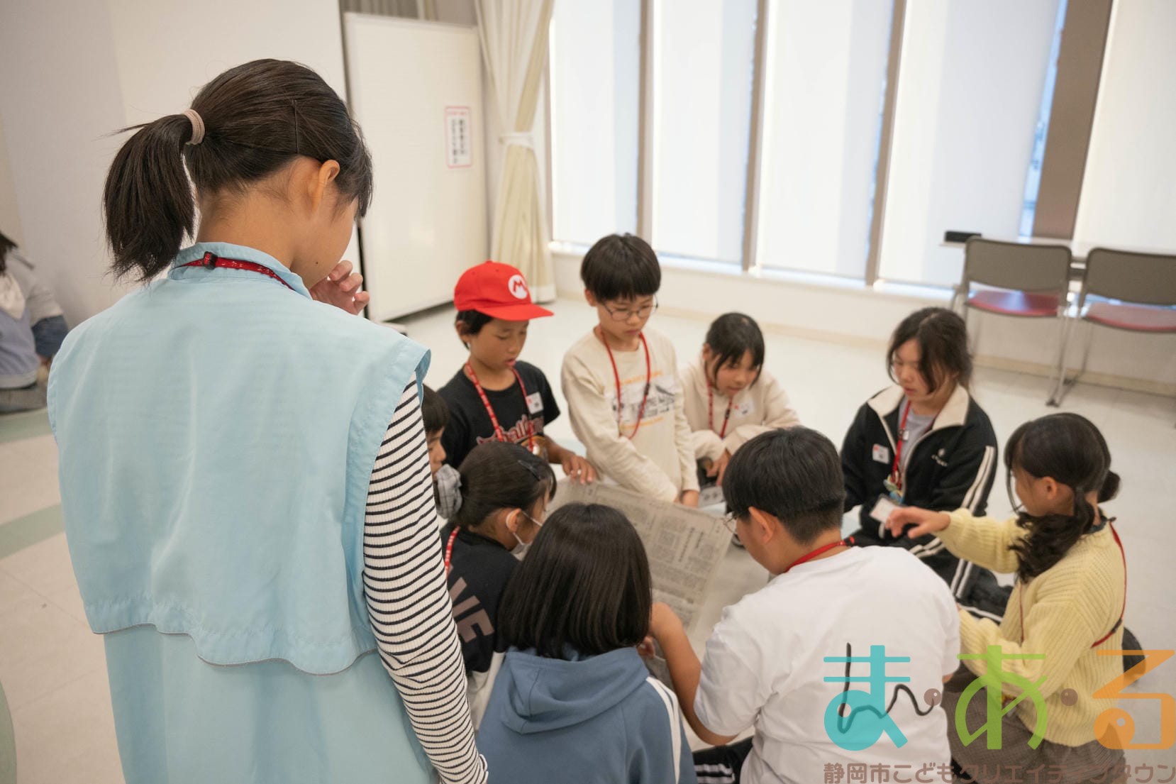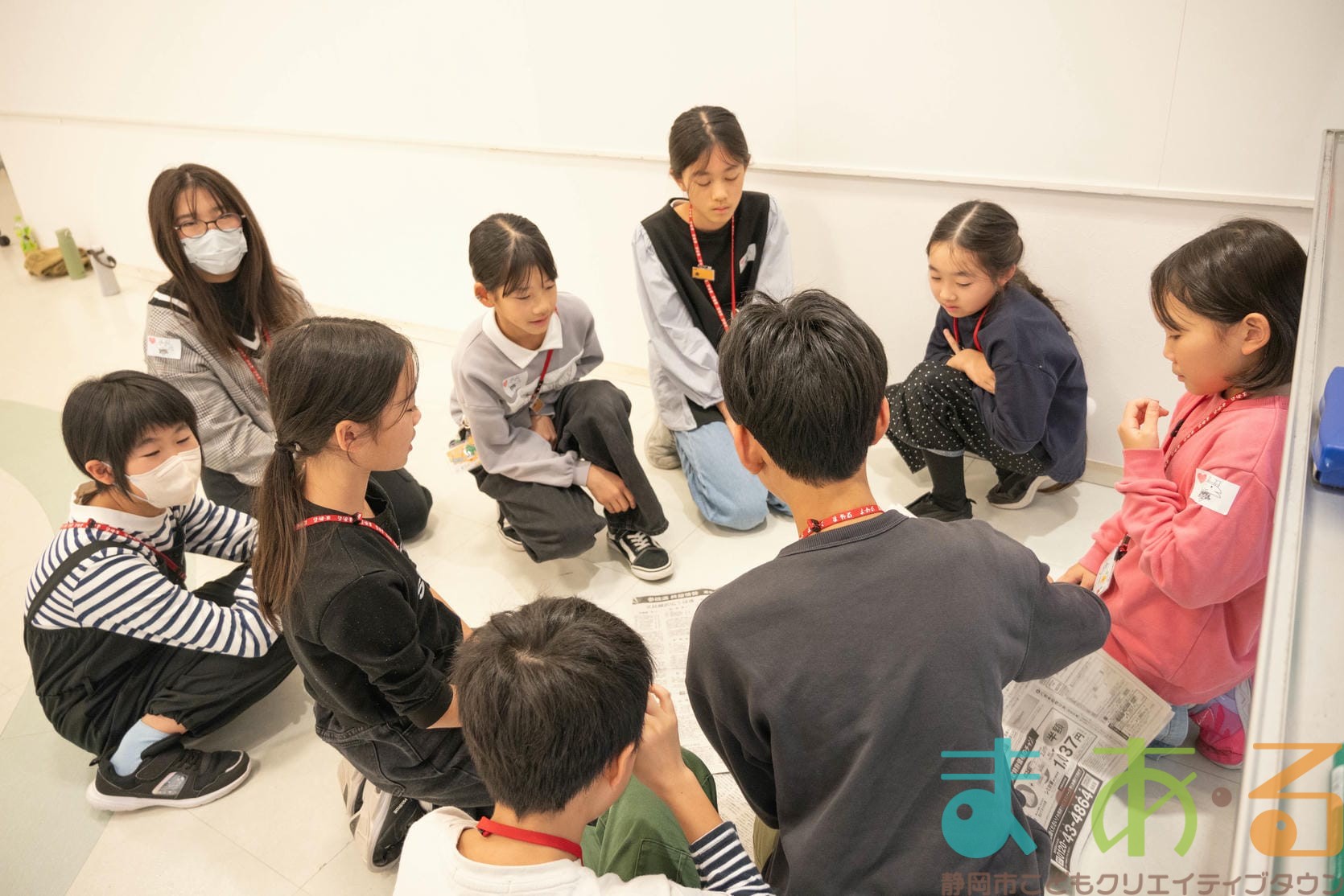今回のお楽しみ会は「伝言ゲーム」「新聞紙タワー」「まあるんてんらんかい」の3本立てです。チームごとポイントを競い、最後に結果発表が待っています。