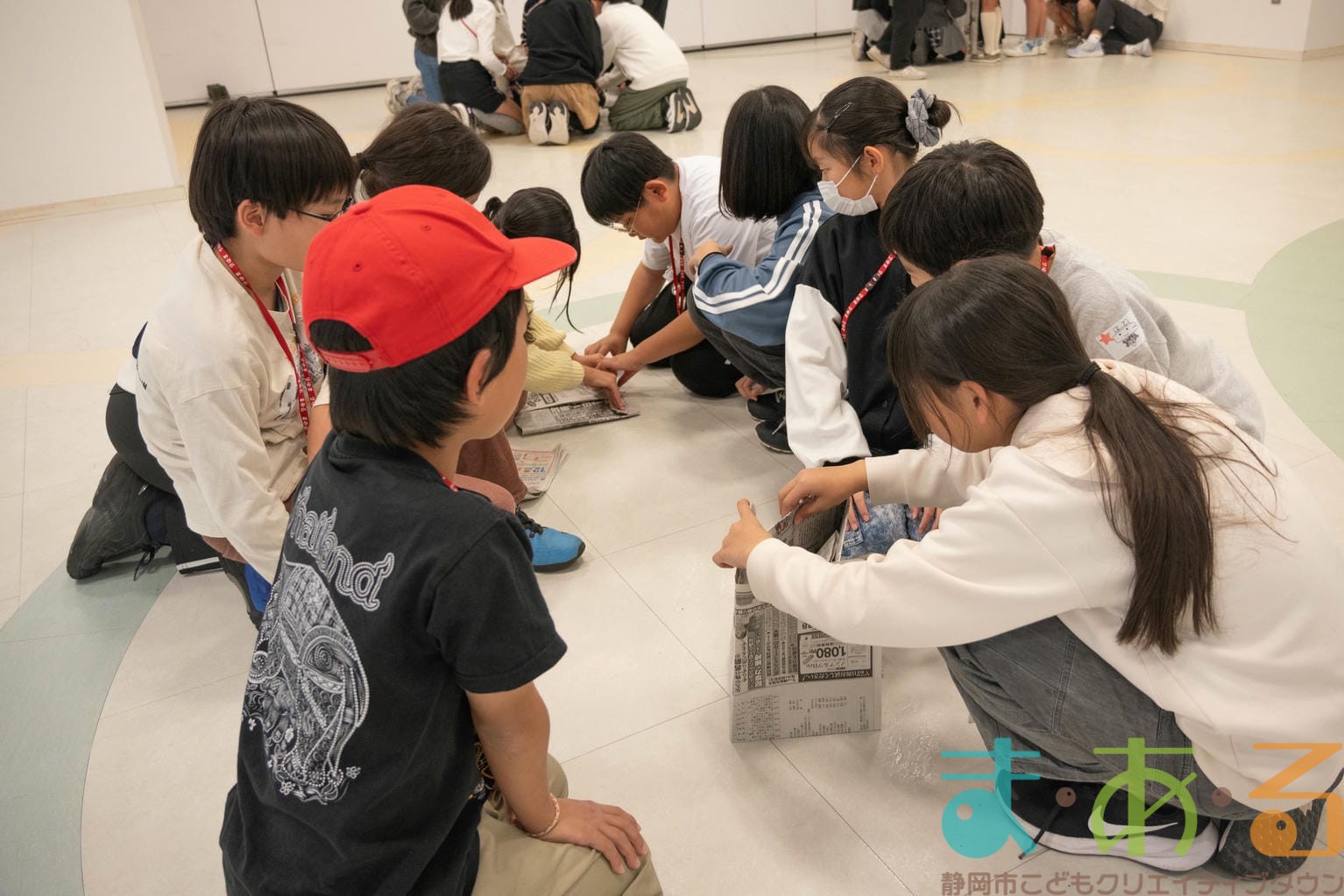 「丸めてみよう!」「折って高さを出していく?」など、積極的な会話が飛び交います。
