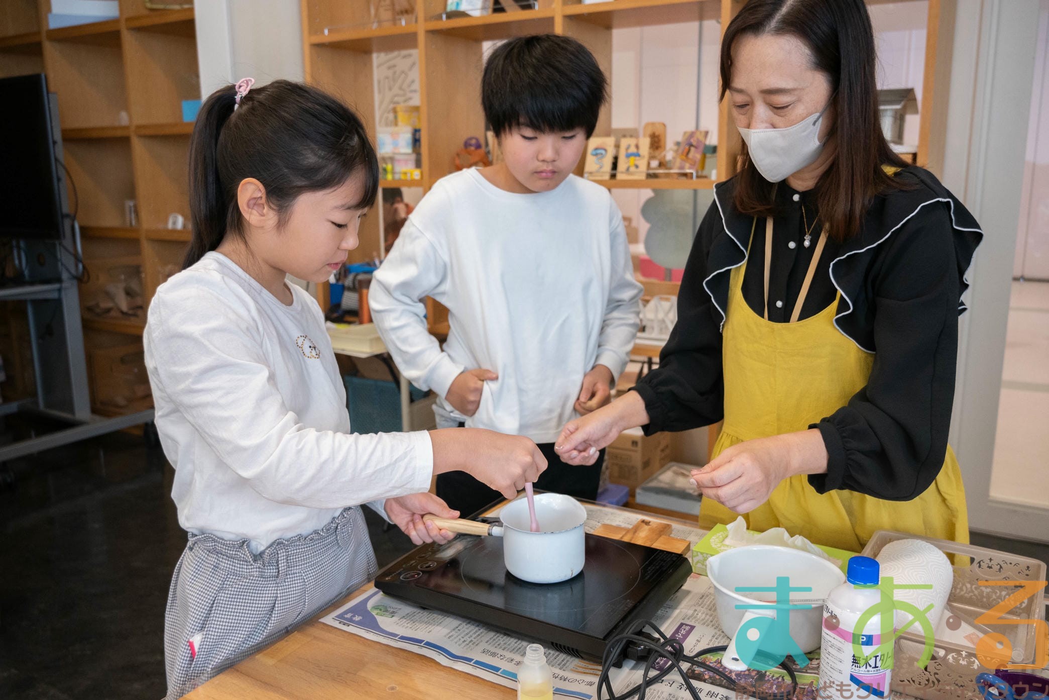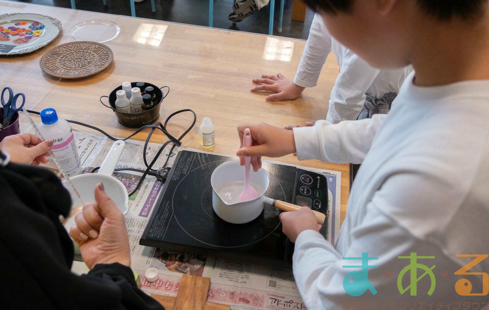 デザインが完成した方は、ジェルワックスをホーロー鍋に入れて、一定の温度で溶かしていきます。