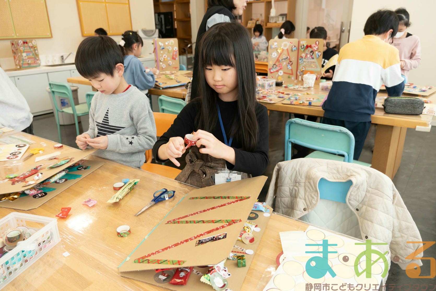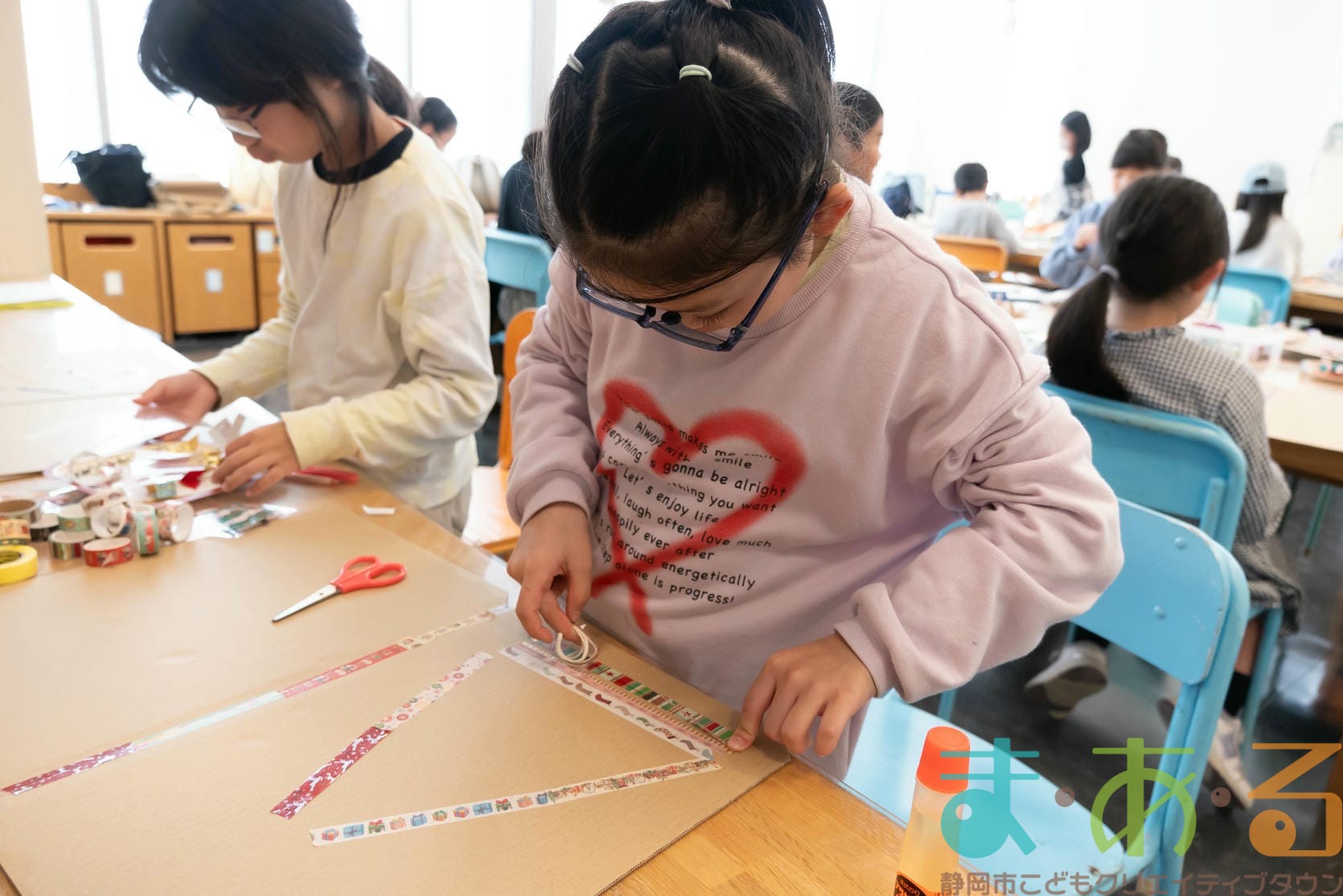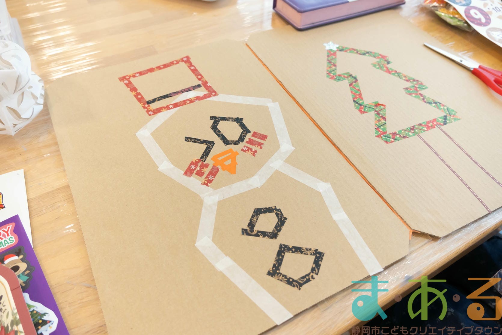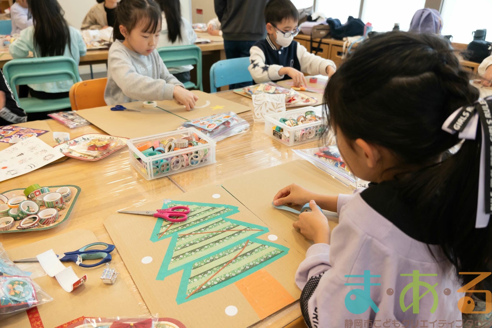 マスキングテープを細かくちぎって暖炉を作ったり、様々な柄のテープを組み合わせて素敵なツリーを作る方など、思い思いに進めています。